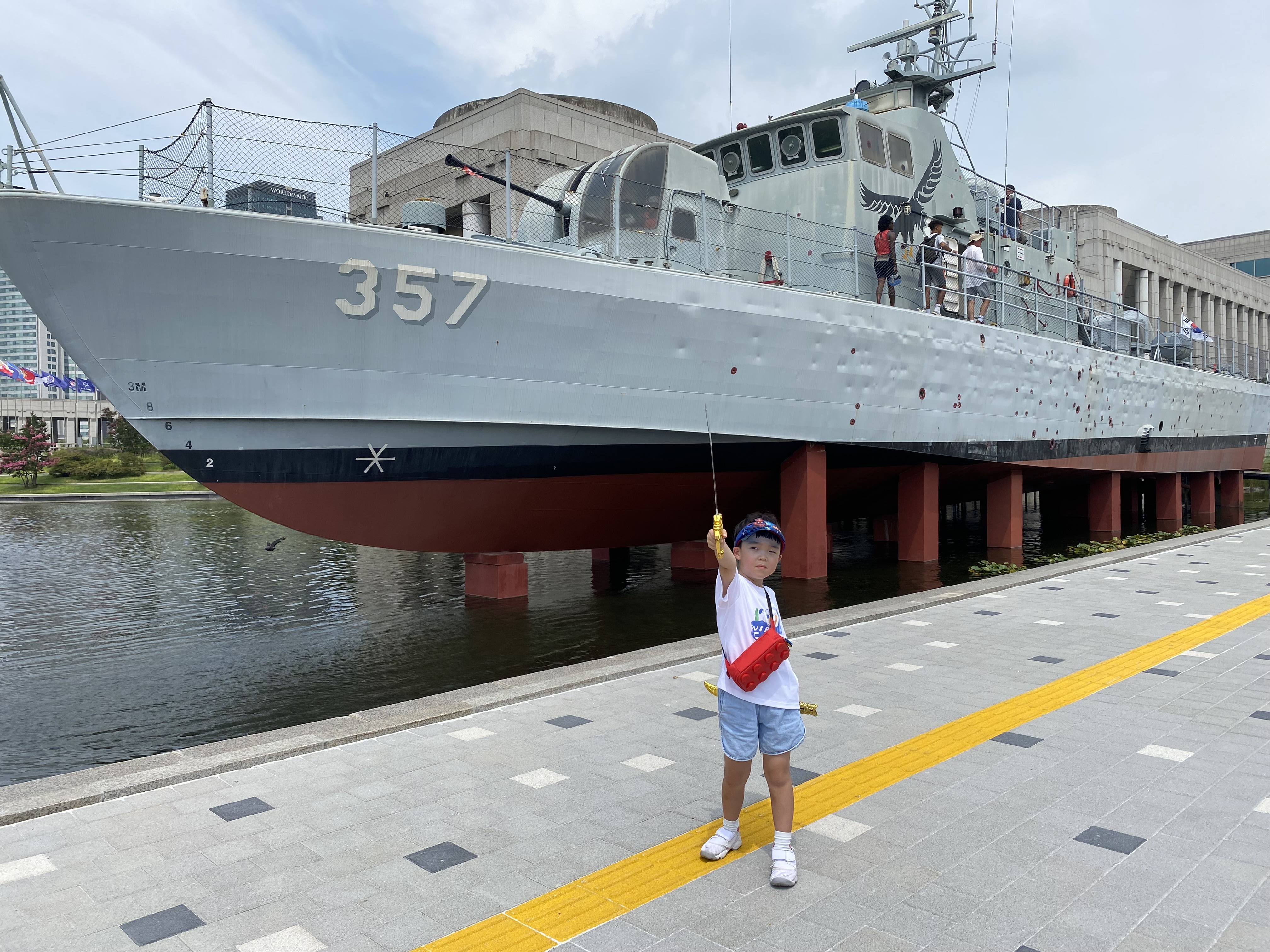 폭염에 땡볕에 두 시간가량 노출되어 온몸이 땀으로 샤워를 하는 상황이었는데도 절대 포기하지 않는 아들이었습니다. 챙겨온 생수 두병을 다 마시고 손수건을 땀으로 축축이 적셔주고도 꺾이지 않는 무기 관람 열정을 아빠는 겸허히 받아들였고 더위에 지쳐 녹다운 될 때까지 열심히 사진을 찍어줘야 했지요.