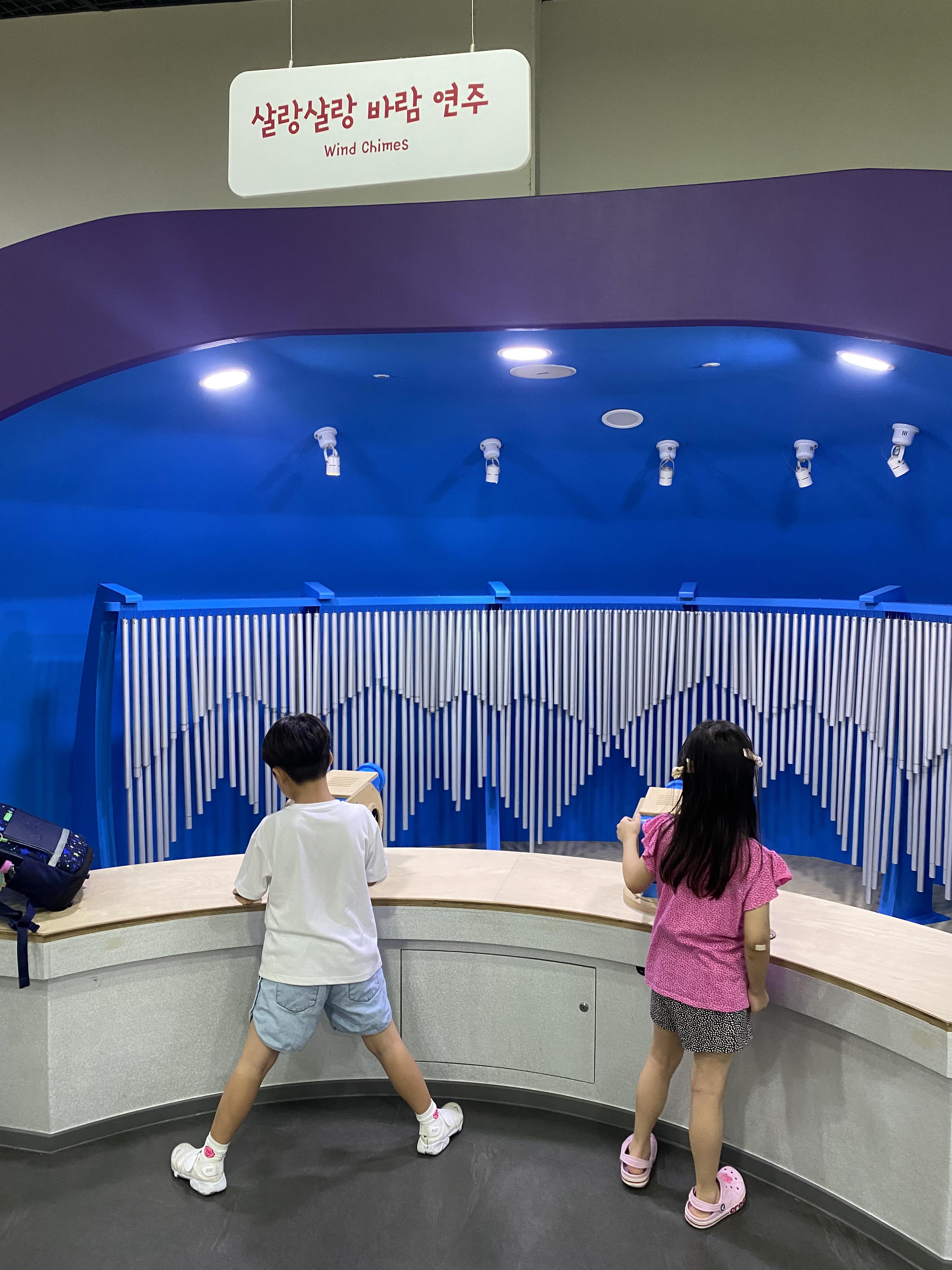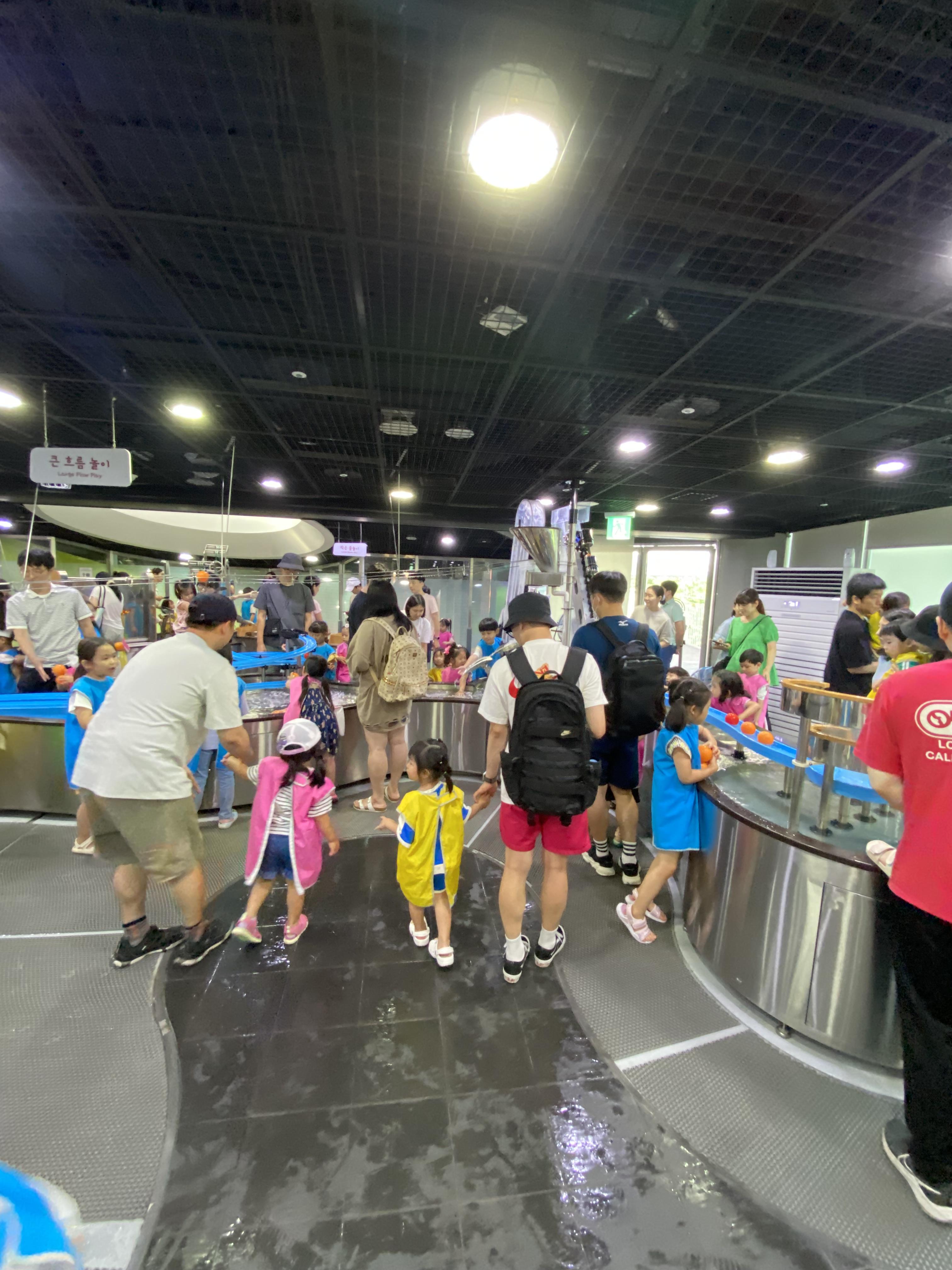 3층은 물, 바람 체험 공간인데 제법 큰 키카에 가면 물 수로가 있어서 거기 막 공 넣고 하는 거 있죠? 유아부터 초등생까지 보호자와 함께 몰려있어 엄청 붐볐다는~~ 그리고 사진에 없지만 집 인테리어 공사 체험 마당도 있어서 초등학생 아이들이 무척 좋아하는 3층이었습니다.