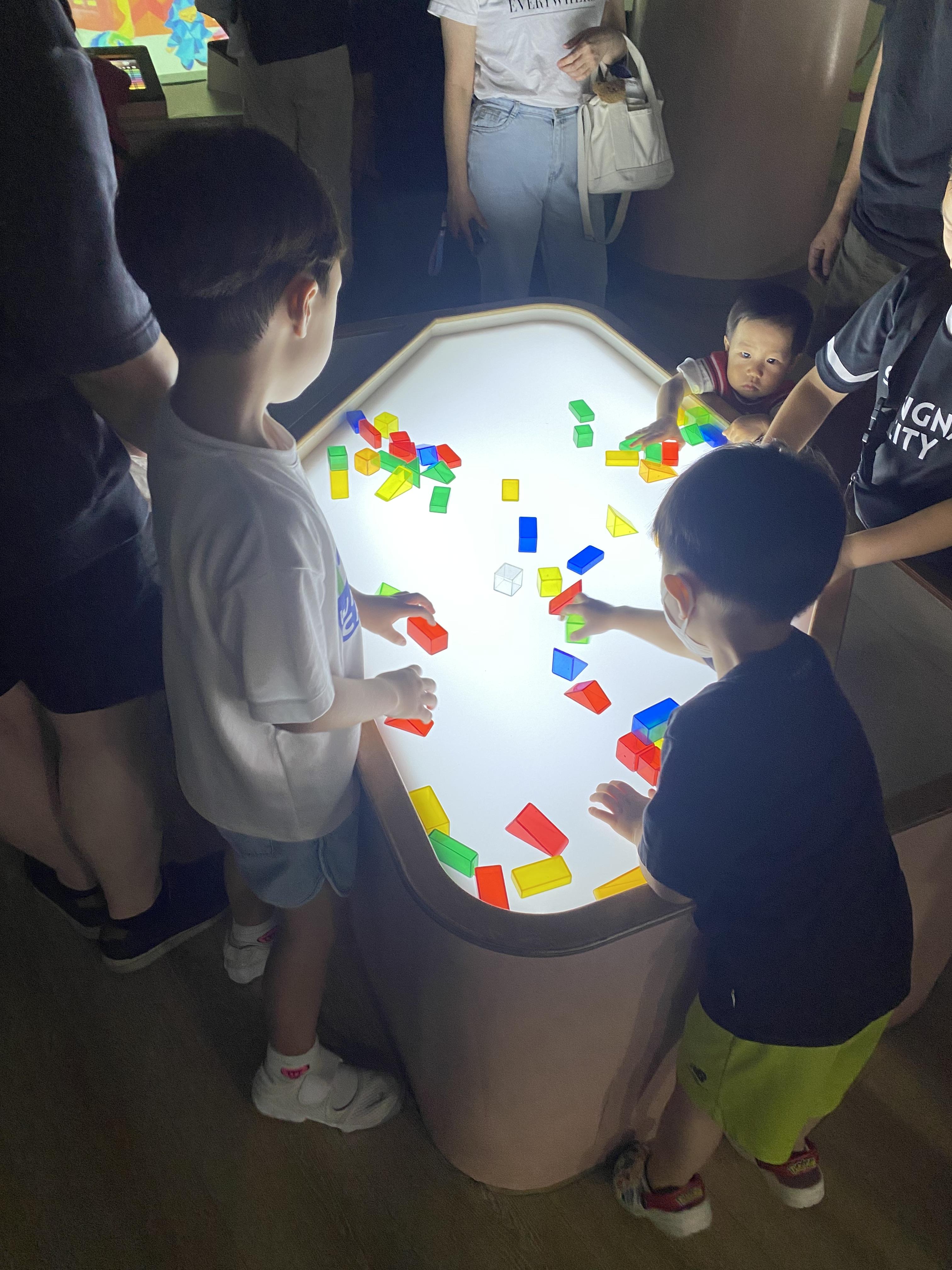 엄청 다양한 감각을 일깨워주는 놀이거리가 한가득한데 너무 많이 사진을 찍어놔서 1층부터 이어지는 공간 대표 몇 장만 추려서 소개해 봅니다. 위 두 장이 1층 사진인 거 같아요. 조명을 활용한 색깔블럭이 독특했달까요? 전체적으로 1층은 초등생들보다는 유아 또는 유치원생 정도 아이들에게 잘 맞는 체험거리 공간이었습니다. 이미 커버린 초 1학년 아이에겐 잠시 동안 흥밋거리가 되었지만 금세 진정을 하고 휘휘 둘러보고 떠난 층이었지요.