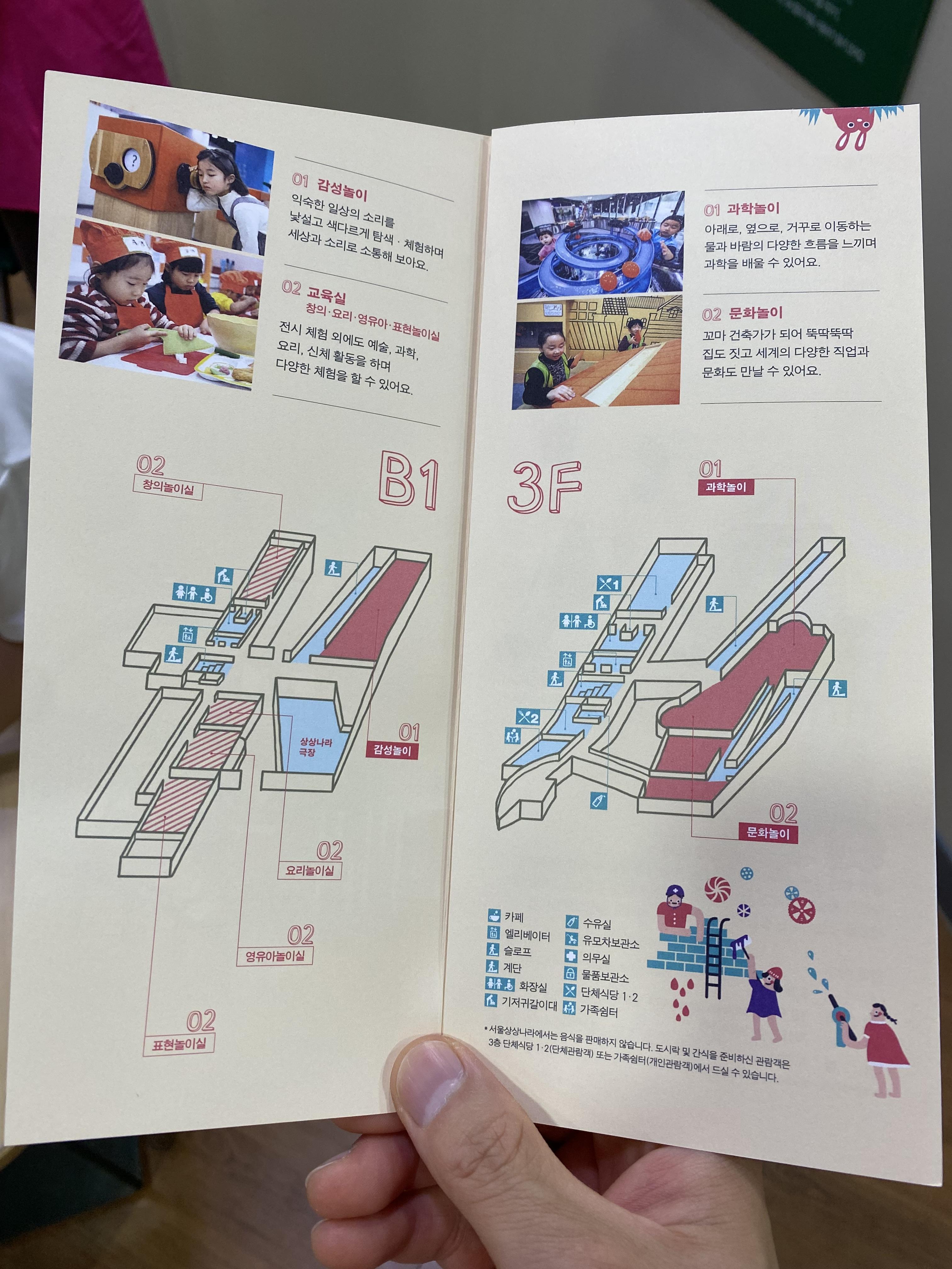 팜플렛을 받고 살펴보는데 여기도 지하부터 3층까지 다양한 체험거리가 마련되어 있네요. 분명 여기 들어오기 전까지 아들은 오전 용산 코스가 너무 힘들어 투정을 잔뜩 부리는 상태였으나 입장하고 나서부터는 어디서 그런 에너지가 뿜어져 나왔는지 텐션 업업!!!