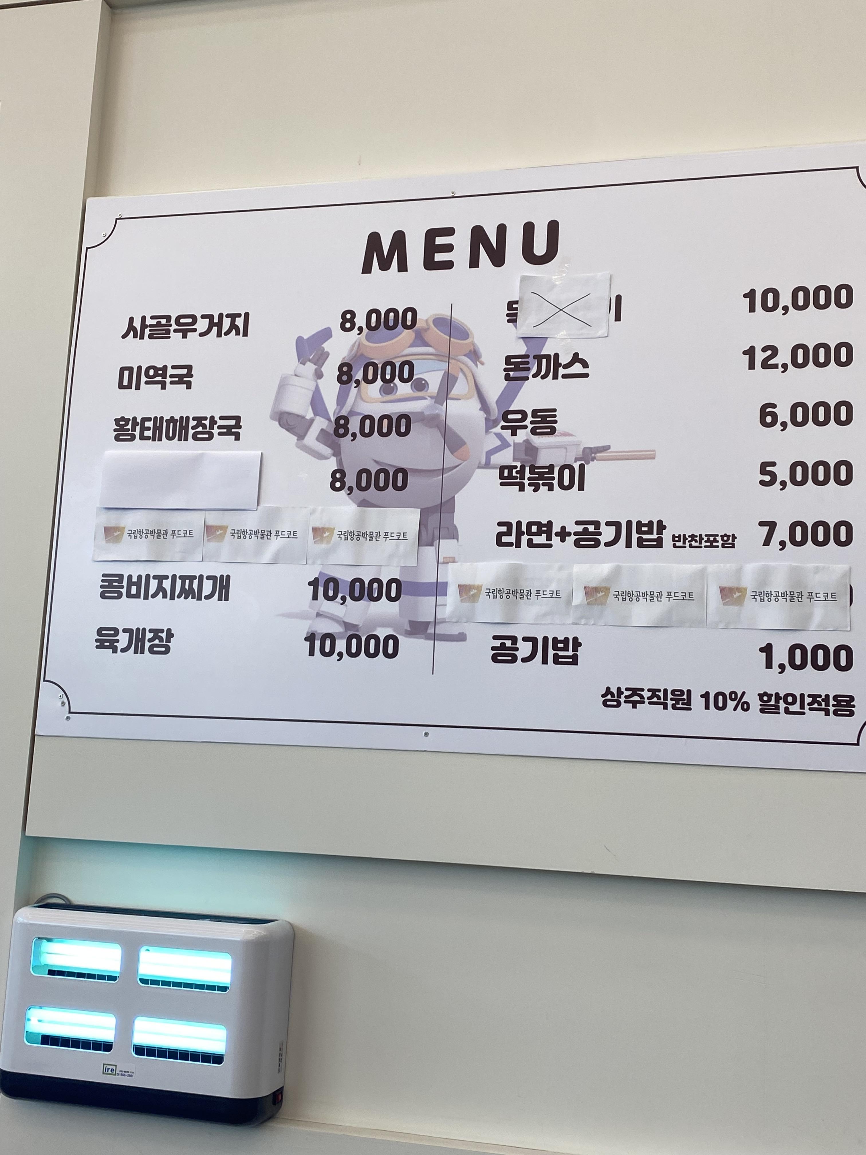 국립 항공 박물관 자체 시설은 쾌적하고 이용하기 좋은 장소인 건 맞는데 구내식당은 진짜 아닙니다. 너무 허술하고 메뉴도 별로 없고 맛은 평타에서 조금 못 미치고..... 주변 식당이 없으니 어쩔 수 없이 이용하는 공간이지만 박물관 시설에 비하면 궁색하기 그지없는 식당입니다. 일 이용객이 별로 없어서 그럴까요? 아무튼 아이들과 함께 서울 박물관 투어를 계획하신다면 추천하는 곳이긴 한데 식당은 비추합니다. 반드시 김포공항 식당을 이용하시길~!!!