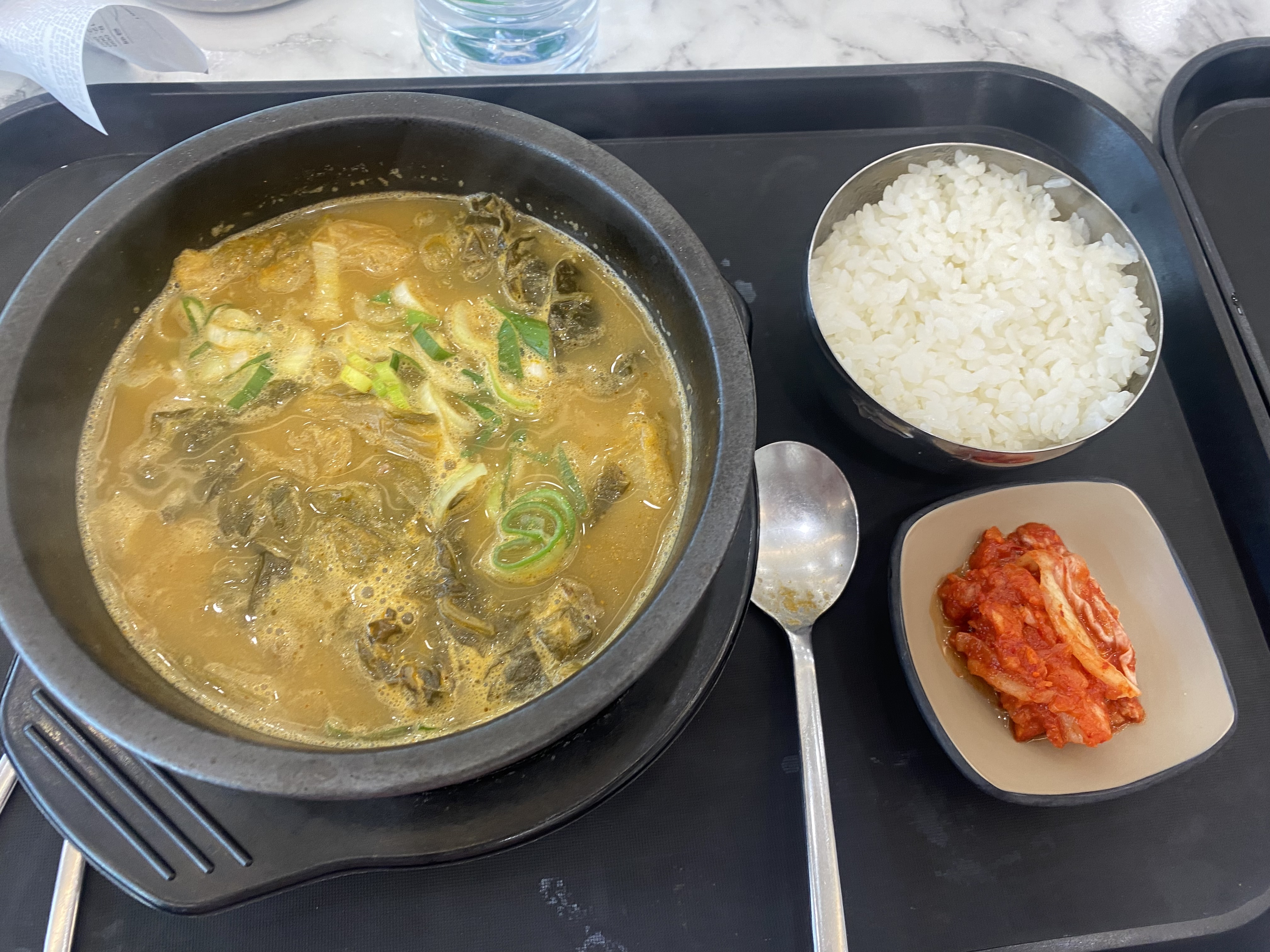 열두시 반쯤이었지 싶습니다. 식당 내부는 이미 방문객들의 주문으로 만석이었고, 다행히도 한자리 겨우 앉을 수 있었습니다. 메뉴는 단촐한게 몇 가지 없는데 그중 아들은 돈까스를, 저는 사골우거지로 주문을 했습니다. 메뉴를 보고 있는데 앞서 지나쳤던 수많은 공항 식당들이 눈앞에 아른거리는데.....ㅠㅠ