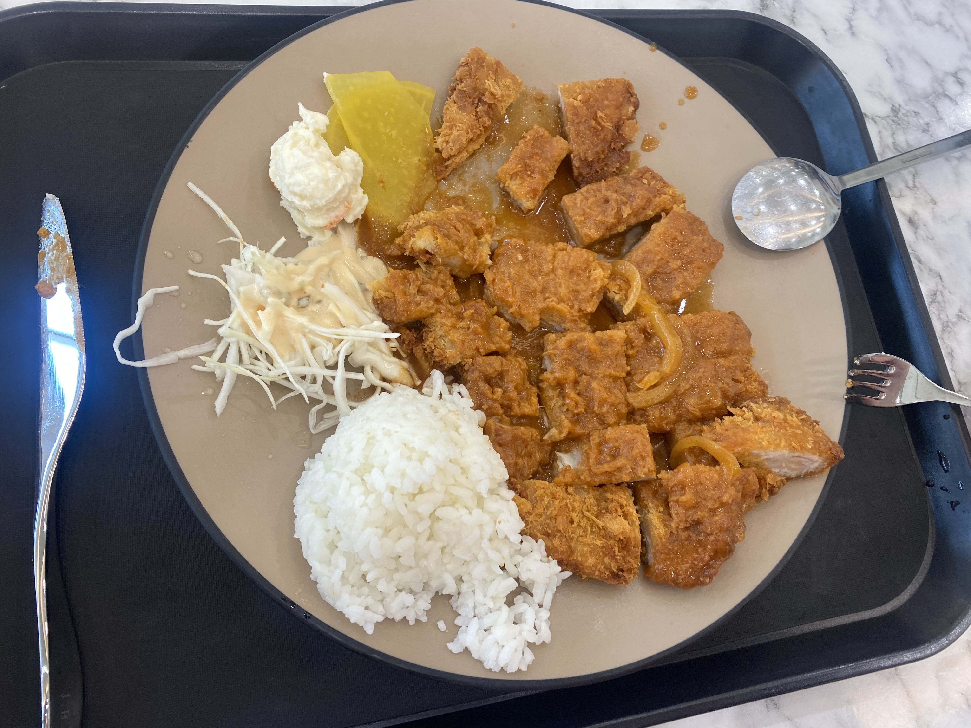 돈까스는 과감하게 먹기 좋은 사이즈로 커팅 되어 나왔고요, 기대하지 않았지만 그래도 돈까스 소스는 시판 중인 그런 돈까스 소스가 아니어서 맛은 괜찮았습니다.