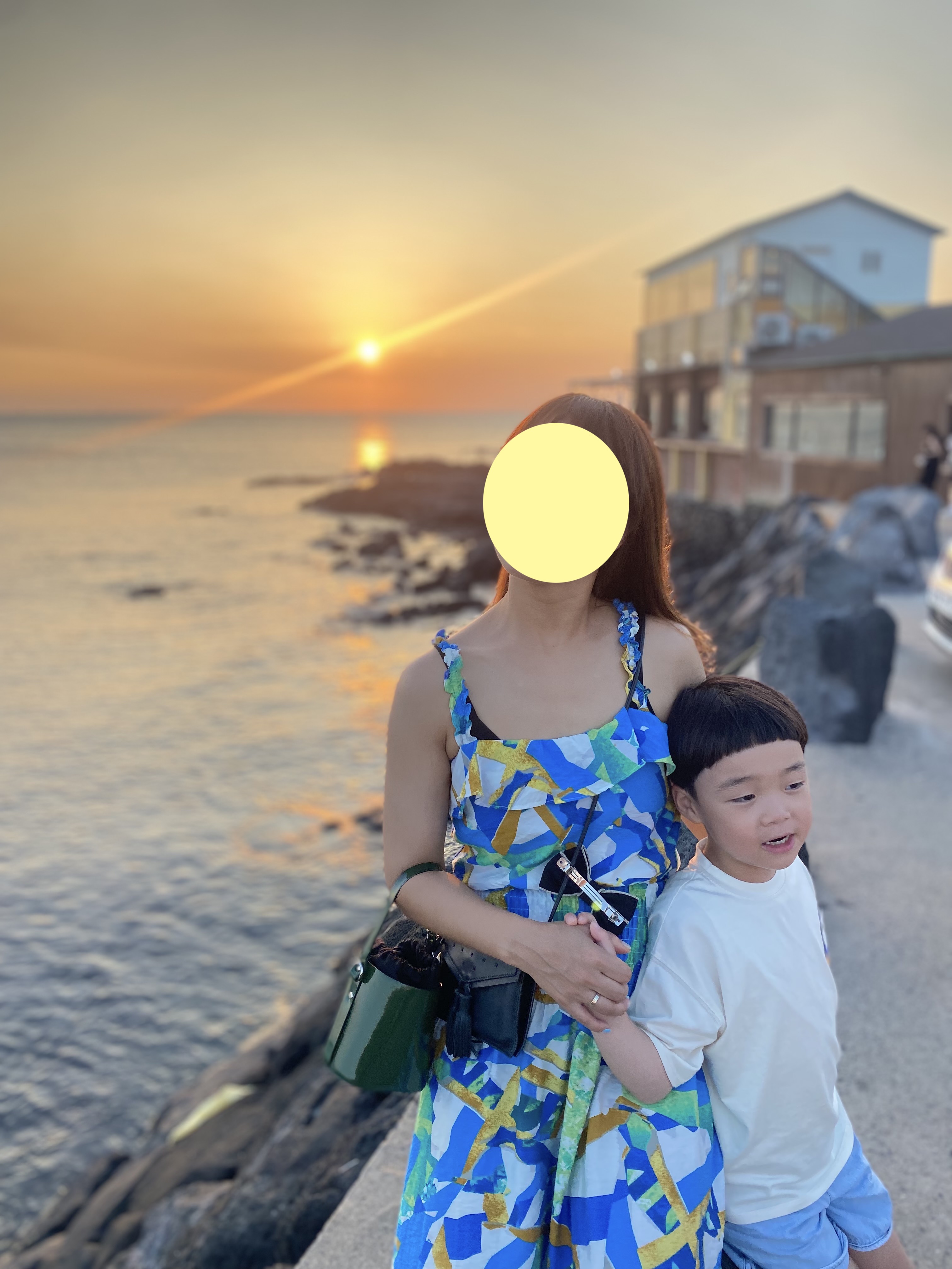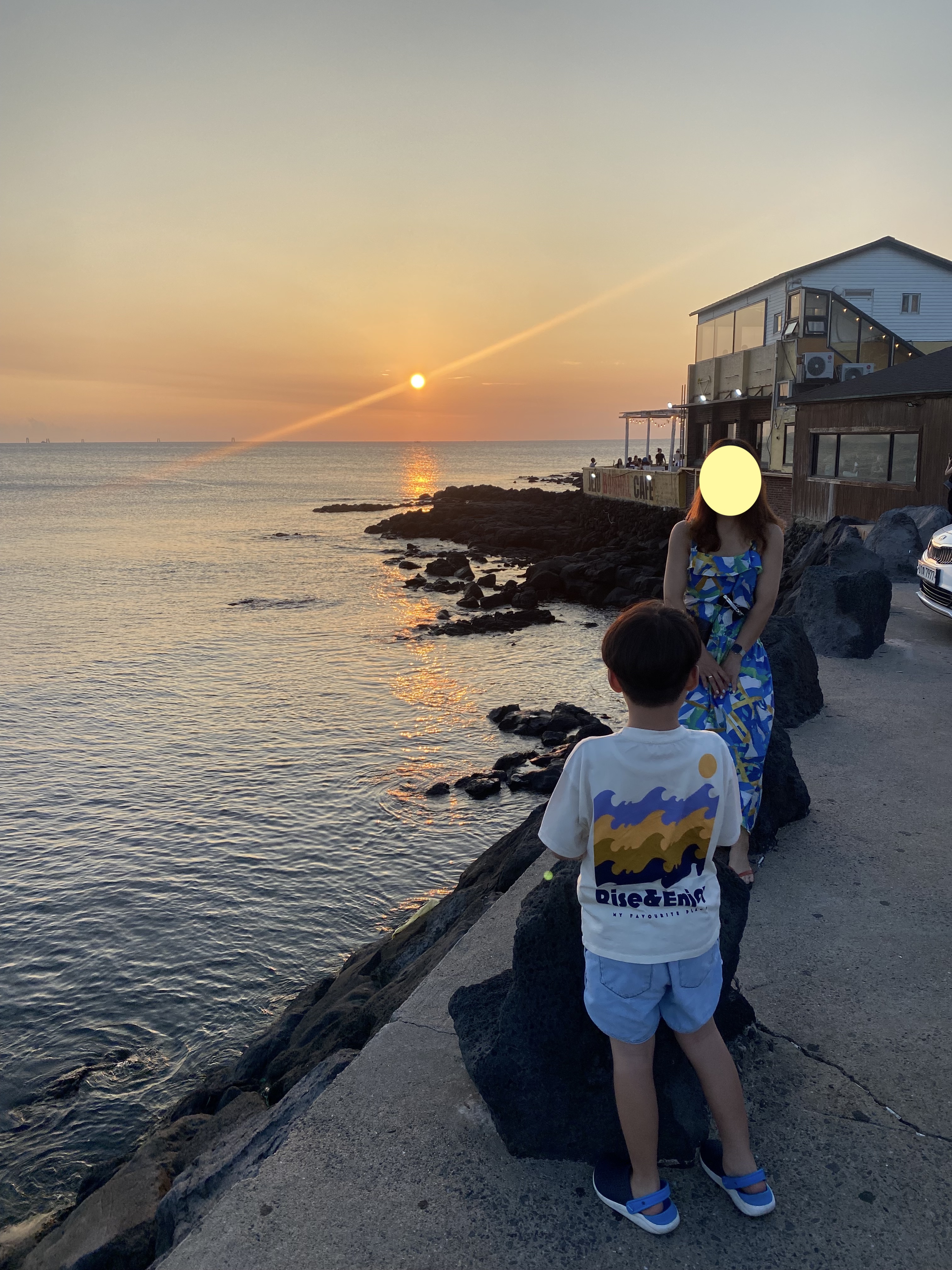 한담 해변은 십 년 전 연애시절에 카약 타러 갔었던 곳인데 그때 봤던 카페며 식당들이 여전히 영업 중에 있는데 십 년 세월이 동네를 싹 바꿔놨더군요. 들어가는 입구가 완전 바껴있어서 해변에 와서야 겨우 예전 기억이 떠올랐다는~ 지는 해 선셋뷰 타이밍이 기가 막혔습니다.