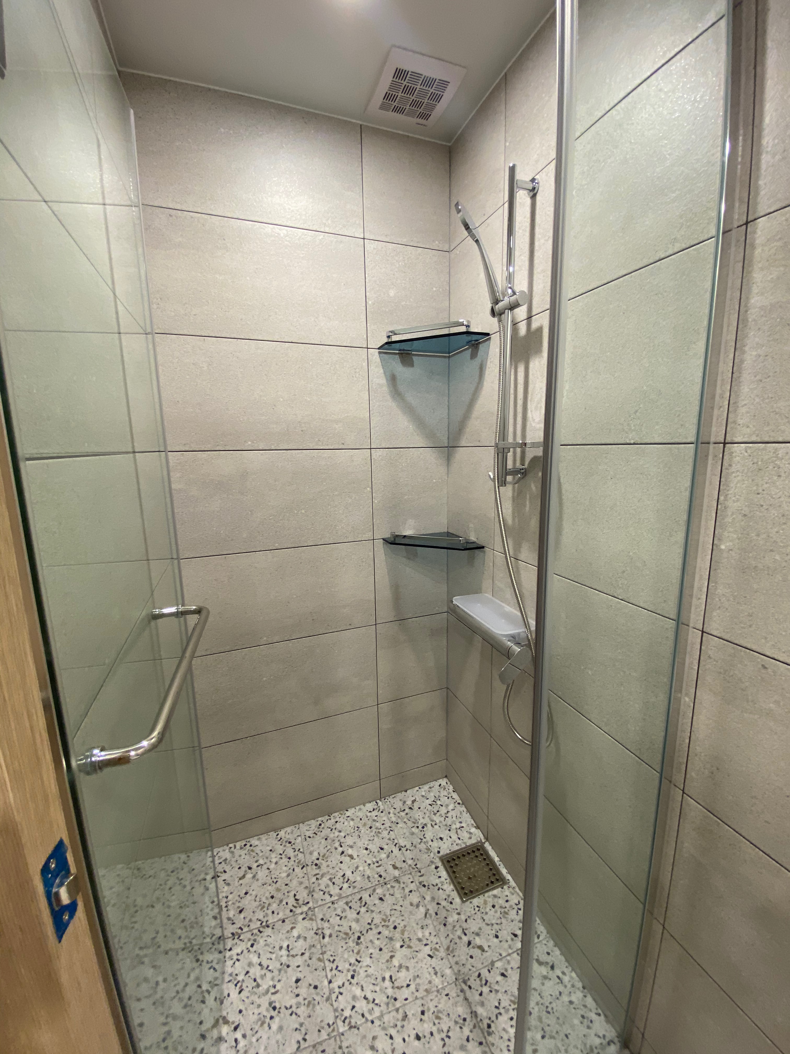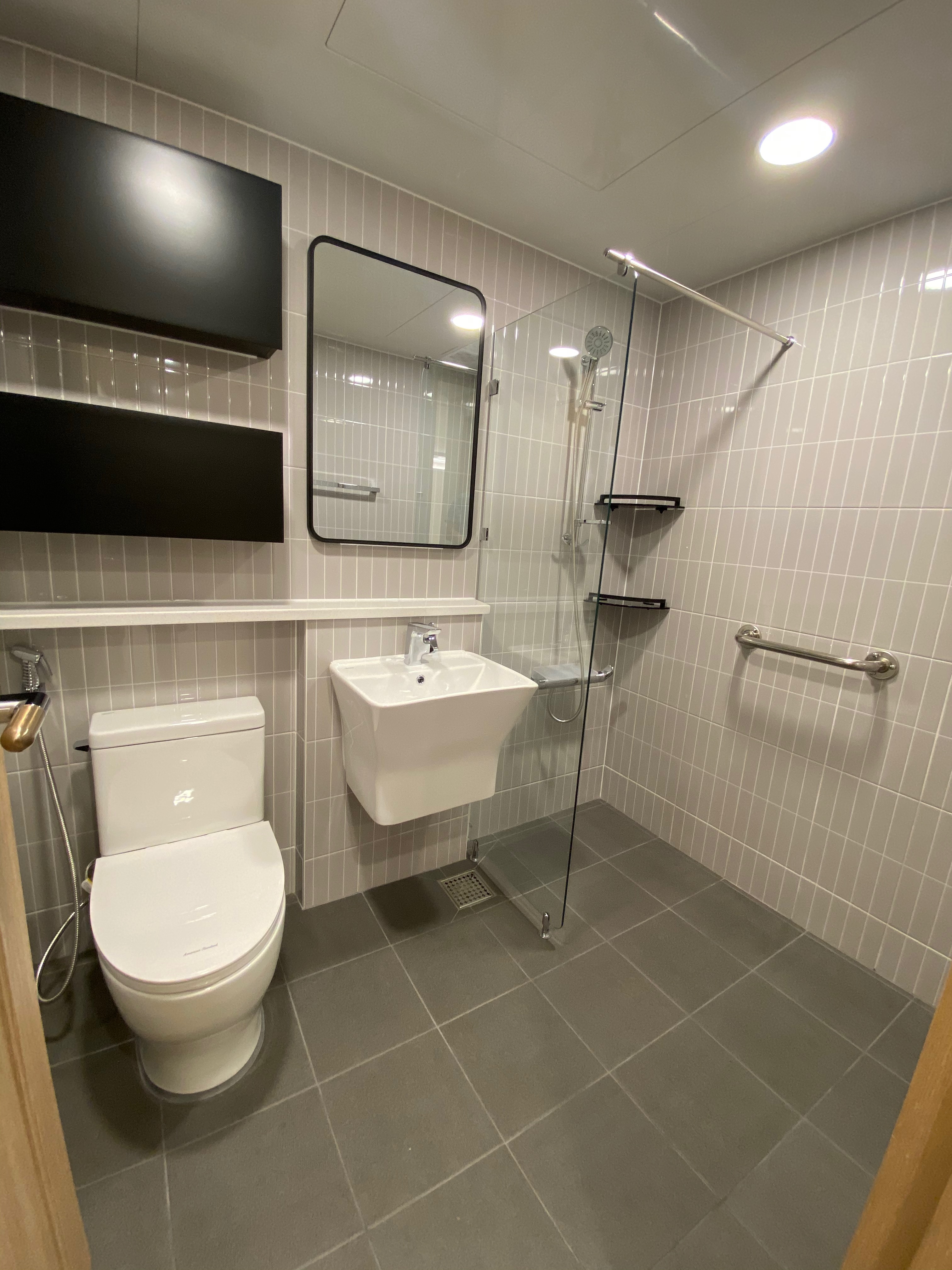 안방 실내 사진과 안방 화장실 사진인데, 수납장을 만드시는 사장님께서 손을 다치셔서 아직 안방 화장실 수납장만 미설치된 상태입니다. 하루빨리 회복하시길~~