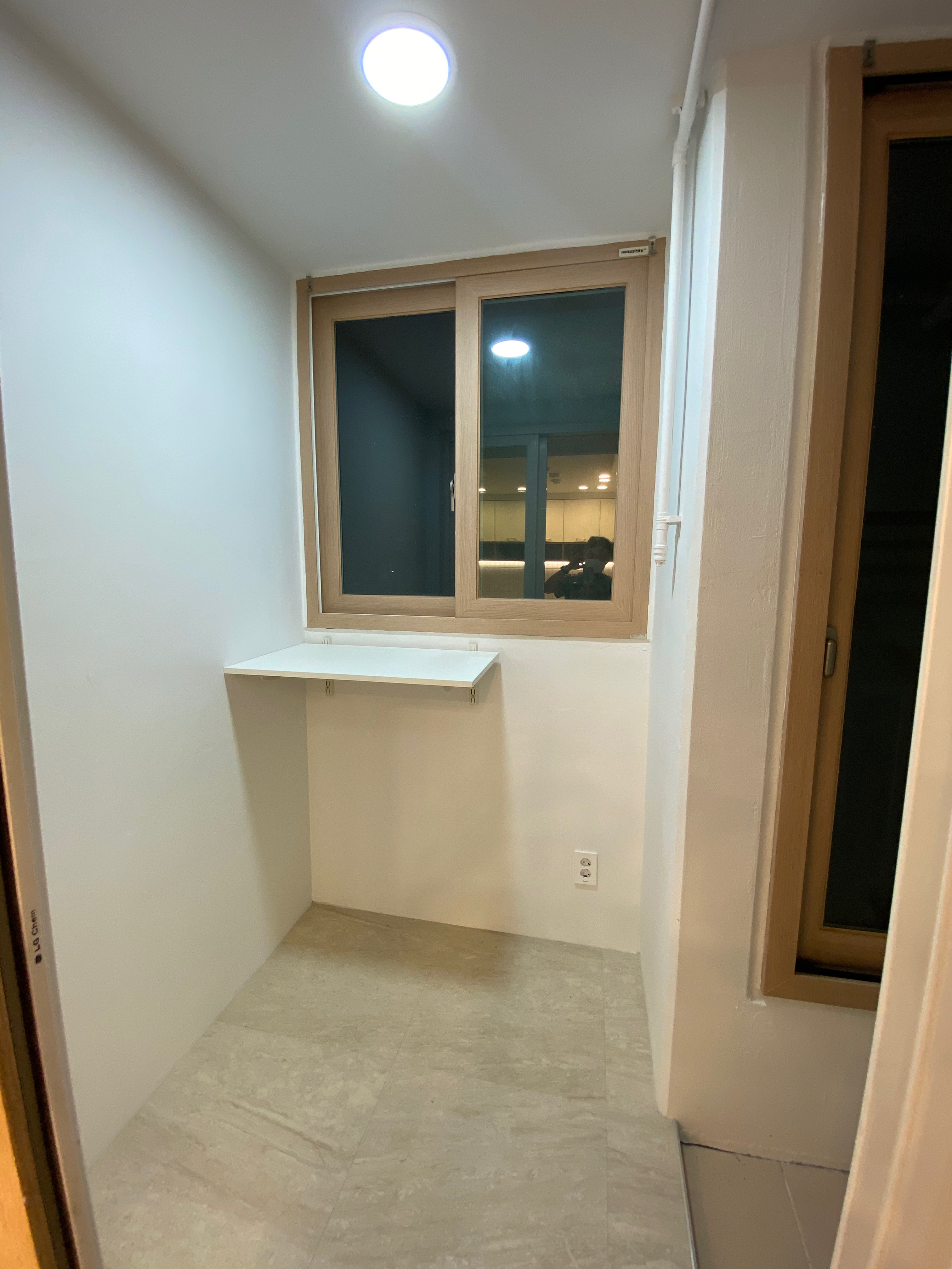 뒤 베란다 세탁실, 보일러실 모습입니다. 좌측 사진에 건조기와 아기 세탁기를, 우측 보일러 실에 세탁기를 설치할 예정입니다.