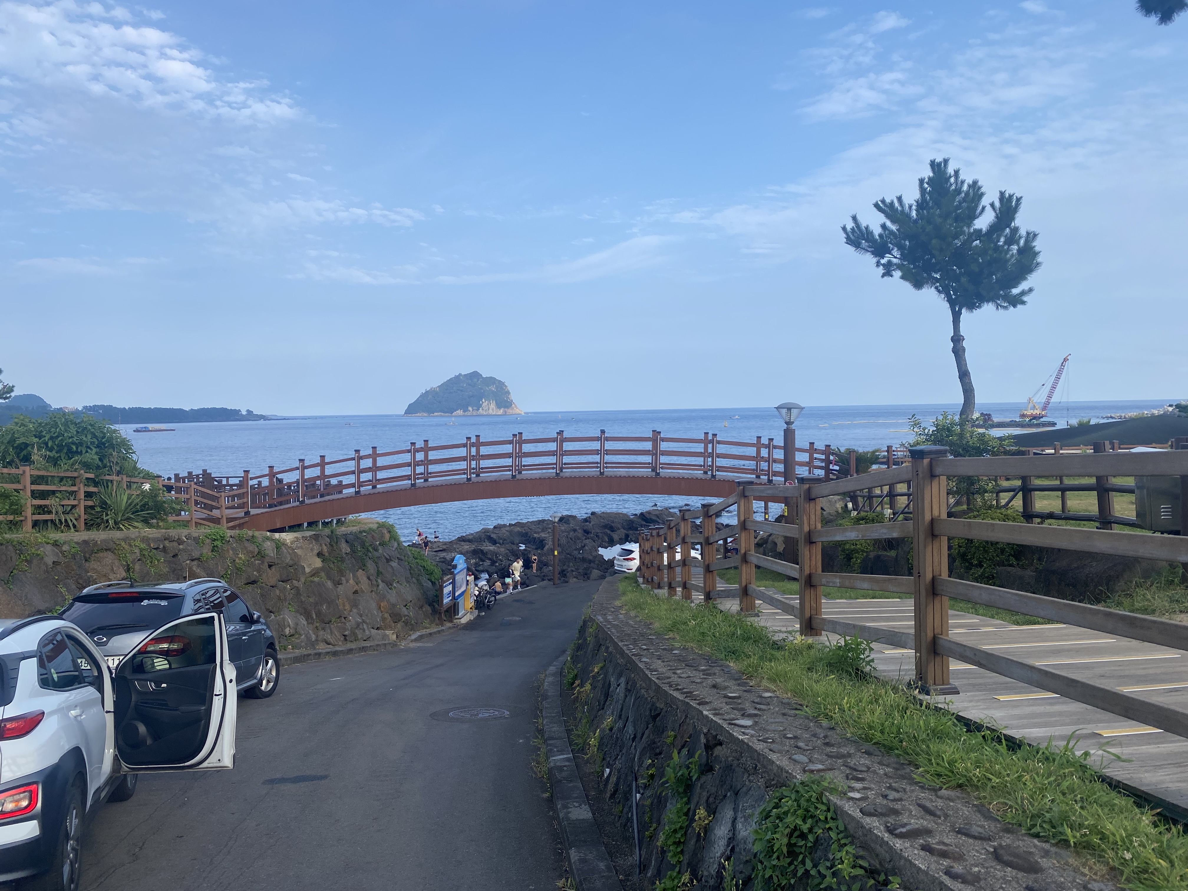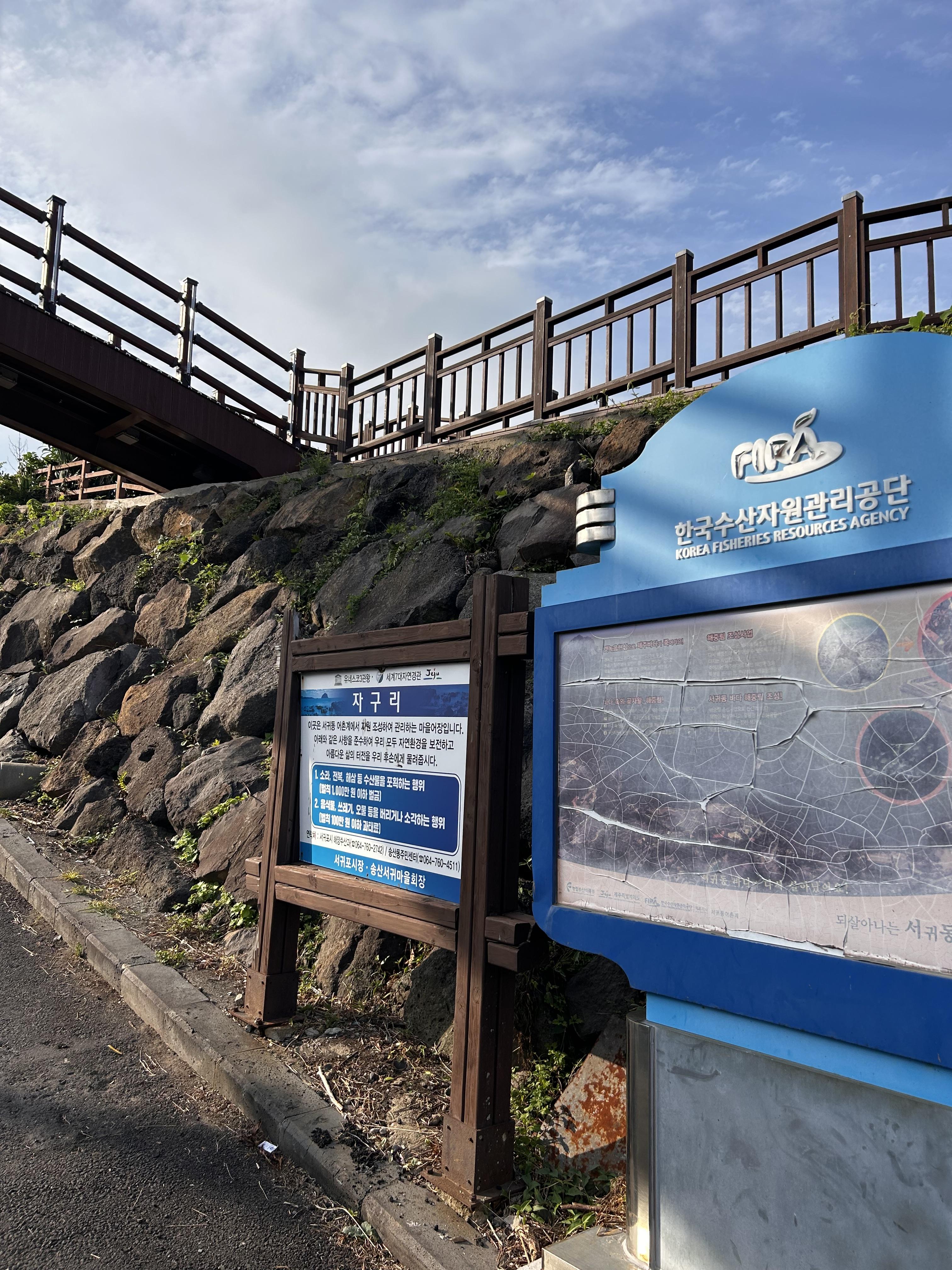 간 곳은 '자구리 담수욕장'인데 사전 정보 일체 모르고 사진상에 보이는 다리와 바다 뷰가 너무 아름다웠습니다. 사진으로는 표현이 안되어있지만 아래쪽이 급경사로 쭉 내려가는 길이어서 끝에는 뭐가 있는지 알 수 없는 곳이라 호기심이 생겼답니다. 거기다 아이들과 동행한 가족들이 물놀이를 즐기는 듯한 모습이 보여서 아들도 물놀이 소식에 급 흥분을~!!!