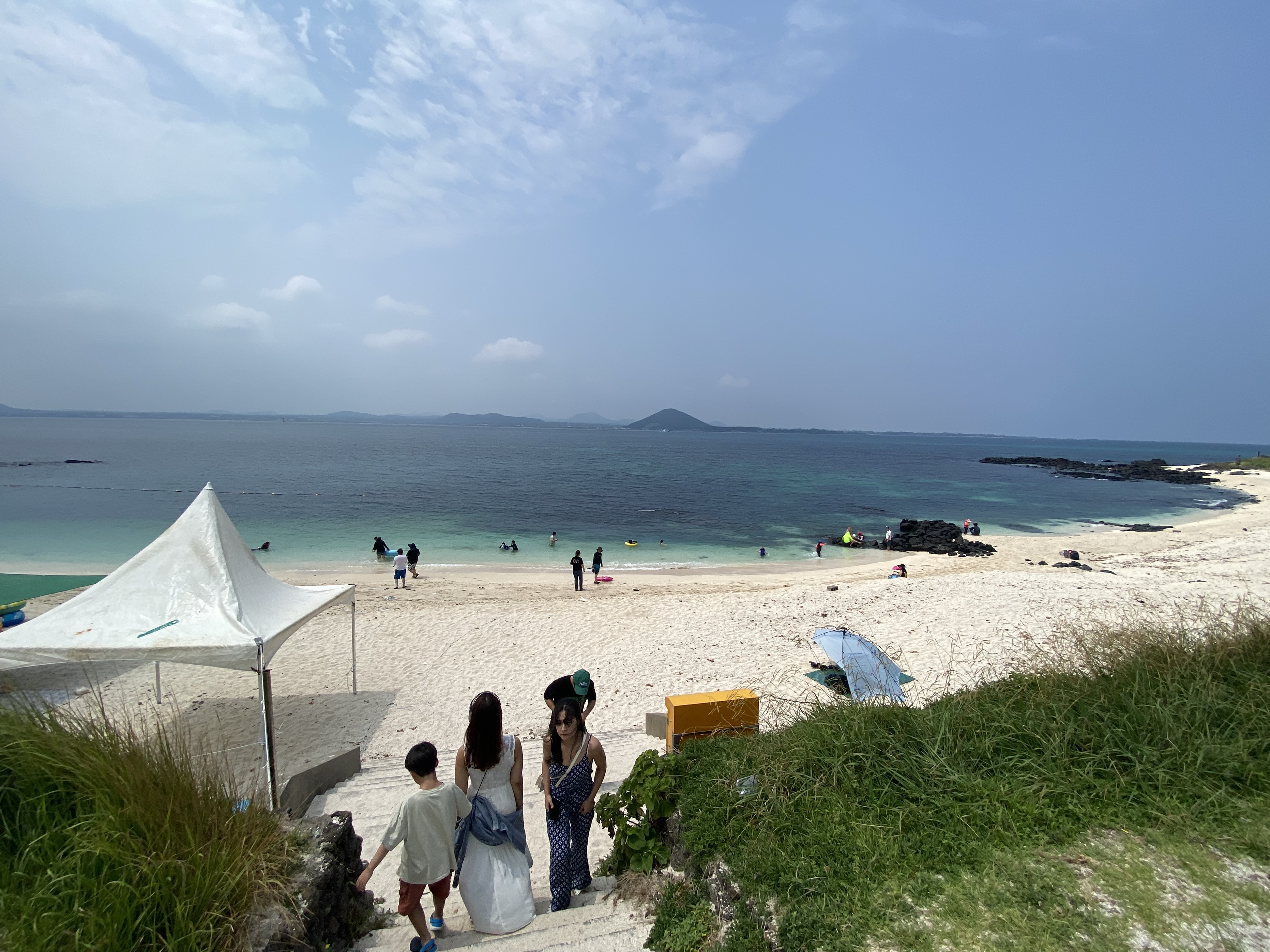여행 4일차 우도에서 점심 첫 끼를 우도로93에서 새우토마토우동으로 속을 뜨끈 시원하게 달래준 뒤 본격적인 우도 즐기기 시간을 가지기로 했습니다. 숙소 체크인 시간까지는 아직 한참 남아있어서 바로 해수욕장으로 직행했지요. 간 곳은 바로 '산호 해수욕장'인데 서빈백사 해수욕장으로도 검색이 되는데 우도에서 스노클링을 안전하게 즐길 수 있는 해수욕장으로 유명합니다. 해변이 일반 모래가 아닌 산호모래로 되어 있는 곳으로 유명하기도 하죠. 그리고~ 우도왕자 아저씨의 땅콩 아이스크림이 유명한 곳이기도 하고^^ 8년 전에 방문했을 때는 우도왕자 사장님이 직접 아이스크림을 데코 이쁘게 해서 주셨는데 왕자님은 안 계시고 알바님만 계시더라는..... 우도에서 워낙 사업장을 많이 하고 계셔서 바쁘신 거 같더군요.