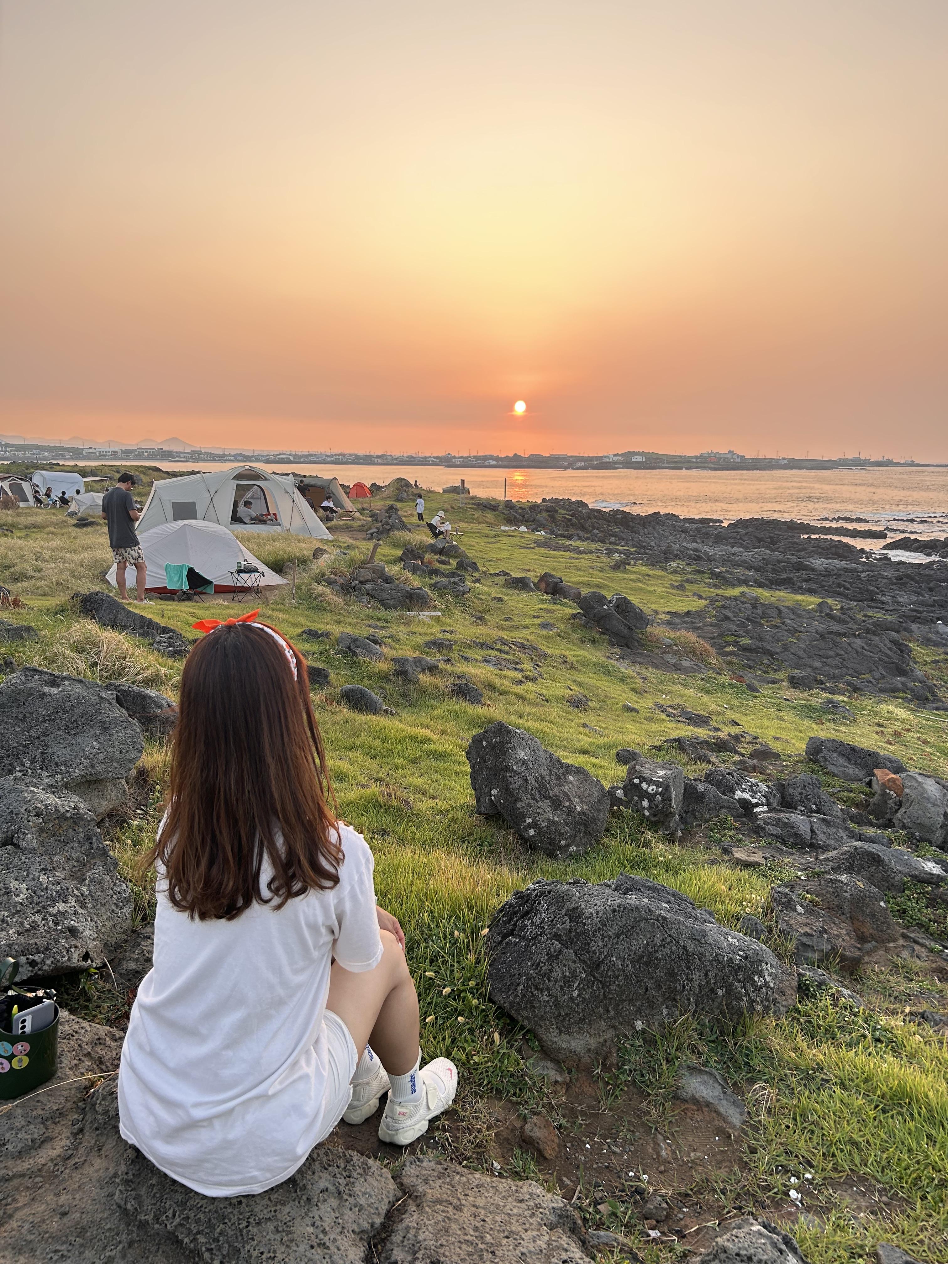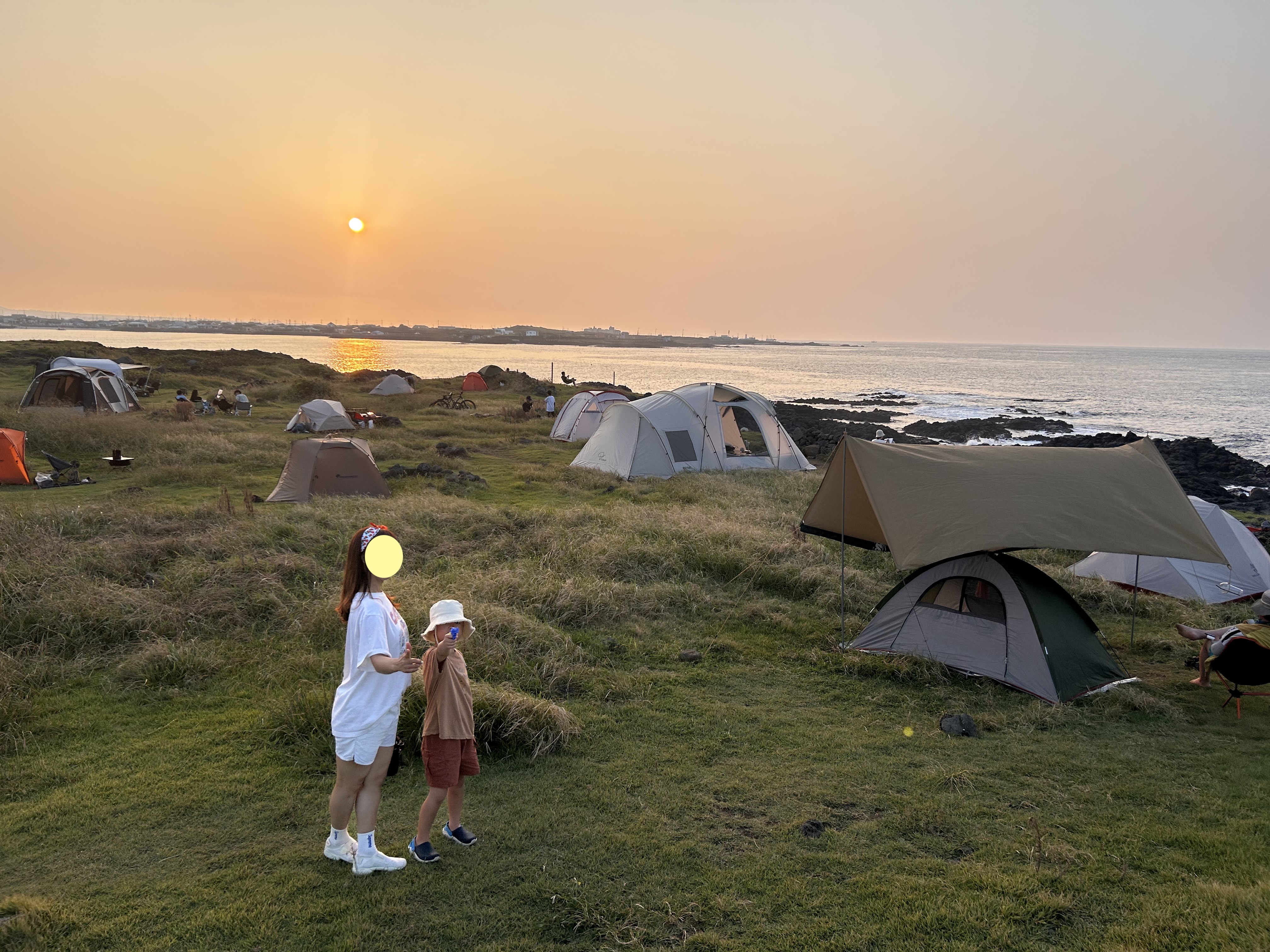 가족과 함께 일몰 사진을 이렇게 많이 찍은 곳은 이곳 비양도가 압도적일듯합니다. 뷰가 진짜 .... 햐..... 우도까지 들어와서 비양도까지 백패킹 짐 짊어지고 이런 뷰를 즐기며 여름휴가를 보내는 분들께 진심 리스펙 하게 되더군요.