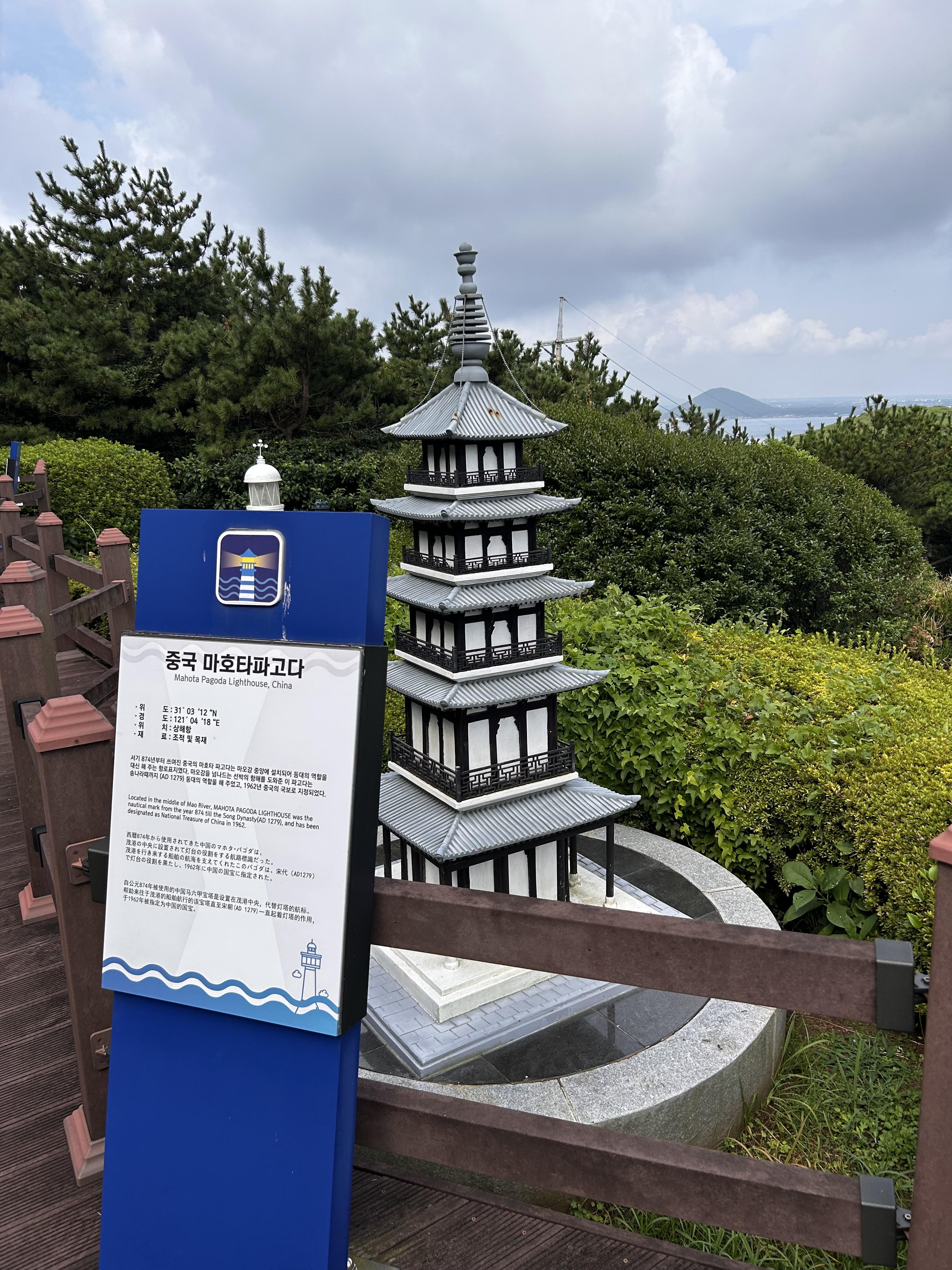 정상을 찍고 아래 계단을 따라 하산을 하다 보면 우도 등대공원에서 조성해 놓은 세계 각지의 멋진 등대 조형물들을 감상할 수 있습니다.