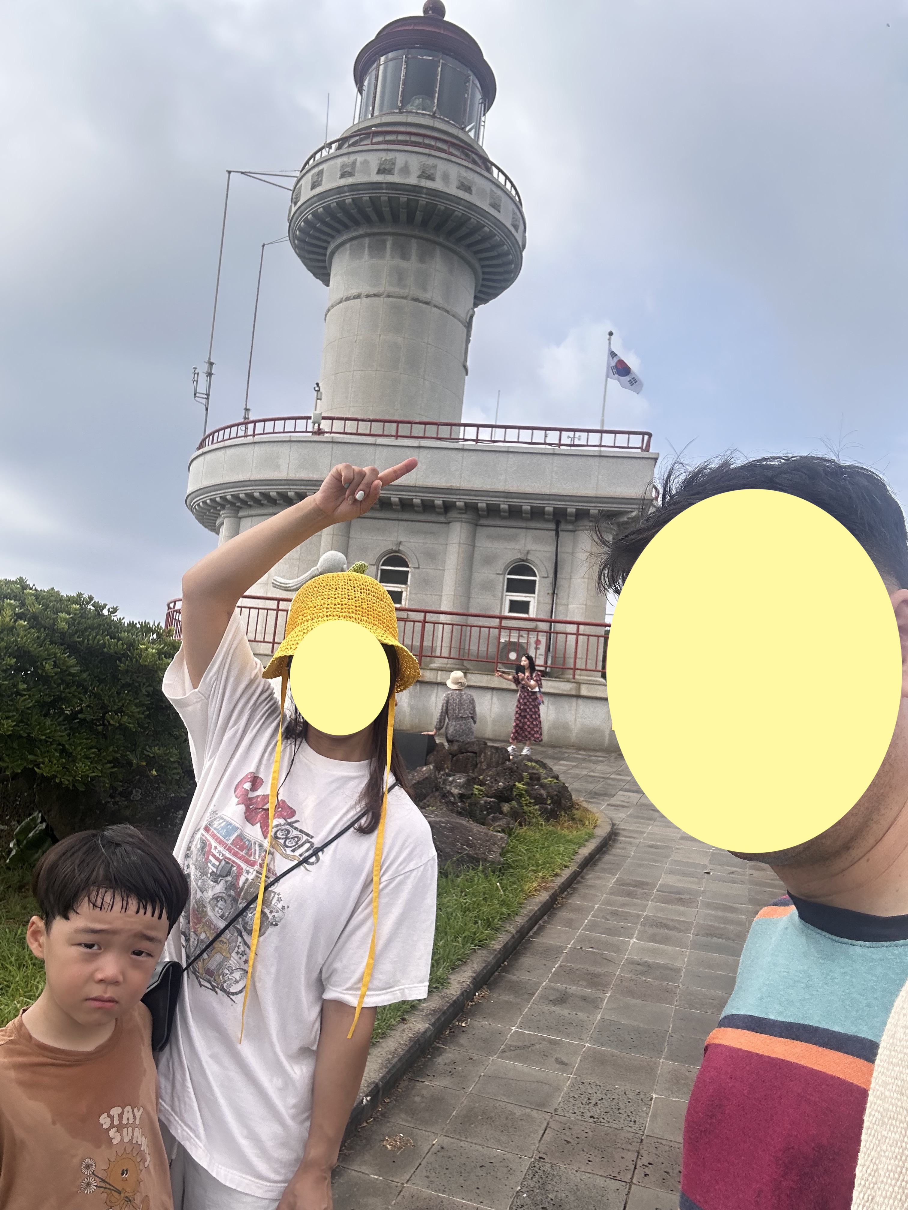 초1 아들 표정이 절대 즐겁지 않아요~~~ 한낮 땡볕에는 우도 등대공원 비추합니다. 한 시간여 정도 머물면서 우도에서 마지막 여행 5일차 첫 번째 일정을 소화했습니다.