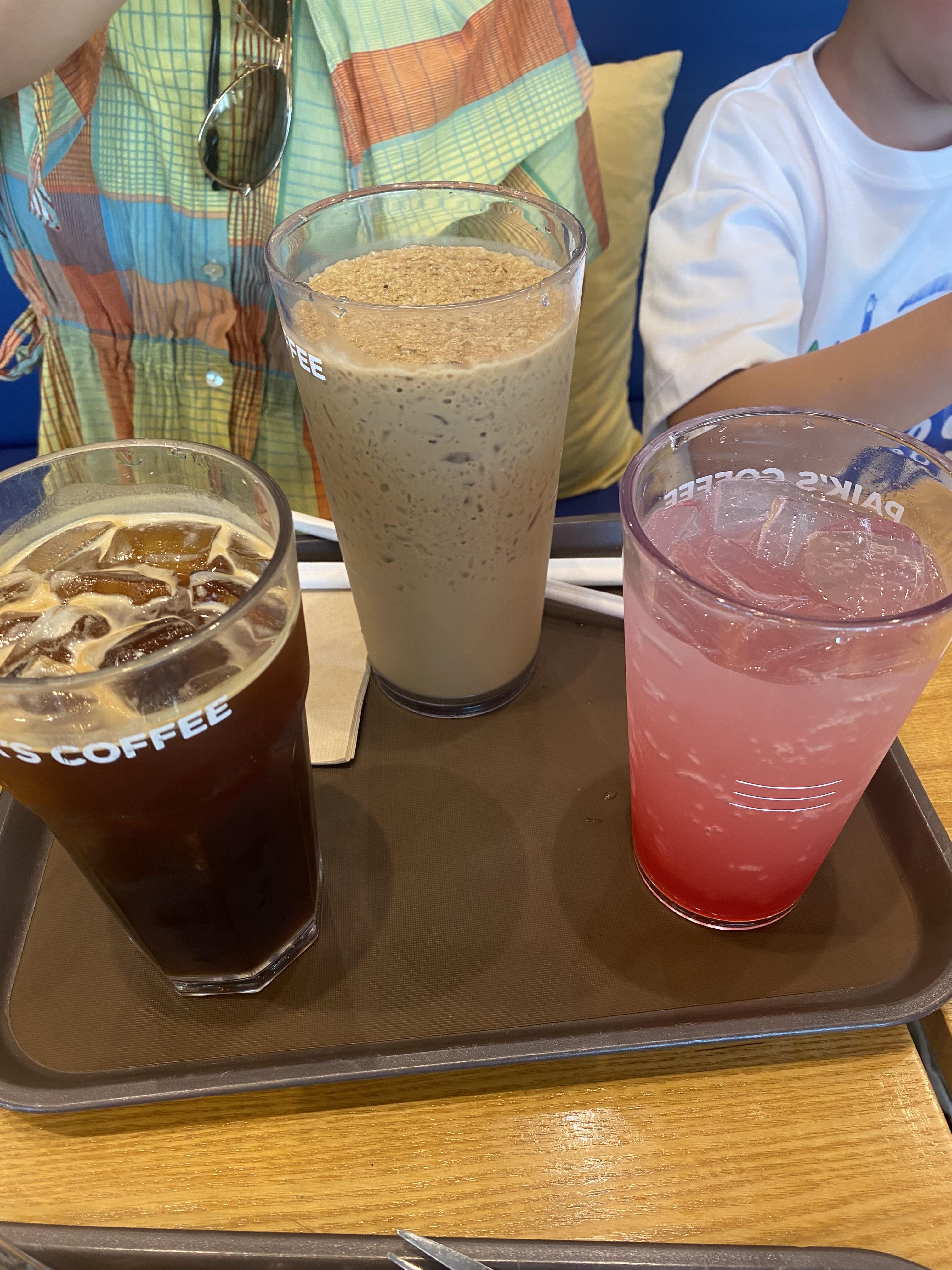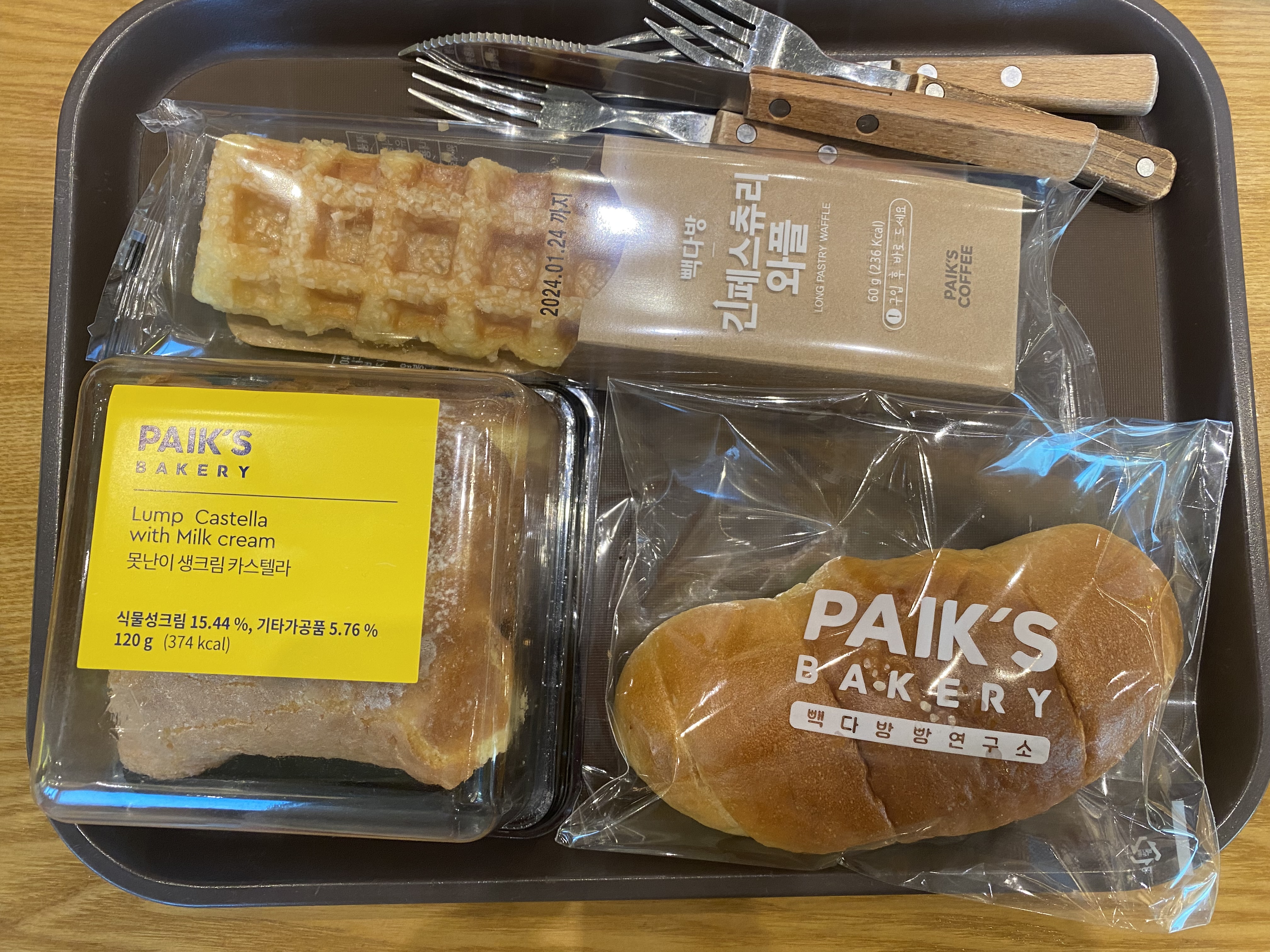 다양한 빵 종류가 있는듯했으나 저희가 갔을 때는 많은 사람들이 다녀가서 그런지 저희 입맛을 유혹하는 빵은 별로 없더군요. 방 세 가지와 커피, 아들 음료수 요렇게 주문했습니다. 가격은 확실히 빽다방이 스벅에 비해 알찬 가격인데 문제는 커피 맛은 으.... 비춥니다. 그냥 편히 쉬면서 일몰뷰 즐기는 걸로 보상이 되는 빽다방 베이커리 제주사수점 입니다.