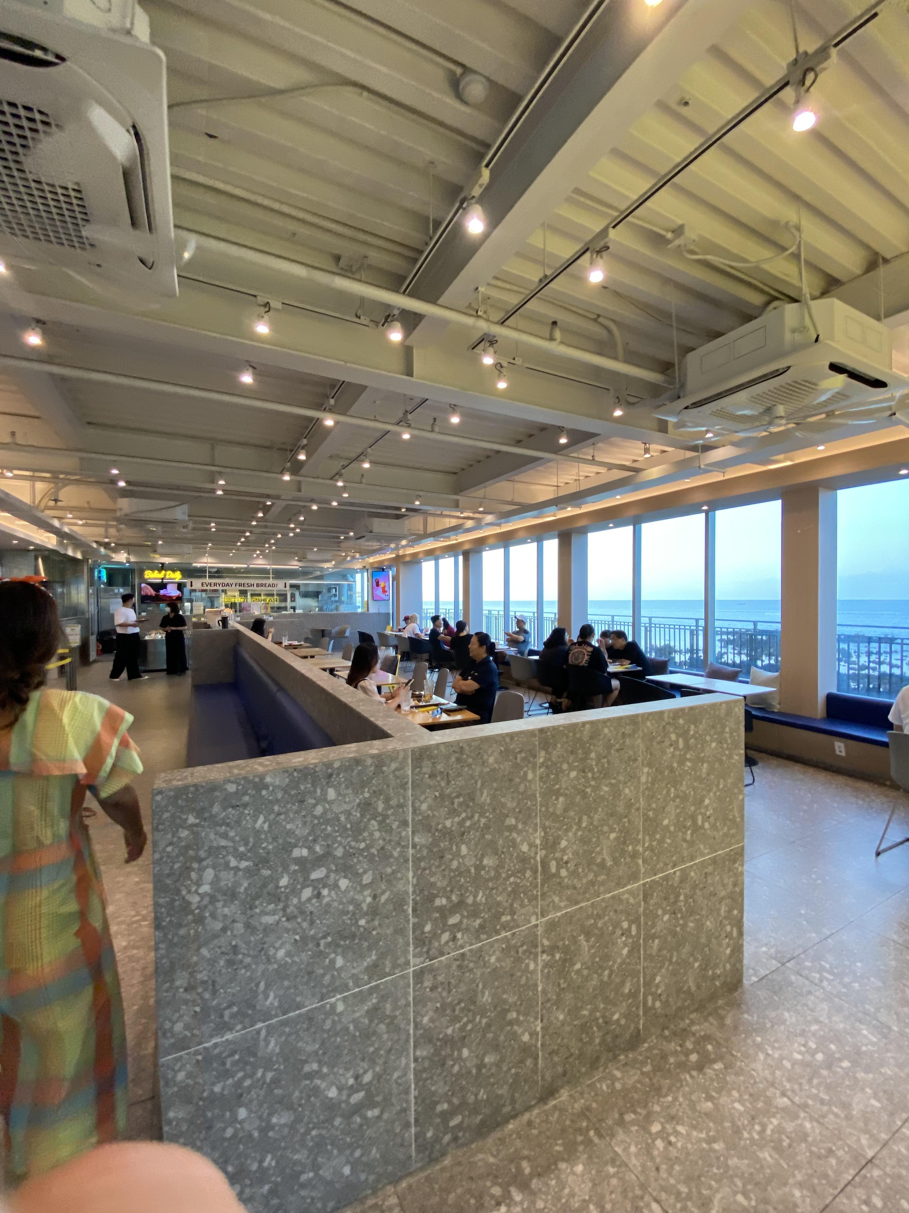 아쉽게도 2층 뷰 사진을 못 담았는데 여기 빽다방 베이커리 사수점은 2층 실내에서 보는 일몰 뷰가 가장 멋지고 좋은 거 같습니다. 다만 많은 사람들이 대부분 2층에 있어서 앉을 자리가 없었다는.ㅠㅠ 그래서 1층 테라스에서 저희는 제주 공기를 한껏 들이마시며 일몰 뷰를 즐겼지요. 너무 아름다웠는데 사진으론 담을 수가 없네요. 비행기 이착륙이 워낙 잦아 소음이 있기는 한데 뷰가 탁 트인 제주 바다를 즐길 수 있어서 집으로 가는 길에 발견한 마지막 선물 같은 휴식처였습니다. 뷰 맛집 인정!!!