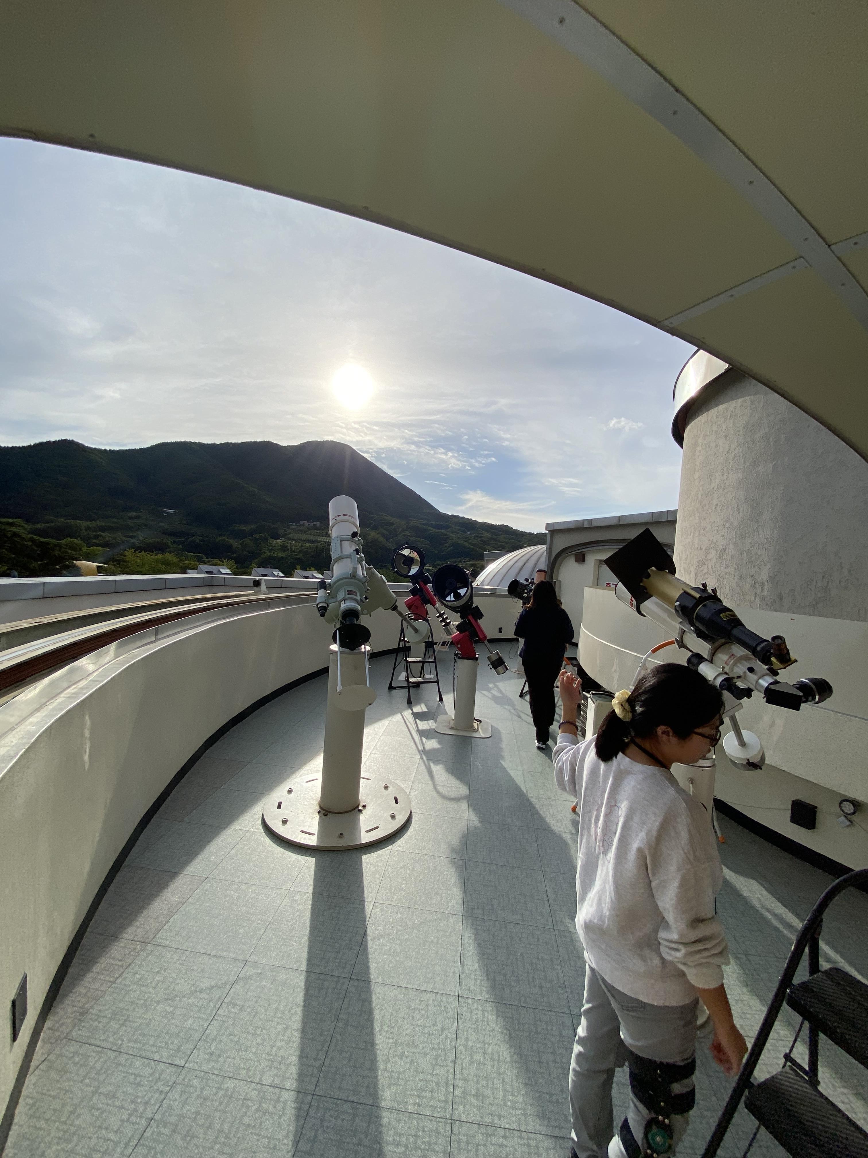 일반적인 천체 망원경은 맑은 하늘 밤에 별들을 볼 수 있는데 낮에 태양을 관찰할 수 있는 망원경으로 열심히 체험을 해봅니다.