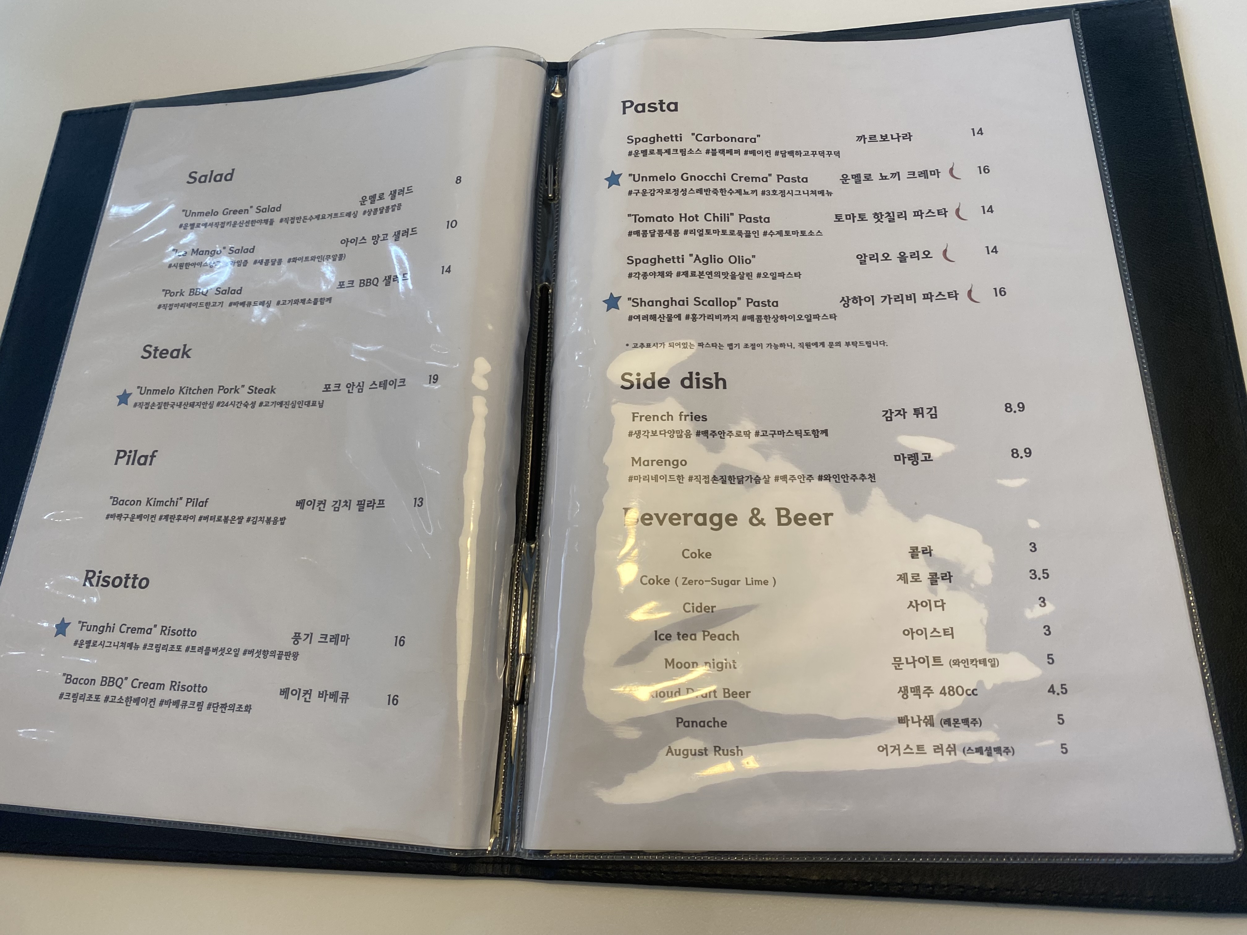 식구가 많으니 메뉴도 다양하게 주문을 했네요. 방문했을 당시엔 몰랐는데 글쓰기 위해 검색해 보니 운멜로키친이 수원에서 세 곳이나 운영되는 유명한 식당이더군요. 배가 고프기도 했고 맛도 좋아서 아이들과 어른들이 남김없이 싹싹 비워내기 바빴습니다. 안심 스테이크 참 맛있었는데 아이들은 역시 감자튀김에 홀릭~! 덕분에 스테이크로 어른들이 배를 채울 수 있었네요^^ 상하이 가리비 파스타는 살짝 매콤합니다. 맵찔이도 충분히 먹을 수 있는 맛이라 즐길 수 있을 거예요. 아이들은 역시 까르보나라 최애 메뉴 아닌가 싶은데요, 어른들은 소스 맛만 봤을 정도로 폭풍 흡입을 하더라고요. 리조또도 기본 크림소스 베이스라 아이들이 잘 먹었답니다. 수원 화성 맛집으로 강추!!