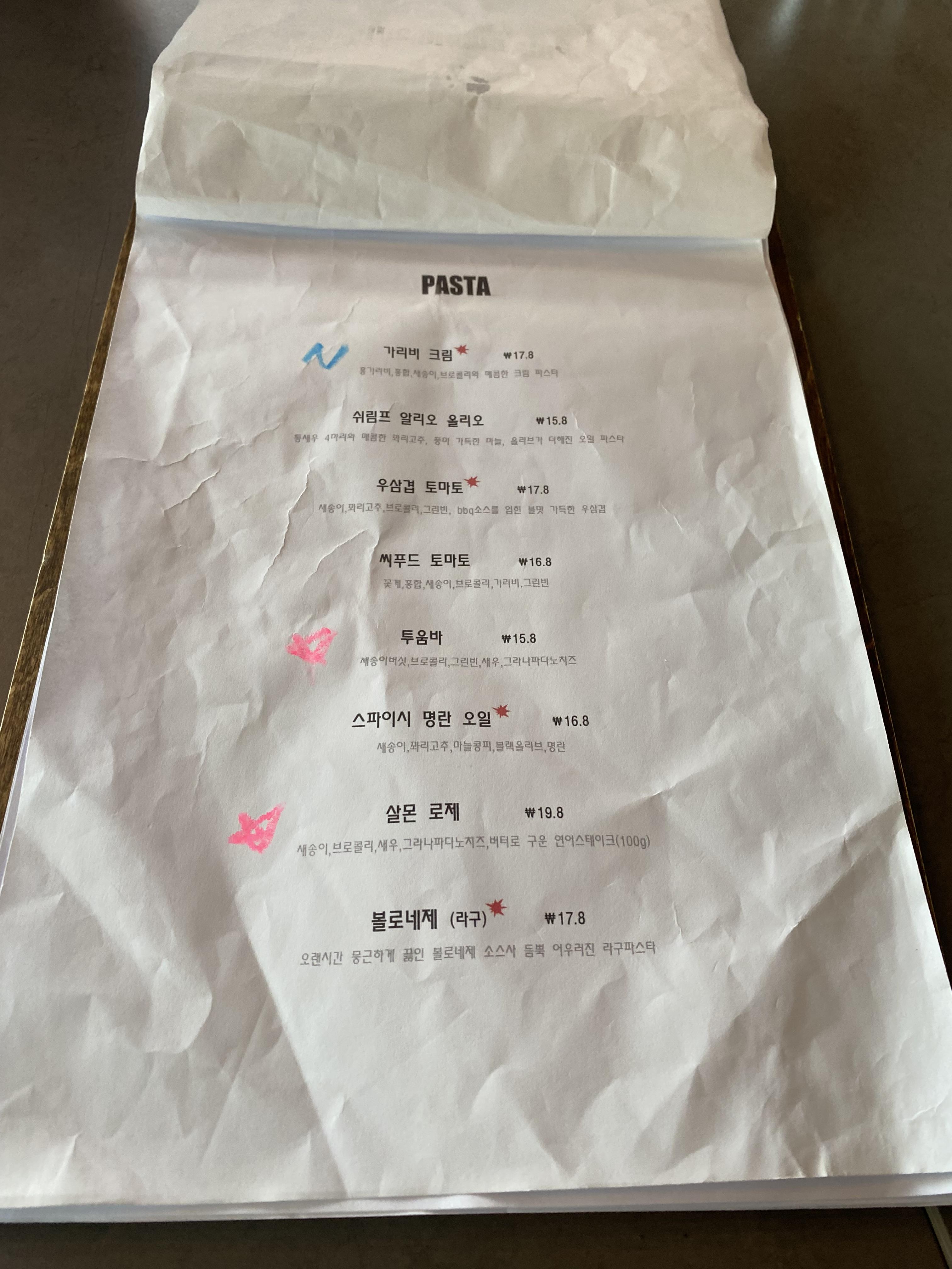 와이프님 따라가봤더니 예전에 청와대 출신 쉐프님이 운영했던 횟집이었는데 파스타 집으로 바뀌어있더군요. 청와대 출신 쉐프님의 횟집도 나름 괜찮았는데 파스타 집으로 바뀌어있어서 살짝 아쉽기는 했어요.