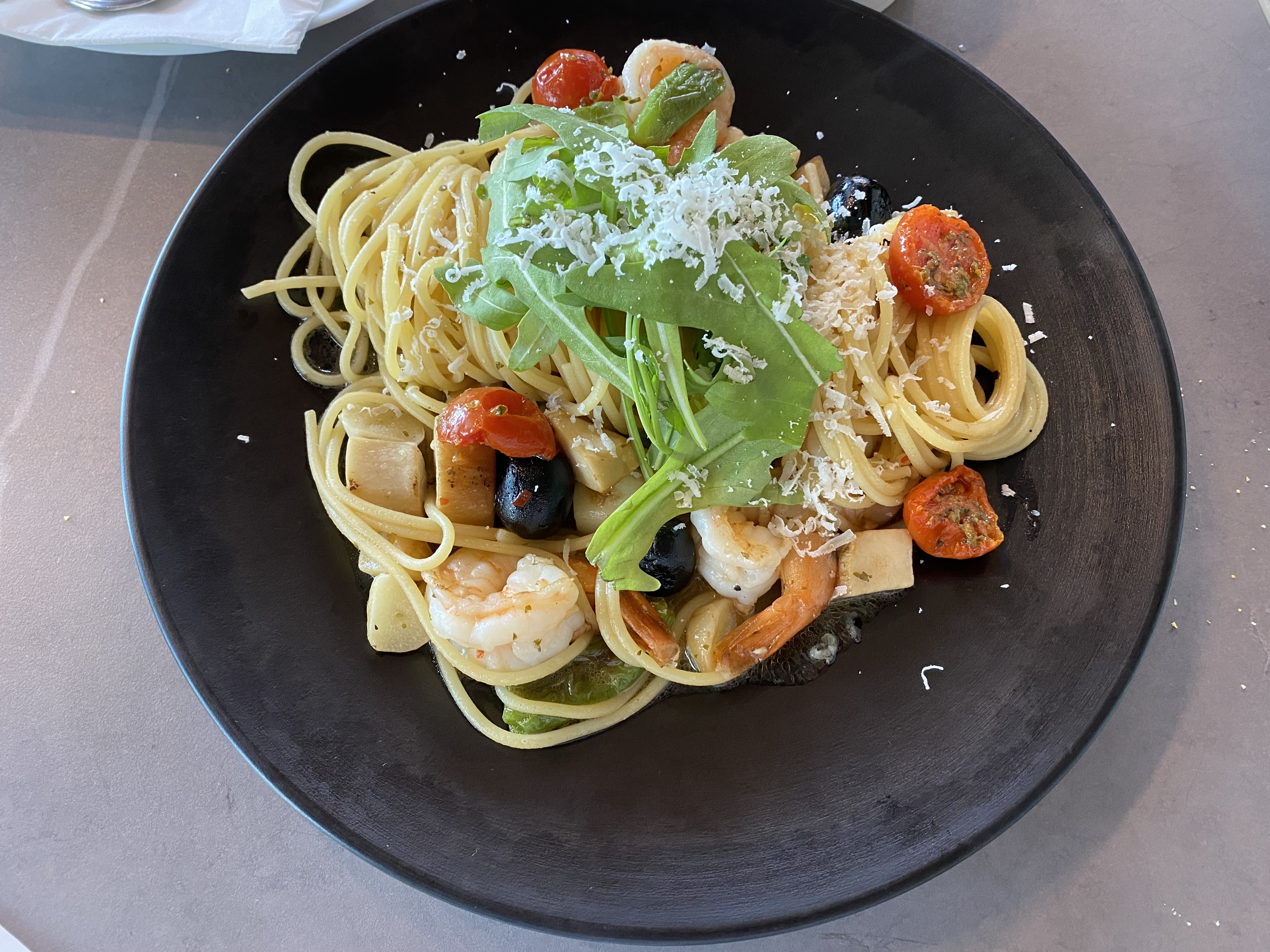 아들이 엄빠를 위해 선택한 쉬림프 알리오 올리오 파스타가 나왔습니다.