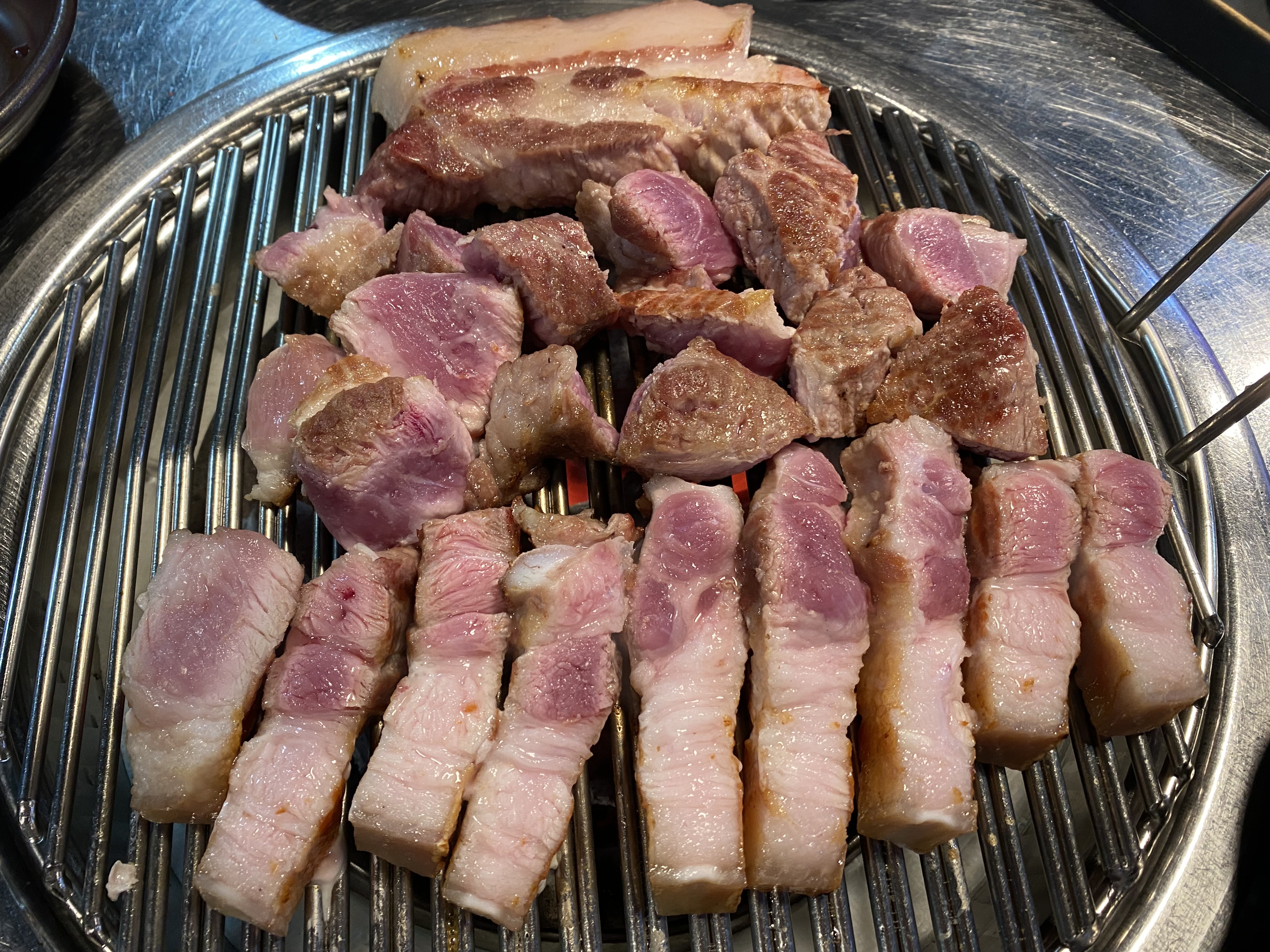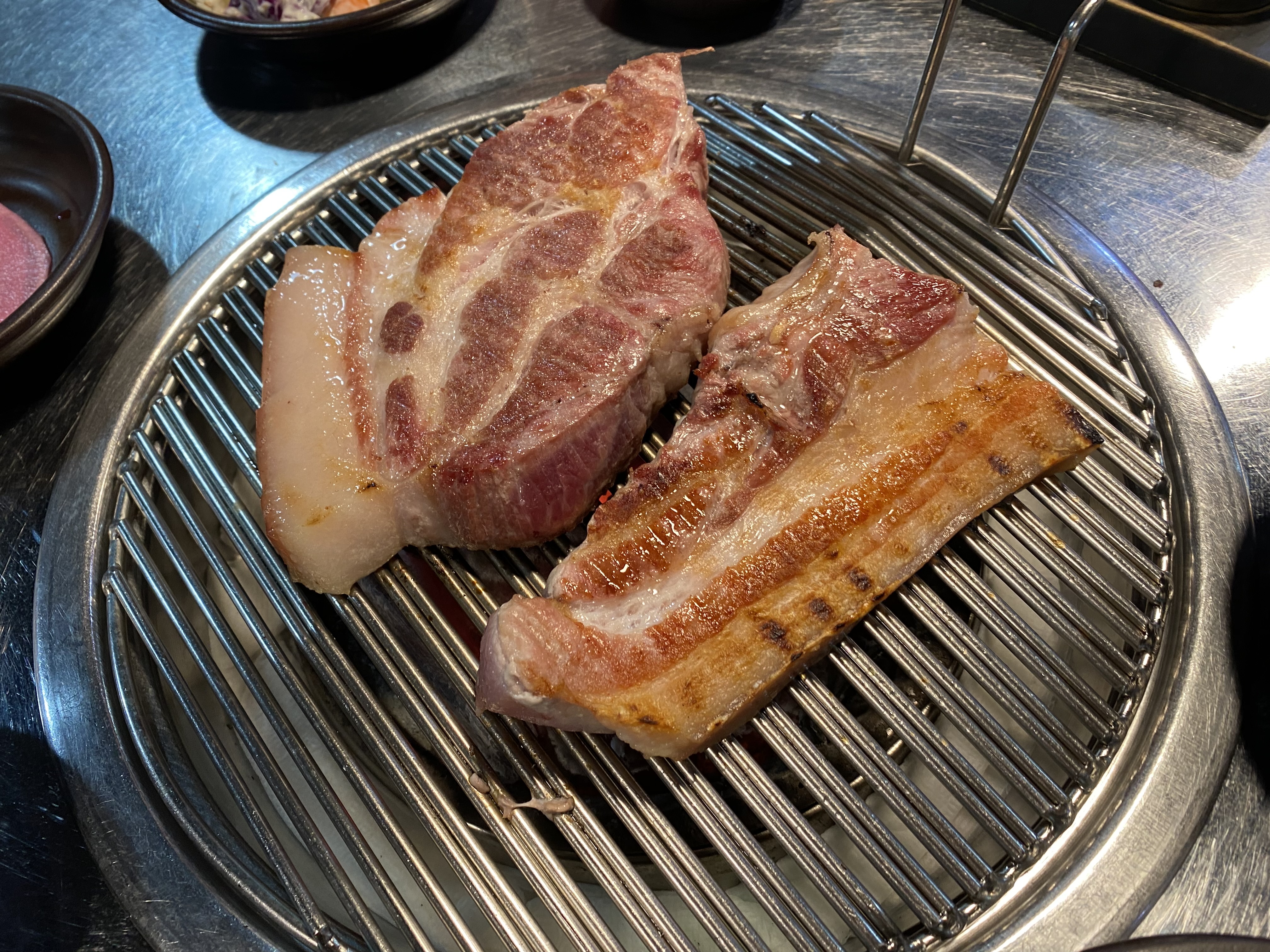 목살과 삼겹살 조합이 ~ 캬~~ 지금 봐도 다시 군침이..... 겉바속촉! 육즙이 팡팡 터지면서 순식간에 고기 한근이 입속으로 ~~ 고기 떨어지기 전 바로 삼겹 2인분 추가 주문에 들어갔고요~