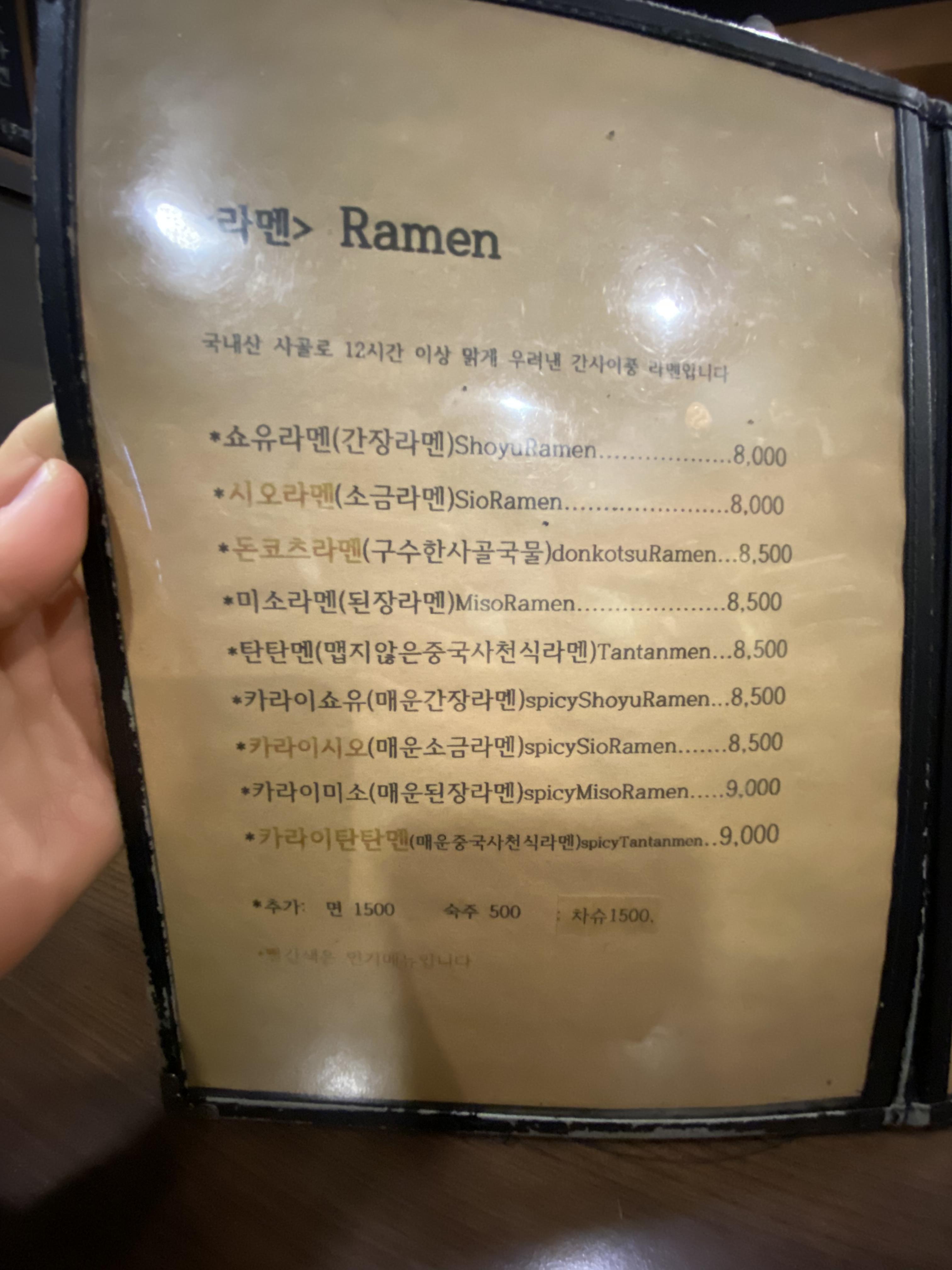 돈코츠라멘고 소금라멘을 처음 비교했을 때는 어리둥절했다랄까요? 이게 뭐지? 자세히 보니 국물이 달랐습니다. 돈코츠는 돼지뼈 사골 국물이라 기름기가 있는데 반해 소금라멘은 멸치육수랄까요? 기름기 하나 없는.... 흡사 우리나라 멸치육수 국물 같았습니다. 베이스가 다르니 당연히 라멘 맛도 확 차이가 나겠쥬? 소금라멘이 극강의 담백한 맛이 납니다. 일본라멘에서 느껴보지 못한 그런 담백함입니다. 살짝 호불호가 갈리겠으나 세트메뉴로 나온 튀김류 요리들이 기름기가 많아서 조합아 아주 좋더라고요. 새우튀김이나 고로케 먹고 살짝 느끼함이 올라올 때 요 소금라멘으로 입안을 싹~~ 씻겨주면 찰떡궁합!! 돈코츠라멘은요~ 그야말로 아들의 폭풍 흡입으로 국물 맛 만 보고 끝냈답니다. 기름기가 있지만 구수하고 소금라멘보다는 덜하지만 시원 담백한 맛이 좋습니다. 울 동네 라멘 맛집으로 강추!!