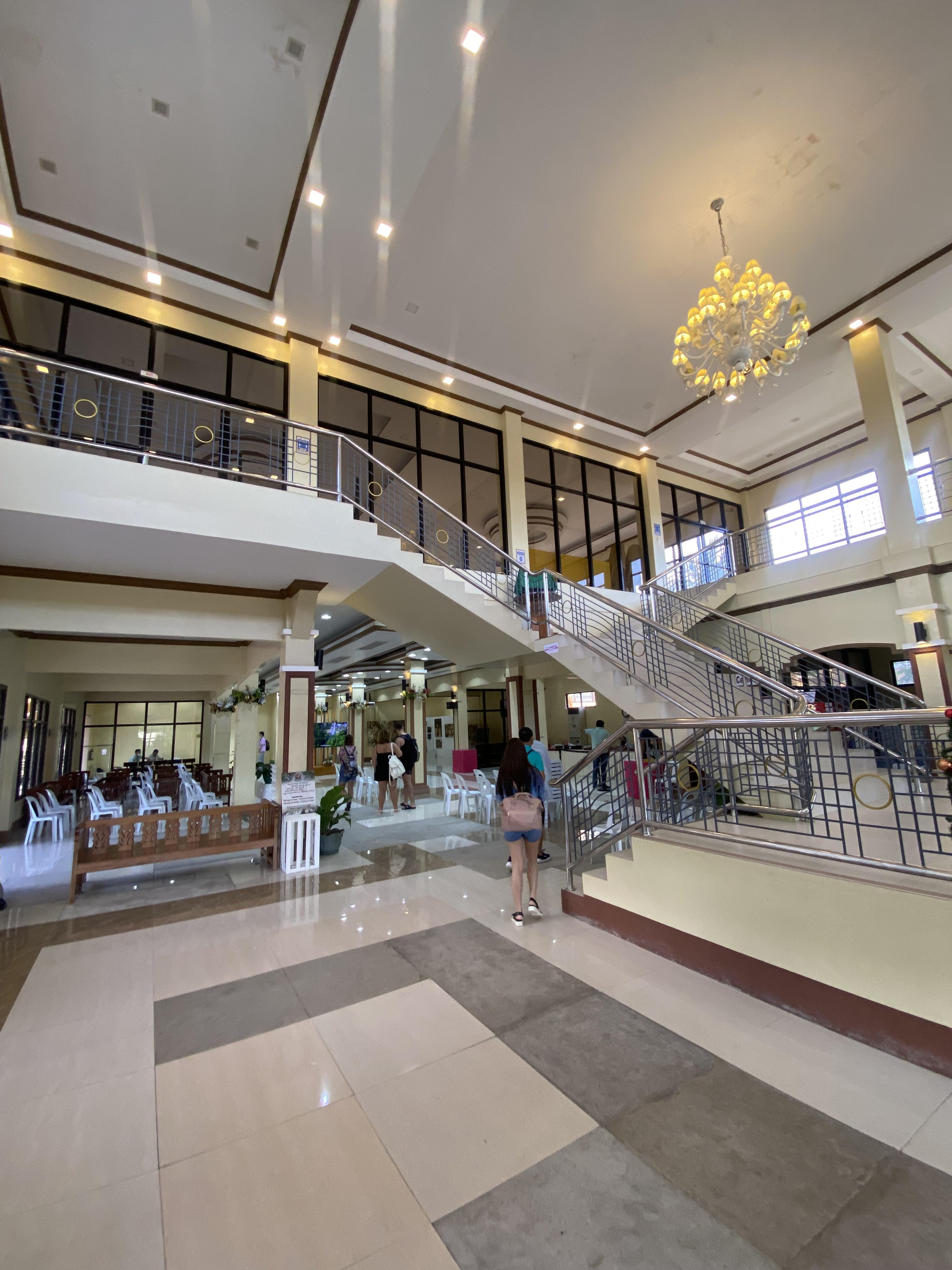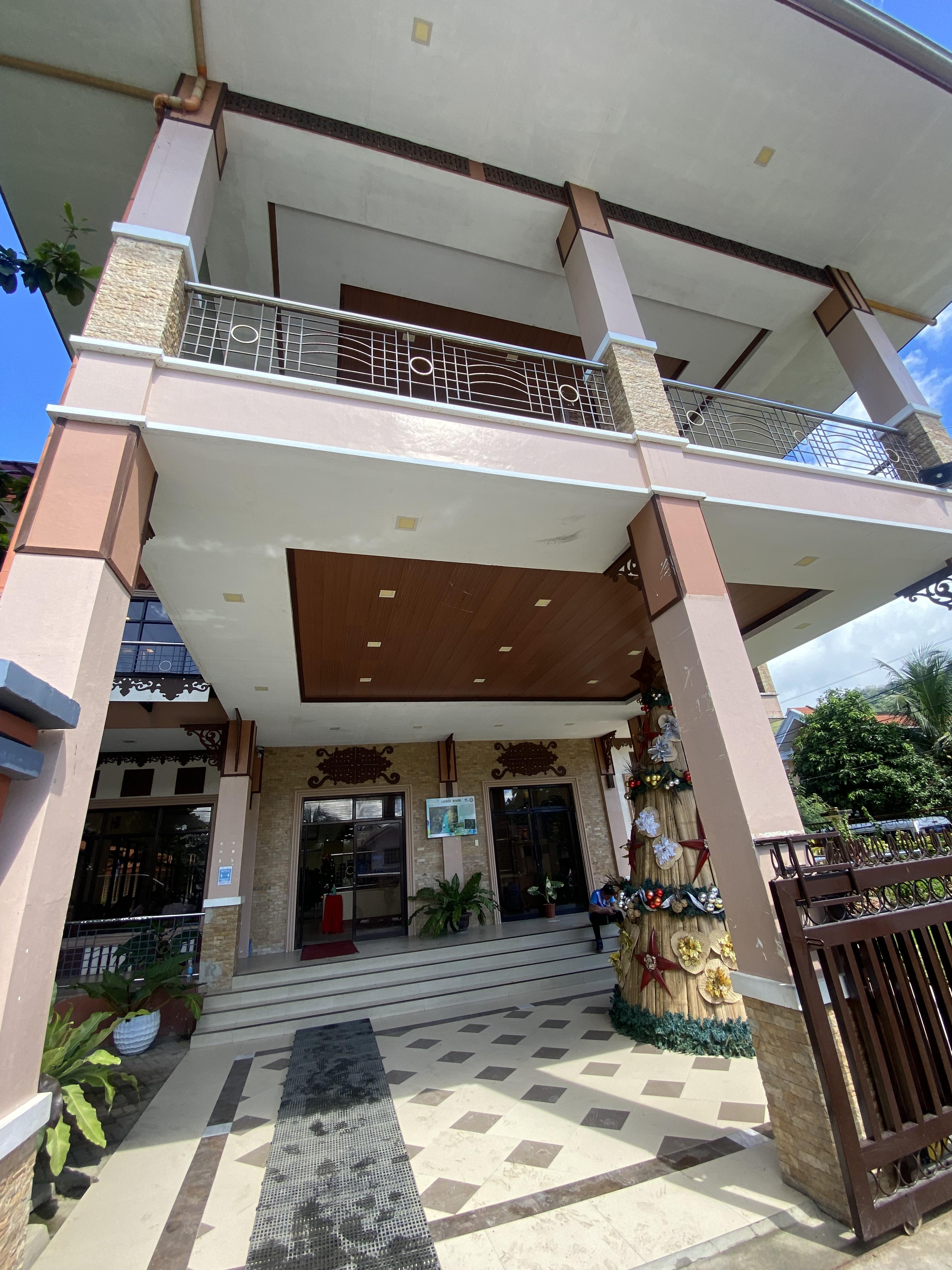 가이드님이 건물 입구에 세워주면서 파킹하고 온다고 안에 들어가서 잠시 기다리라고 합니다. 필리핀은 아직 크리스마스 축제 분위기가 계속 이어지는 느낌이었는데 건물 입구에 대나무로 만든 큰 트리를 보고 감탄했지요.