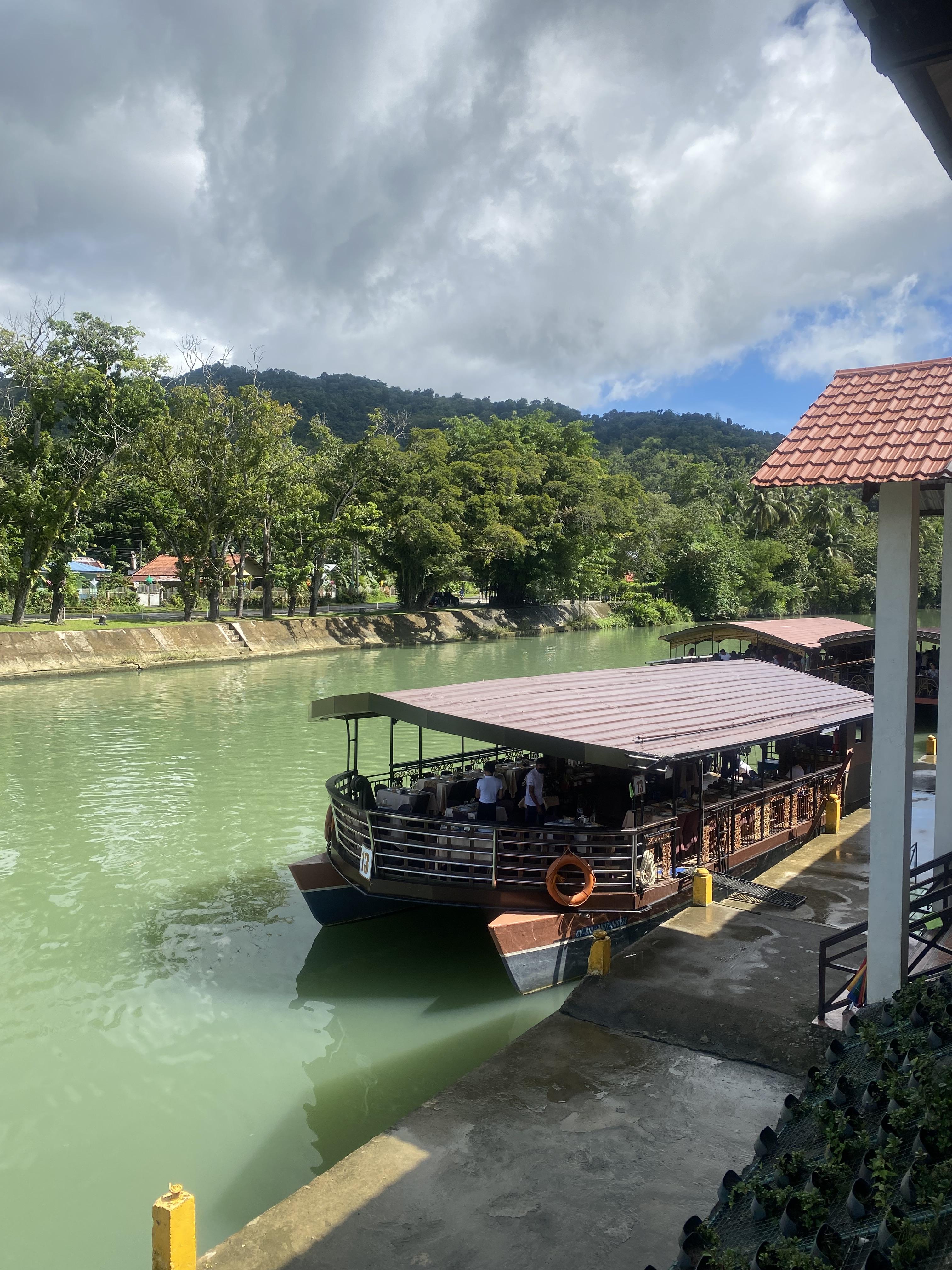 보홀 23년 12월 31일 ~ 24년 1월 4일 동안 다녀온 (3박 5일) 가족여행기를 열심히 적고 있습니다. 여행 1일차 초콜릿힐 투어 상품에 대해 소개하고 있는데 나비공원 다음으로 들렀던 Loboc River Cruis에 관한 이용 후기를 소개합니다. 나비공원에서 퍼붓는 소낙비에 정신없이 첫 번째 투어 코스를 마치고 가이드님이 다시 어디론가로 열심히 차를 몰고 갔습니다. 점점 보홀 섬 안으로 들어가는 듯한 느낌이 났는데요, 강 하류를 타고 위로 위로 올라가더니 어느덧 점심 식사 시간이 되어가는데 외국인들이 많이 보는 관광명소 같은 곳에 데려다주더군요. 배 선착장이 보이고 백인들이 엄청 많이 보였습니다.