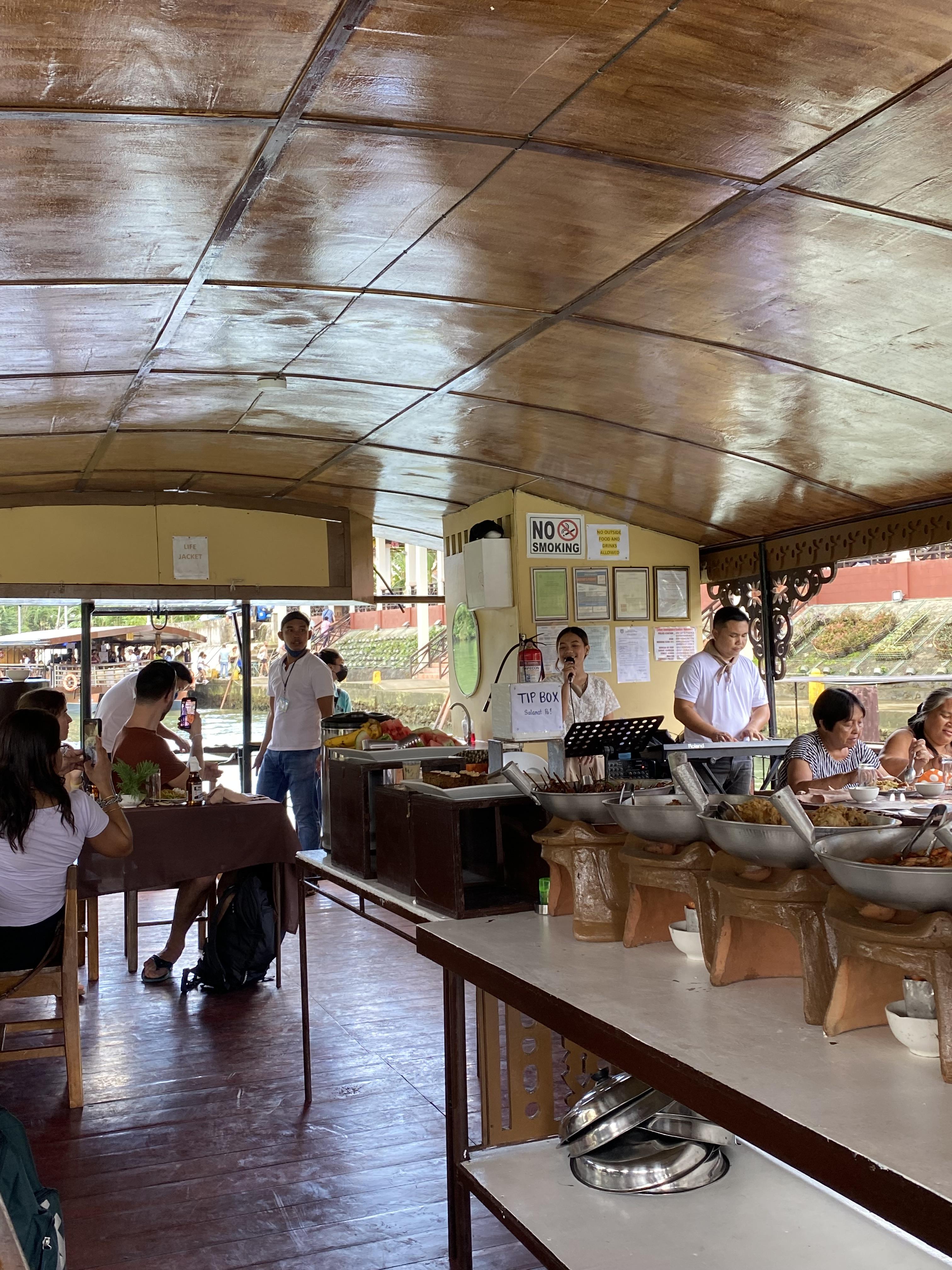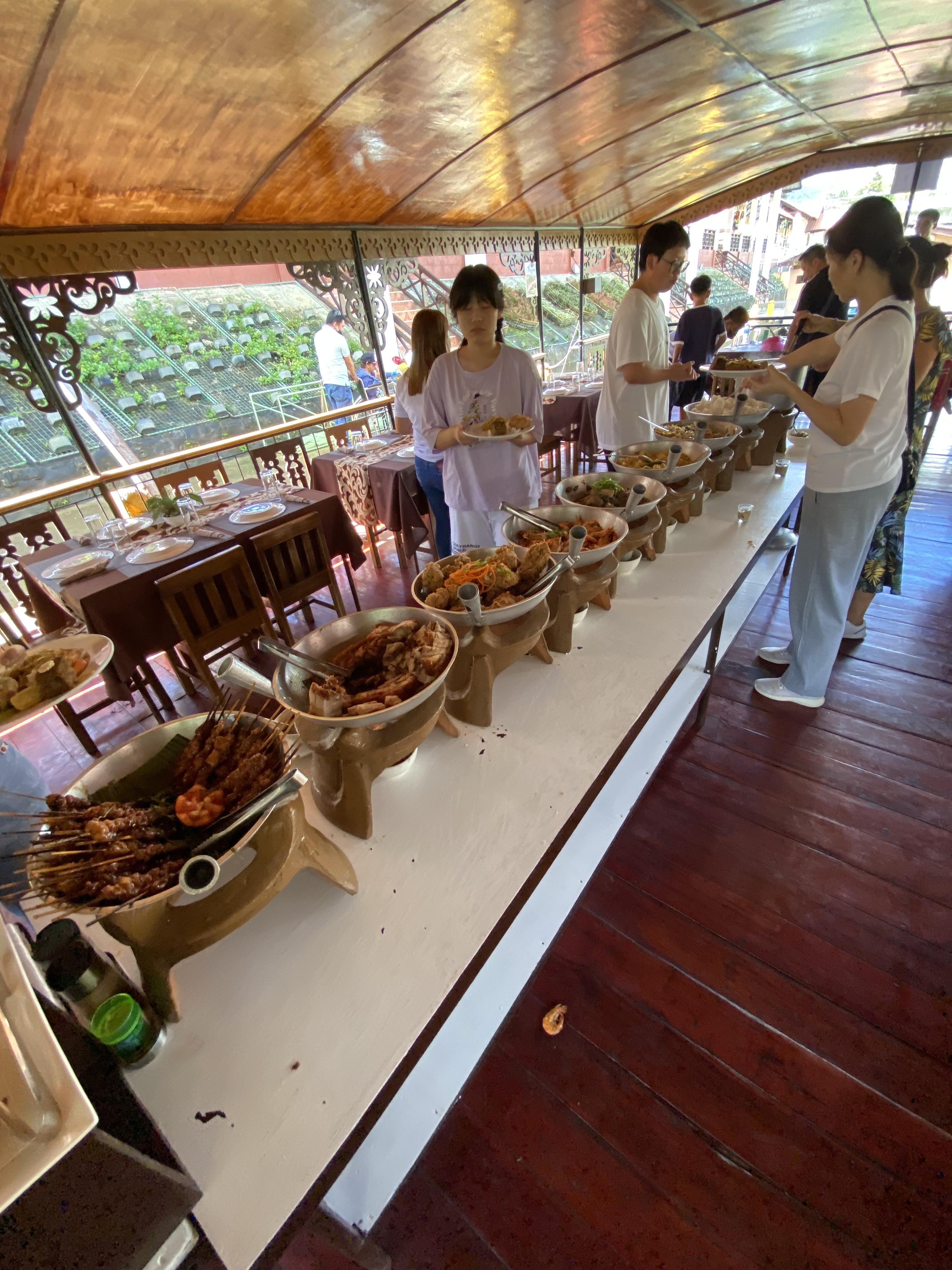 아하~~!!! 배를 타고 로복강 투어를 하는구나 했는데???!!! 이거 이거 배 안에 뷔페가 차려져있는 겁니다.