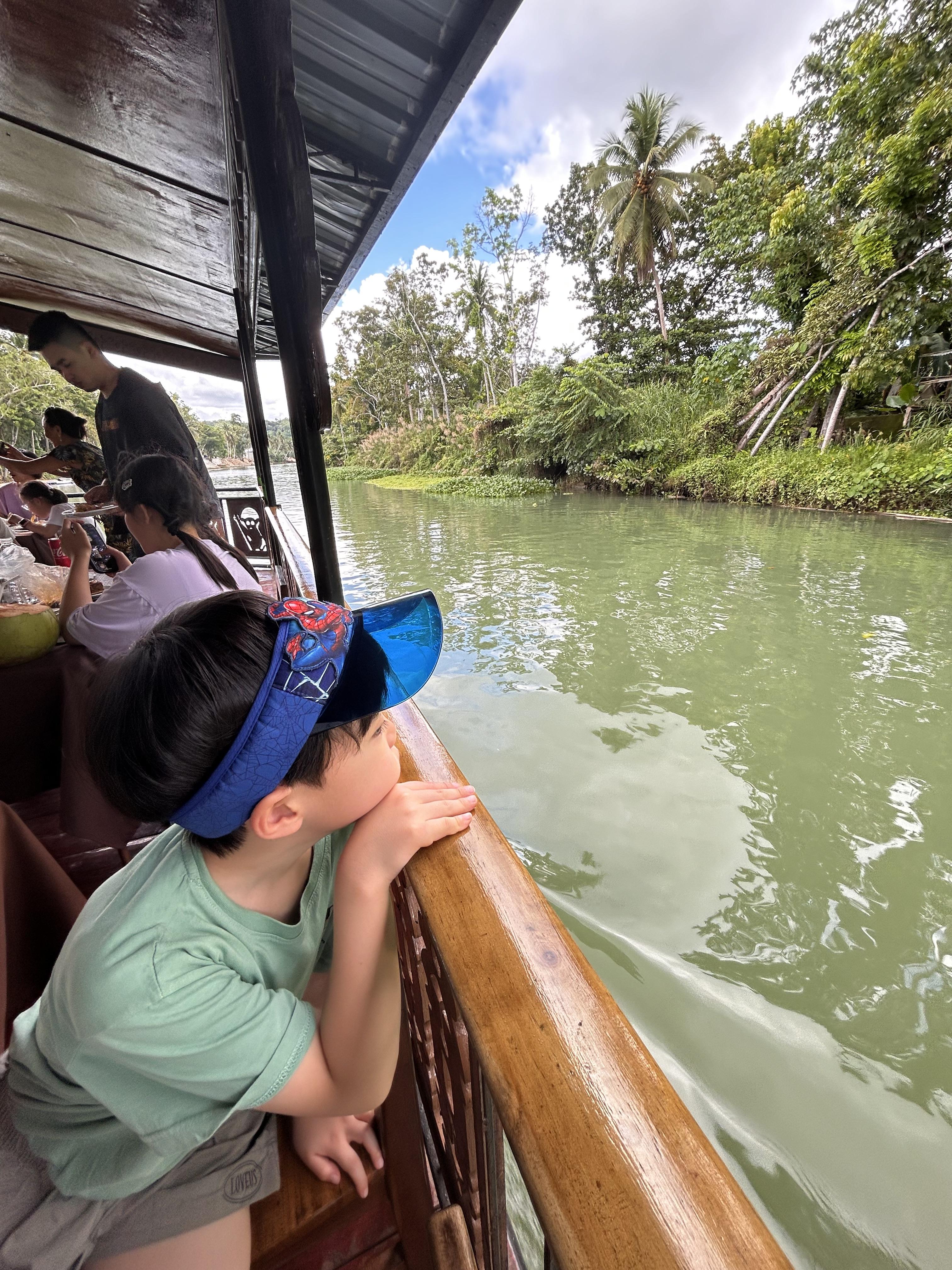 그렇게 밥을 한참 먹고 있는데 어랏?? 배 시동이 걸리더니 통통거리며 로복강 투어가 시작됩니다. 그리고 여성 보컬이 기깔나게 팝송, 한국 노래, 중국 노래를 투어가 끝날 때까지 불러주더군요. 맘에 들면 팁 줘야 하고요, 별로면 패쓰해도 되는데 저희가 탔던 배에서는 여성 보컬이 실력이 좋아서 귀가 즐거웠답니다.(100패소 팁으로 줬던 거 같음)