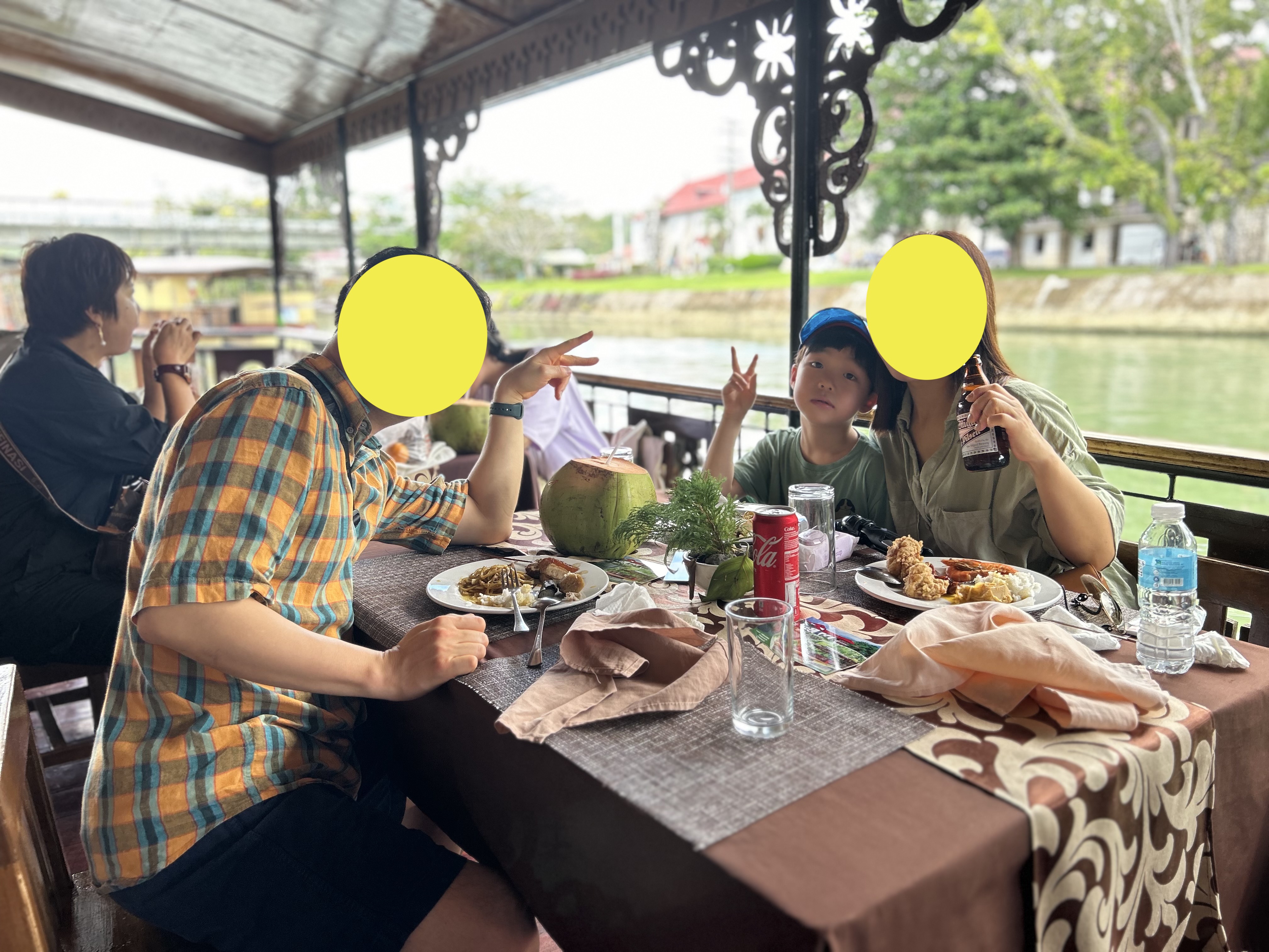 홀서빙 직원에서 사진 부탁해서 멋진 가족사진도 한 컷 담았습니다. 투어 중간에 현지 주민들이 전통춤을 추는 그런 장소도 있는데 보는 내내 짠하더라고요. 한국인은 저희만 있었고 중국팀과 백인+필리핀 가족팀이 있었는데 관광객들이 전통 춤추는 곳에서 참여하고 즐기면 당연히 팁을 내야 하는데 중국 사람들 그런 매너 교육이 안 되어있는지 실컷 즐기고는 노팁에 현지인들 맨탈 나간 듯 보이더군요. 그래서 저희는 관람만 했지만 땡볕에 수고로움이 안타까워 50페소 팁으로 줬습니다. 나비공원은 스콜에 열악한 환경으로 어이없이 그냥 순식간에 끝나버렸지만 여기 로복강 크루즈 투어는 관광투어 하는 느낌을 제대로 받았달까요? 한국 사람들이 없어서 더 좋았고요 음식은 지극히 개인적 입맛이 차이가 나니 평가할 건 못 되는 거 같습니다. 투어 금액 9,000페소에 모두 포함되어 있어서 여기 크루즈 이용 금액은 얼만지 모르겠으나 점심 배부르게 먹고 눈과 귀가 함께 즐겼으면 그만 아니겠습니까? 암튼 여기 투어 보홀에서 두 번째 장소였는데 괜찮다고 생각됩니다. 추천!!