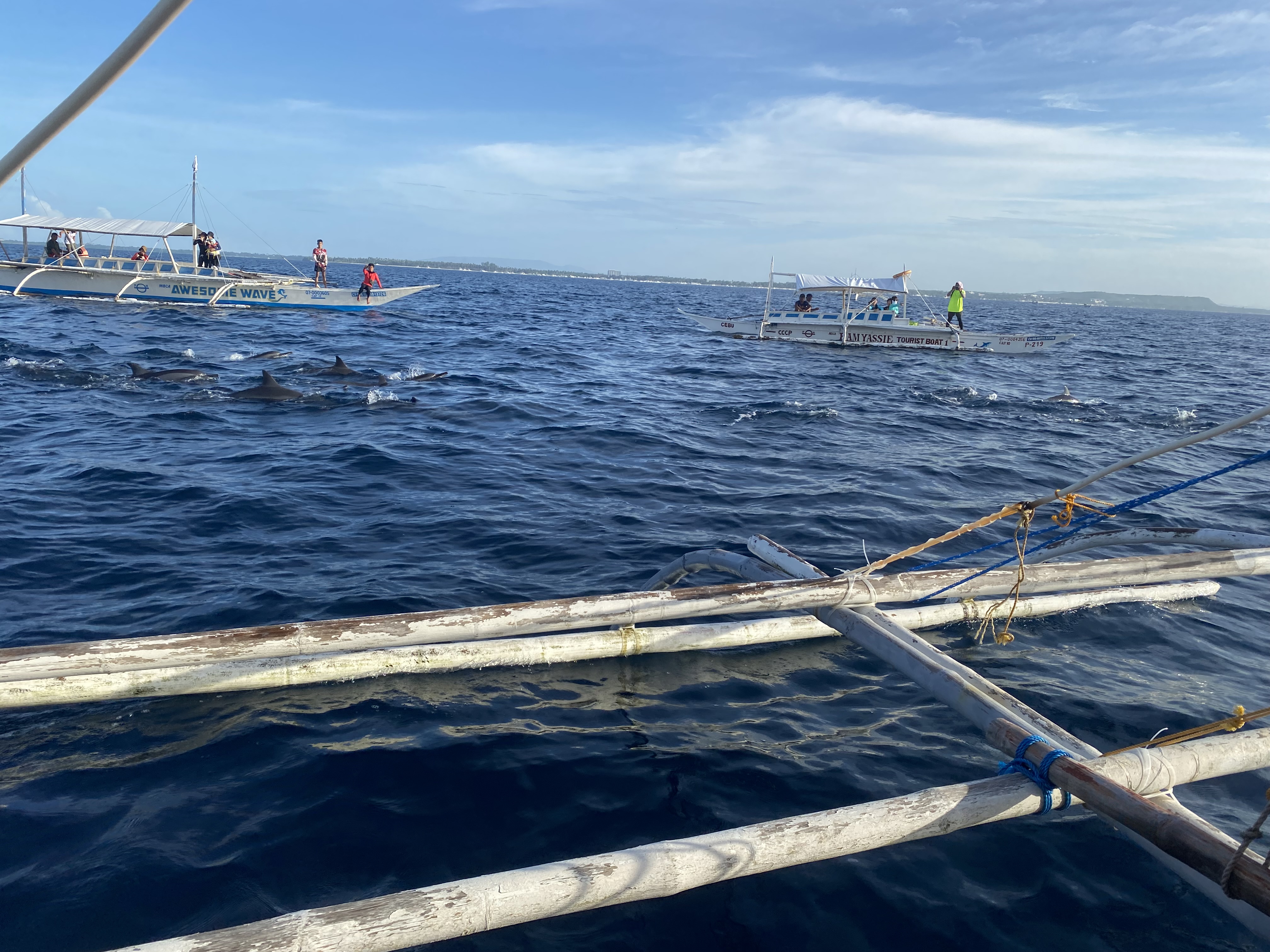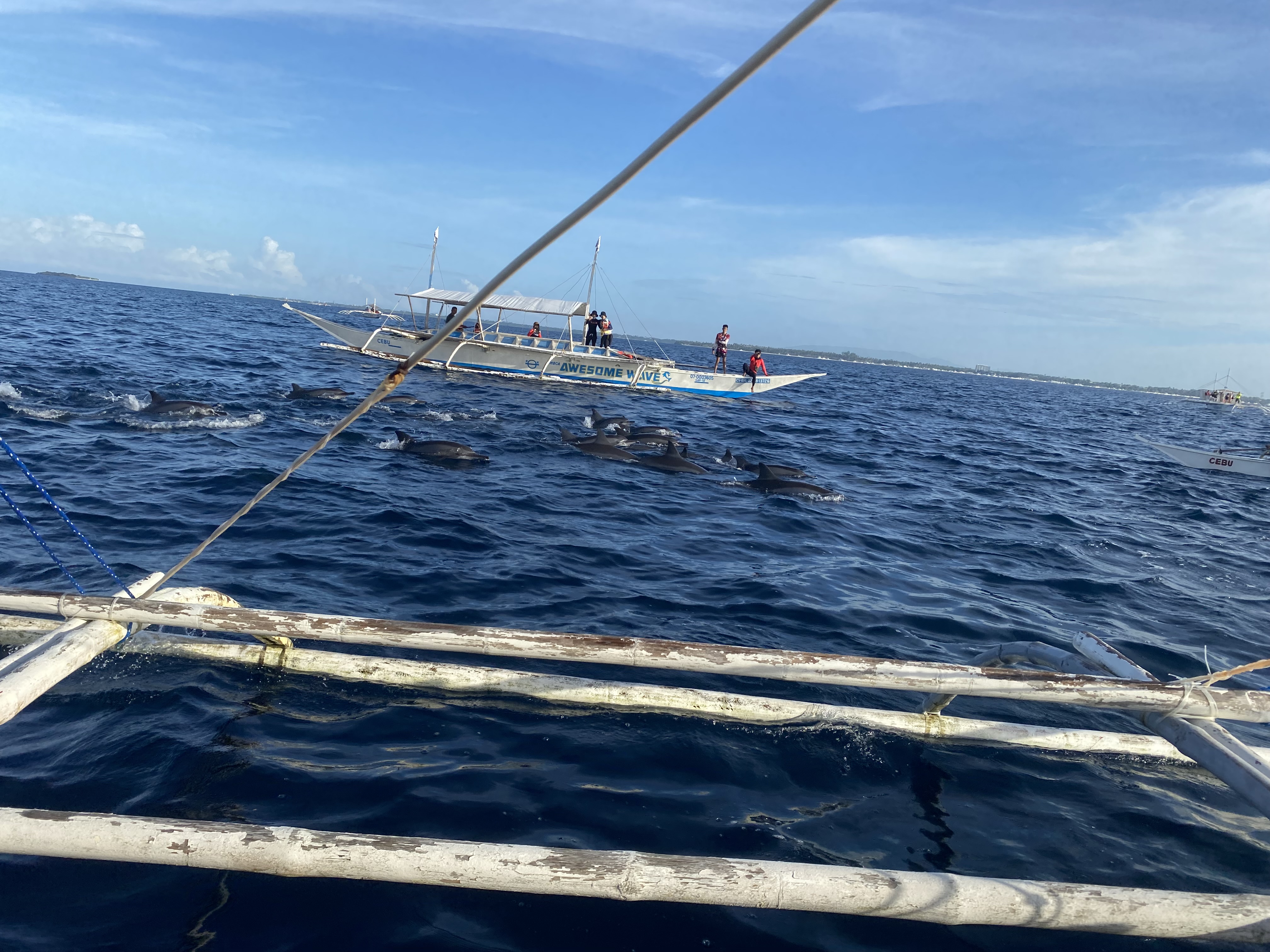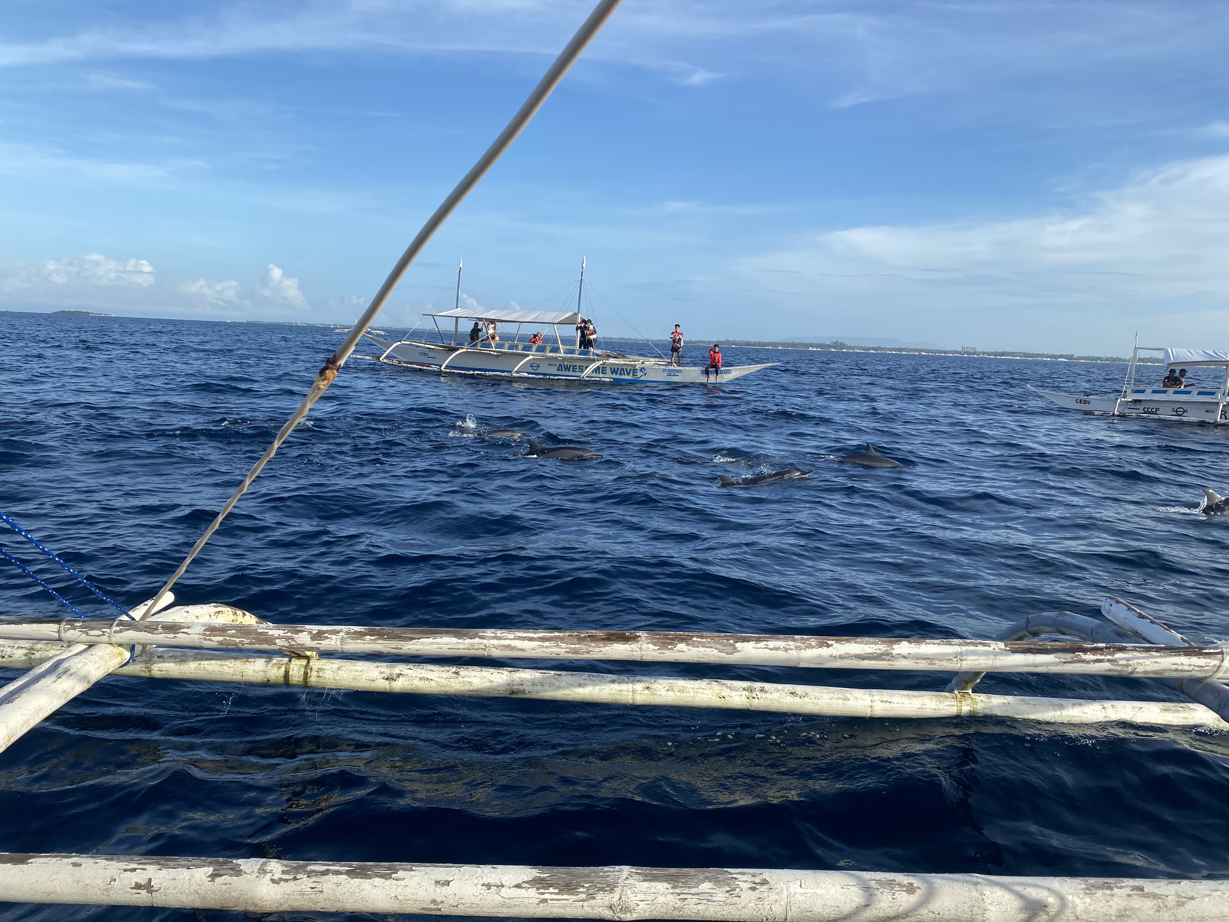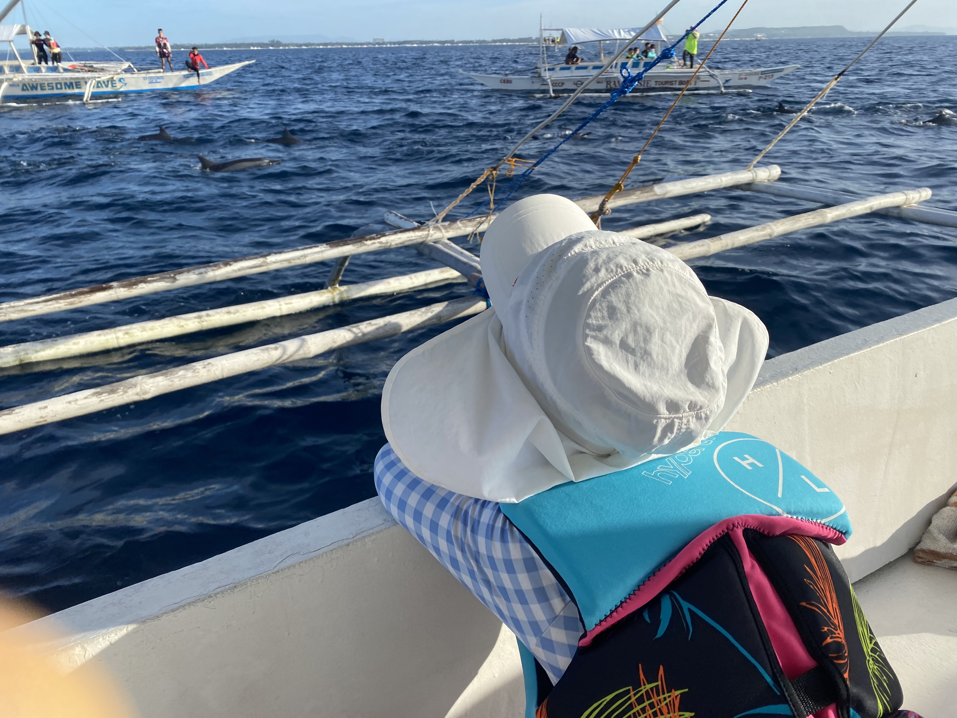 그날 날씨 상황에 따라 돌핀왓칭이 취소될 수도 있는데 호핑투어 당시 그날은 하루 종일 비 한 방울 안 내리며 쨍한 햇살에 바다 물놀이를 제대로 즐길 수 있는 날이었습니다. 그 덕에 목과 팔, 다리는 시커멓게 타버렸지유~ㅠㅠ 암튼 발리카삭 호핑투어 첫 코스로 돌핀왓칭은 대성공이었습니다.