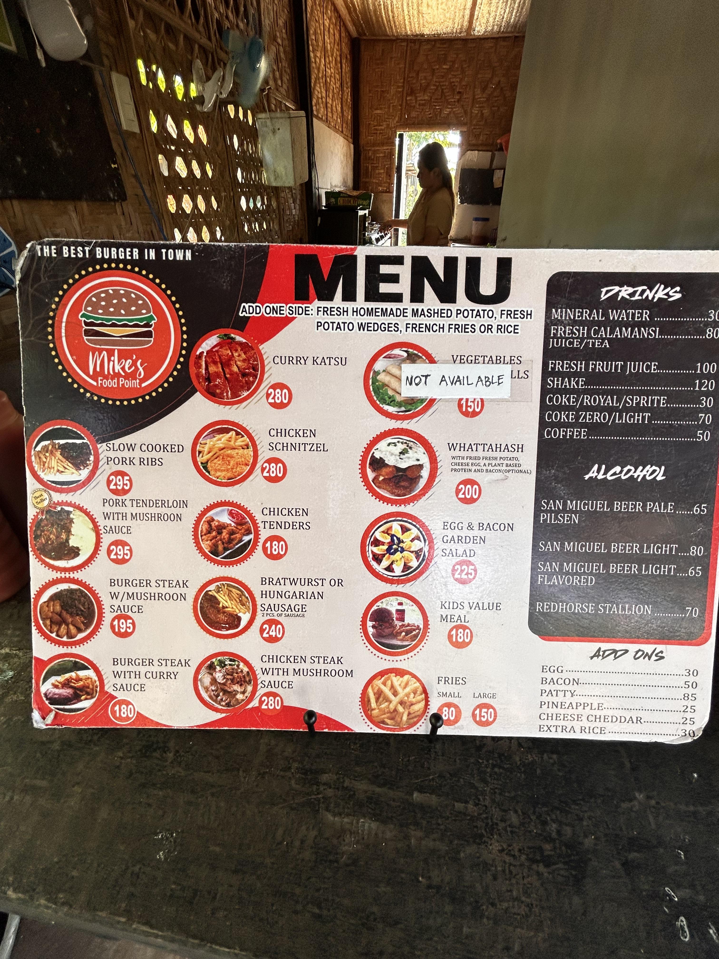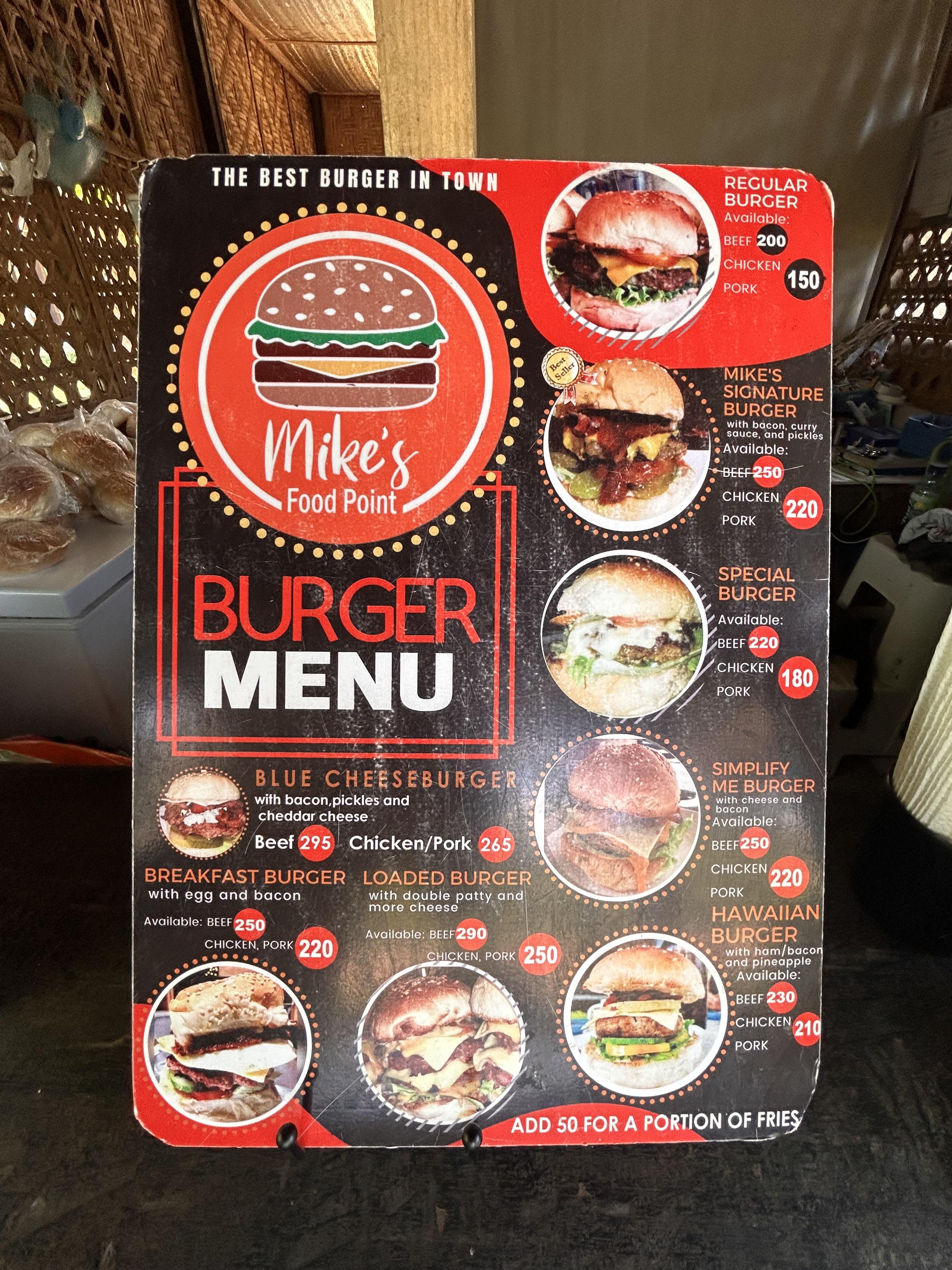 첫날 요기 지나갈 때는 문이 닫혀있어서 장사를 안 하나? 싶었는데 오후에 가보니 반갑게 오픈되어 있습니다. 뭘 먹을까 ~ 고민하다가 사장님이 베스트 마크가 있는 MIKE'S 시그니처 버거를 추천해 줬습니다.