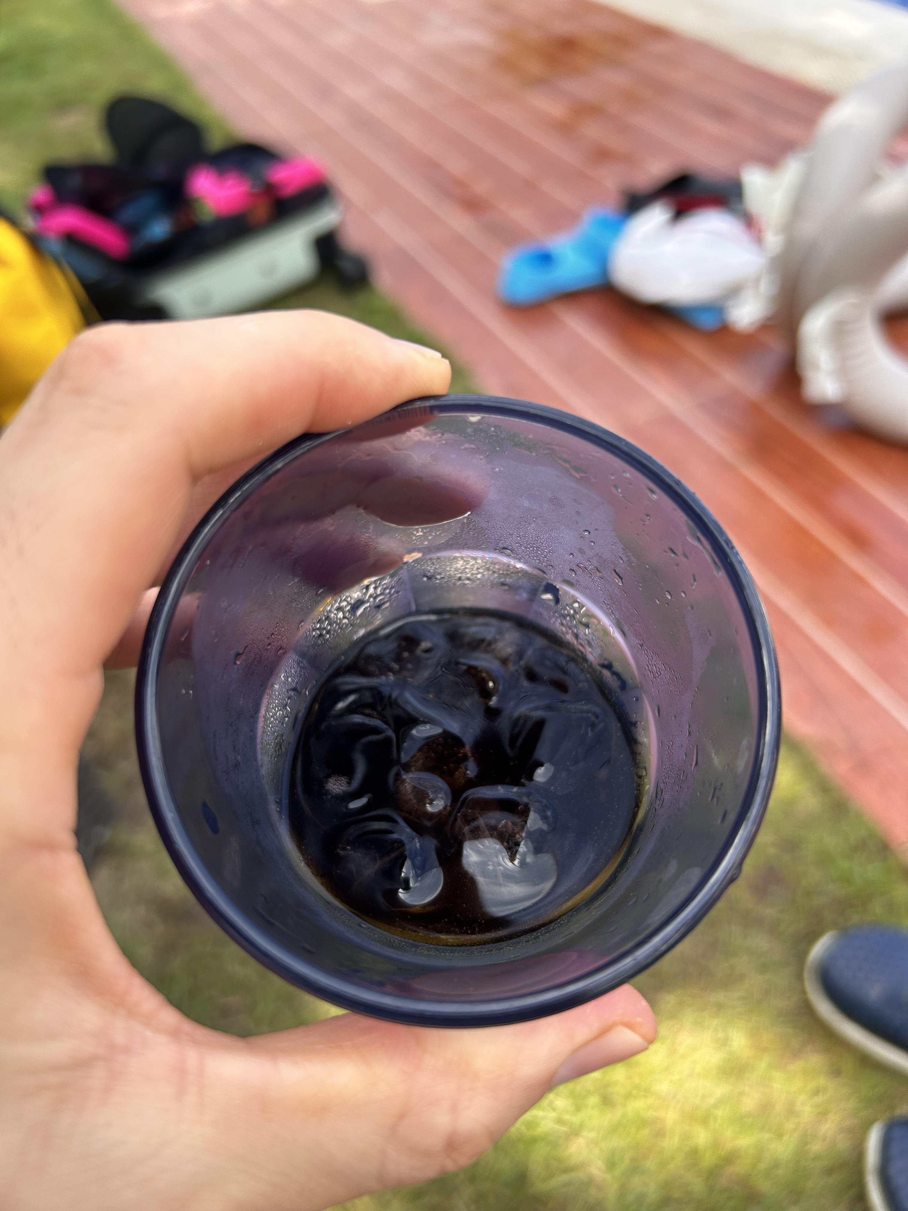 맛이 가늠이 안되어서 시음용으로 네 캔을 구입했는데 구입 당시 이것저것 여러 식료품과 함께 구입하느라 캔당 가격이 얼마인지는 모르겠으나 그리 부담되는 가격은 아니었던 거 같아요. 암튼 그날 저녁 숙소로 돌아와 한 캔 마셔봤는데 신세계~~ 존맛탱@@!!! 위 사진은 둘째 날 호핑투어를 마치고 리조트 수영장에서 물놀이하며 햄버거 먹을 때 남겨뒀던 잭콕을 인증샷으로 남기기 위해 찍어둔 사진입니다.