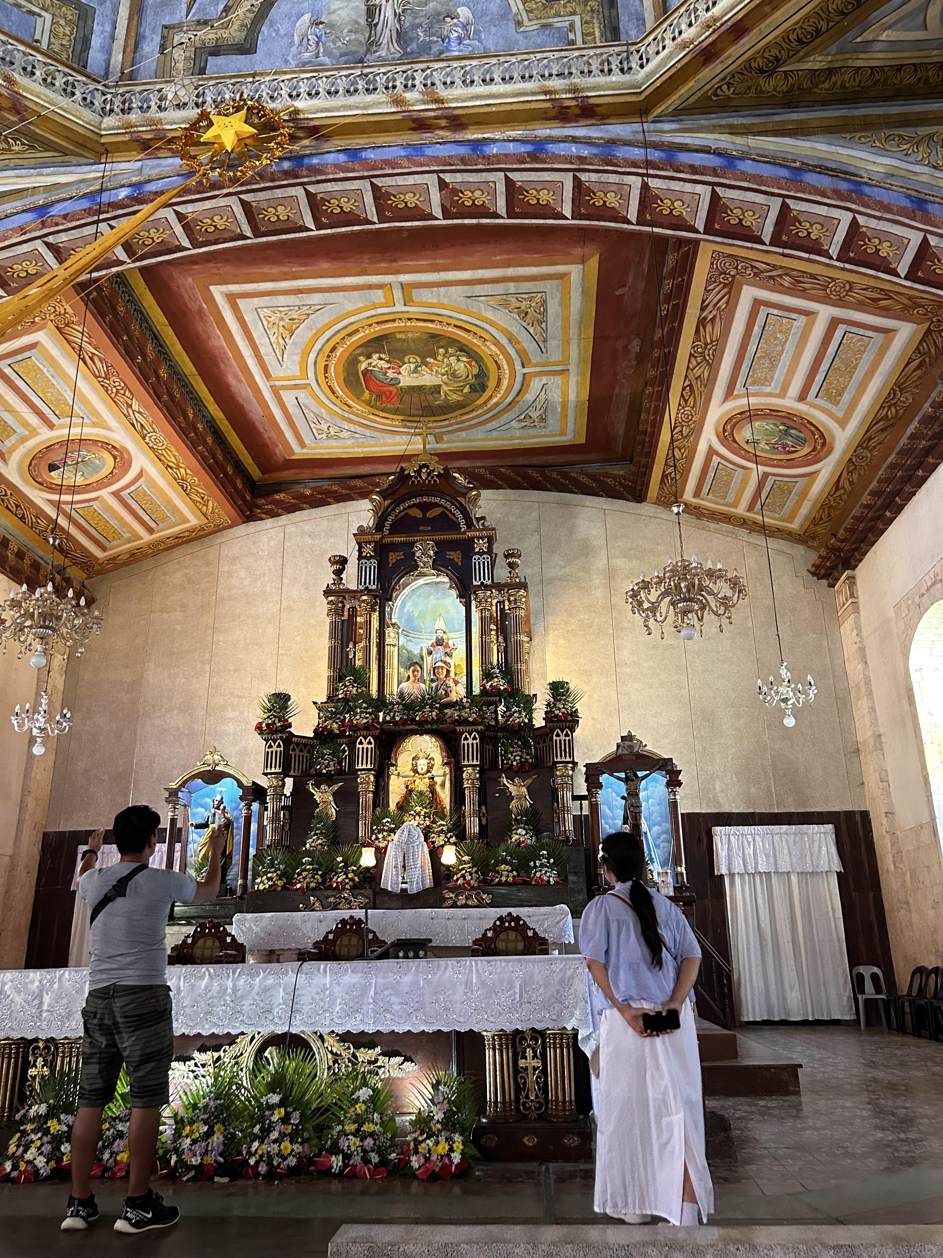 한국 성당에서는 절대 볼 수 없는 화려한 천장 그림들과 성모 마리아를 위한 제단도 마련되어 있는 팡라오 성당입니다. 실내는 덥고 습해서 오래 있지는 못하겠더군요.
