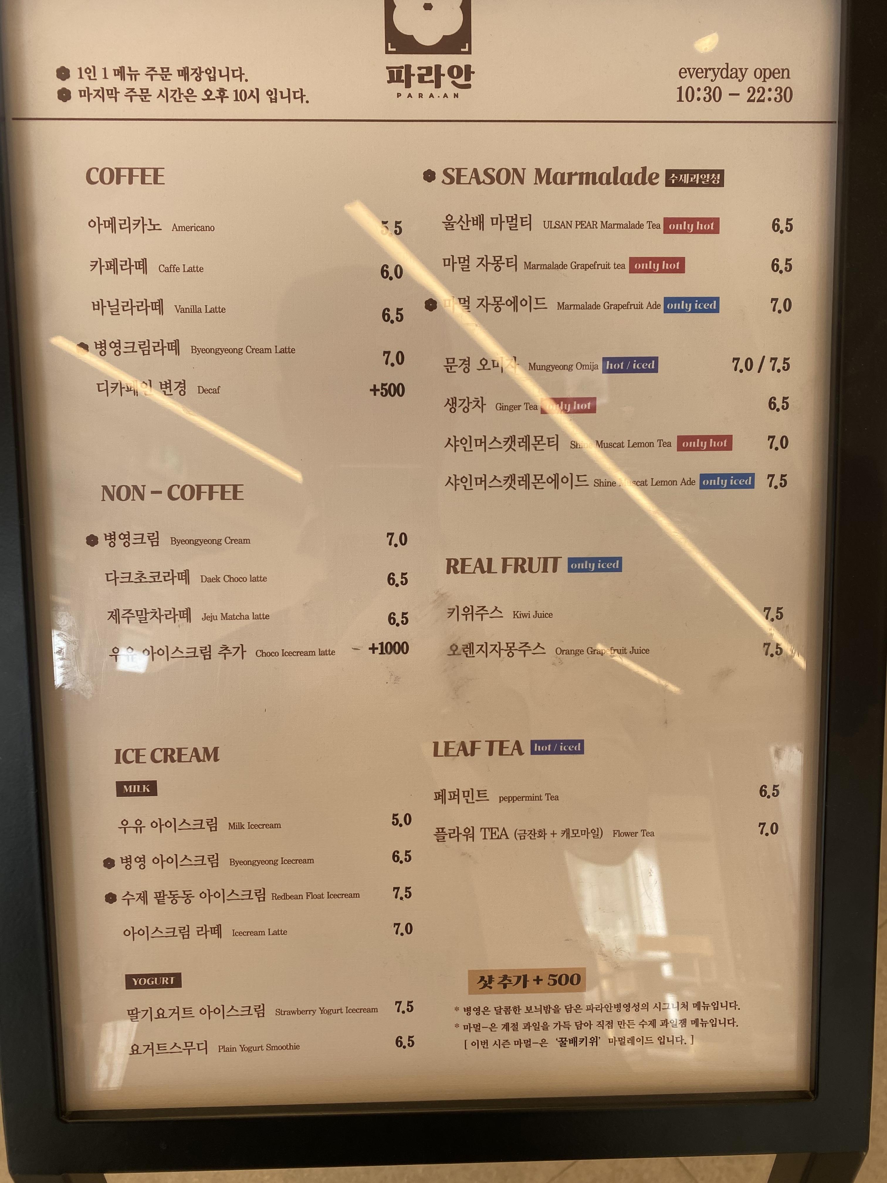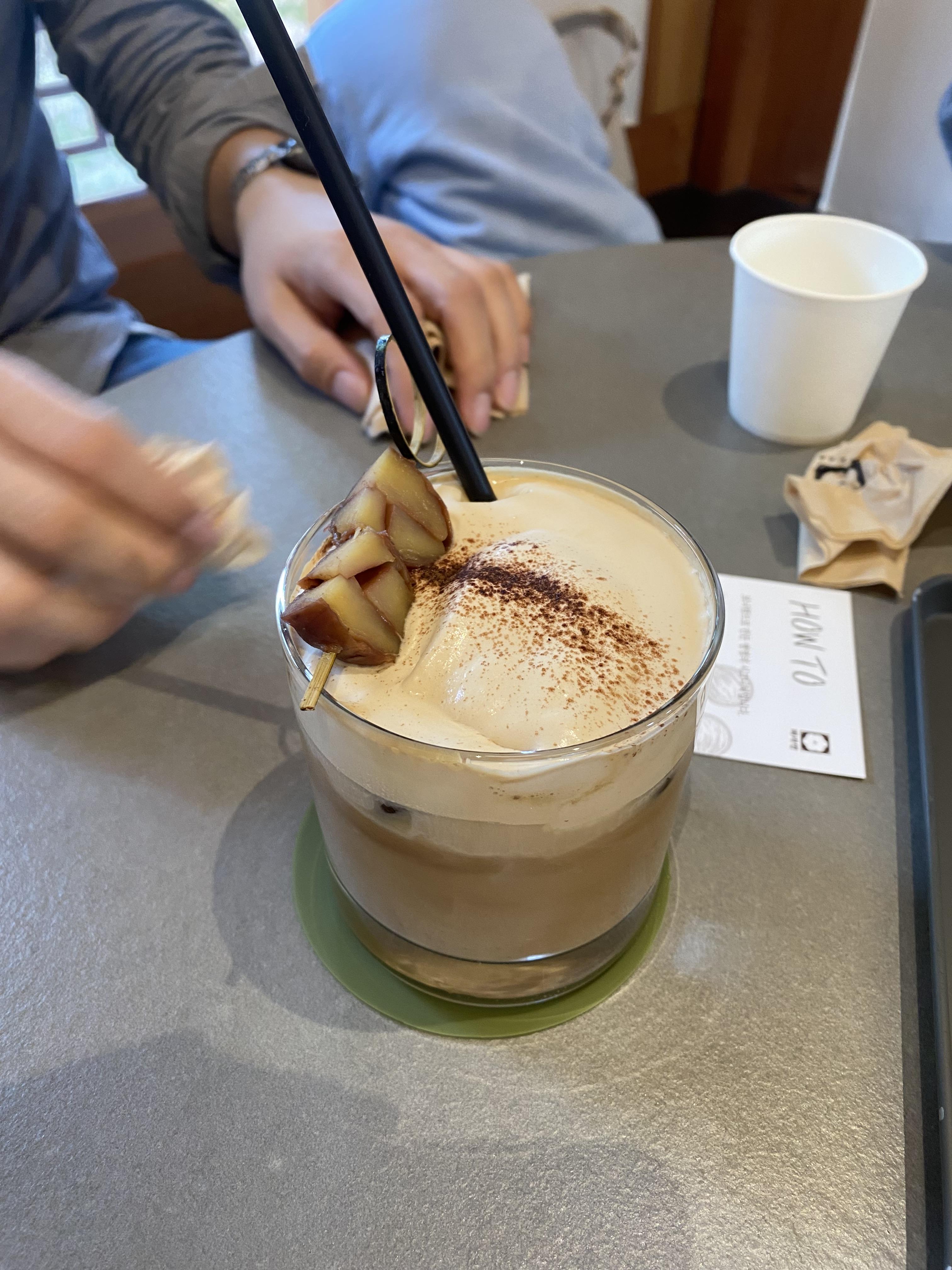 아이스크림도 있었고 우측 사진은 밤라떼 였던거 같은데, 파아란 시그니처 메뉴지만 그래도 밤이라는 주제라 큰 기대를 안 했었는데 맛있어서 좋았습니다.