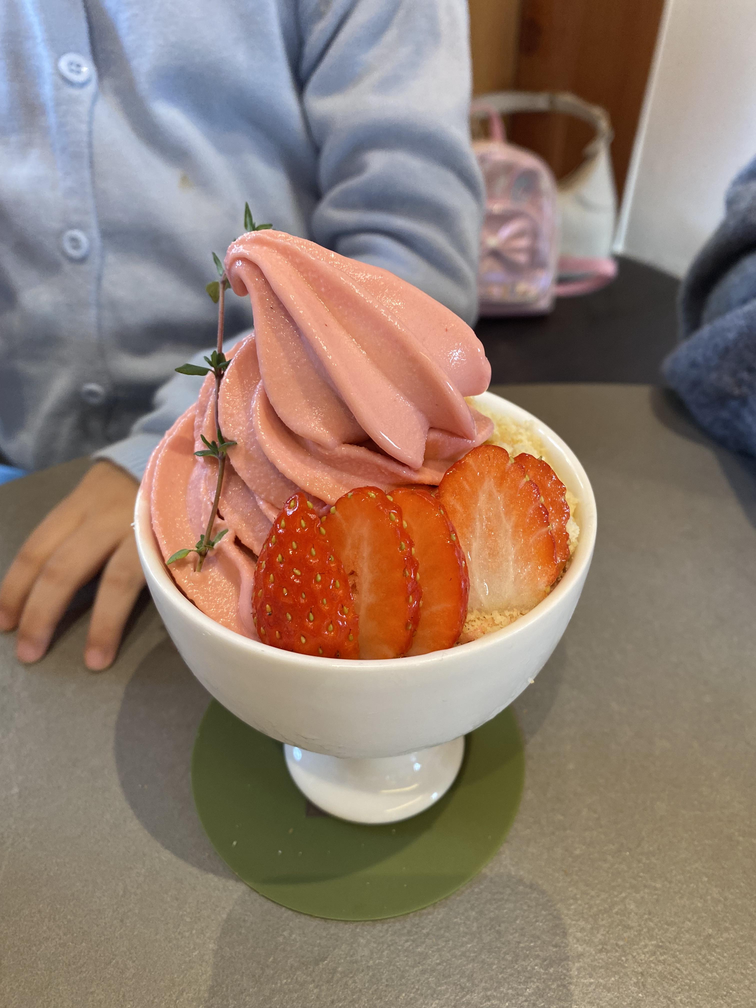 딸기 아이스크림은 준비가 안 되어 있어서 오래 걸린다고 다른 거 시키자고 꼬셨는데도 끝까지 딸기 아이스크림 먹겠다고~~ 결국 삼십분 넘게 기다리다가 맛볼 수 있었습니다.