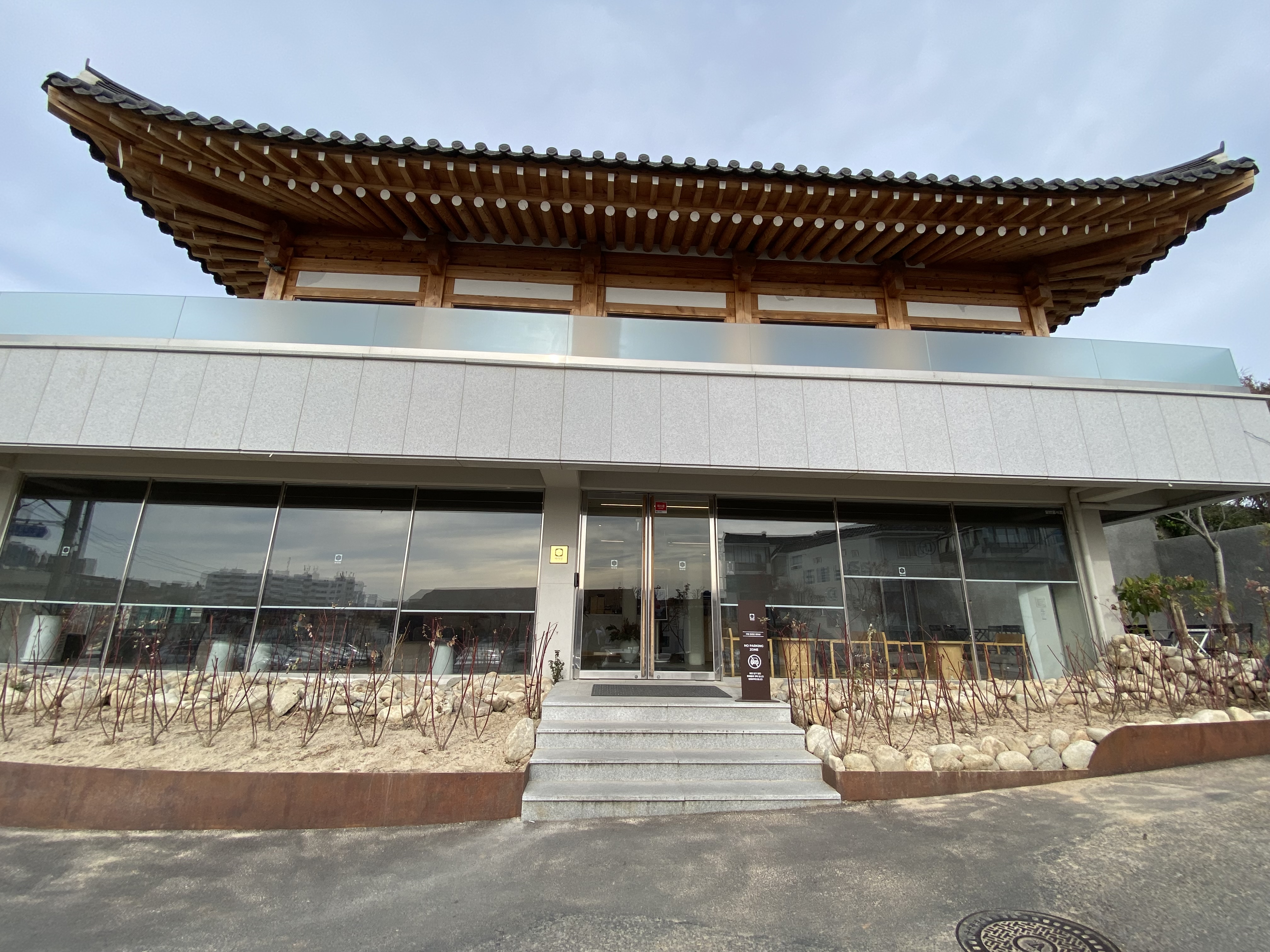 주차는 파아란 맞은편 큰 공터가 있는데 거기가 전부 주차장입니다. 입구로 들어오면 1층은 현대식 건물에 넓은 공간으로 실내외에 테이블이 있고 2층 자리가 만석일 때 주로 1층 테이블을 이용하는 곳이라고 보면 됩니다.
