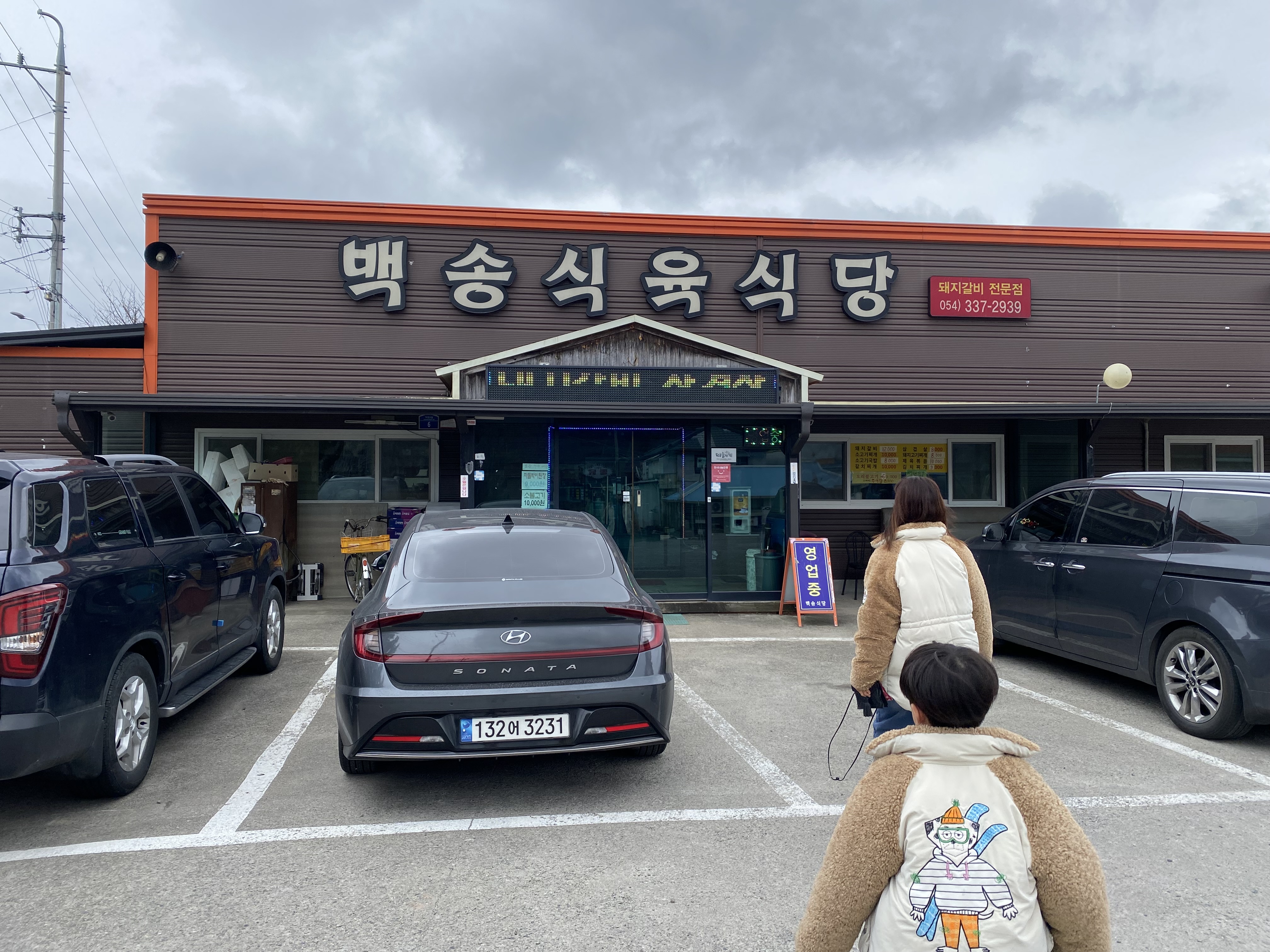 이번엔 영천 맛집 소개 시간인데요, 자연휴양림에서 체크아웃을 하고 나름 시내 쪽으로 나와보니 제법 큰 식당이 눈에 들어옵니다. 원래는 동네 관광지 어디가 있을까 검색하다가 사적 2호로 등록되어 있는 자천교회에 방문하려고 갔었는데 맞은편에 요래 큰 식당이 눈에 들어와 허기진 배부터 달래고자 방문을 하게 되었습니다. 식당 이름은 '백송 식육식당'입니다.