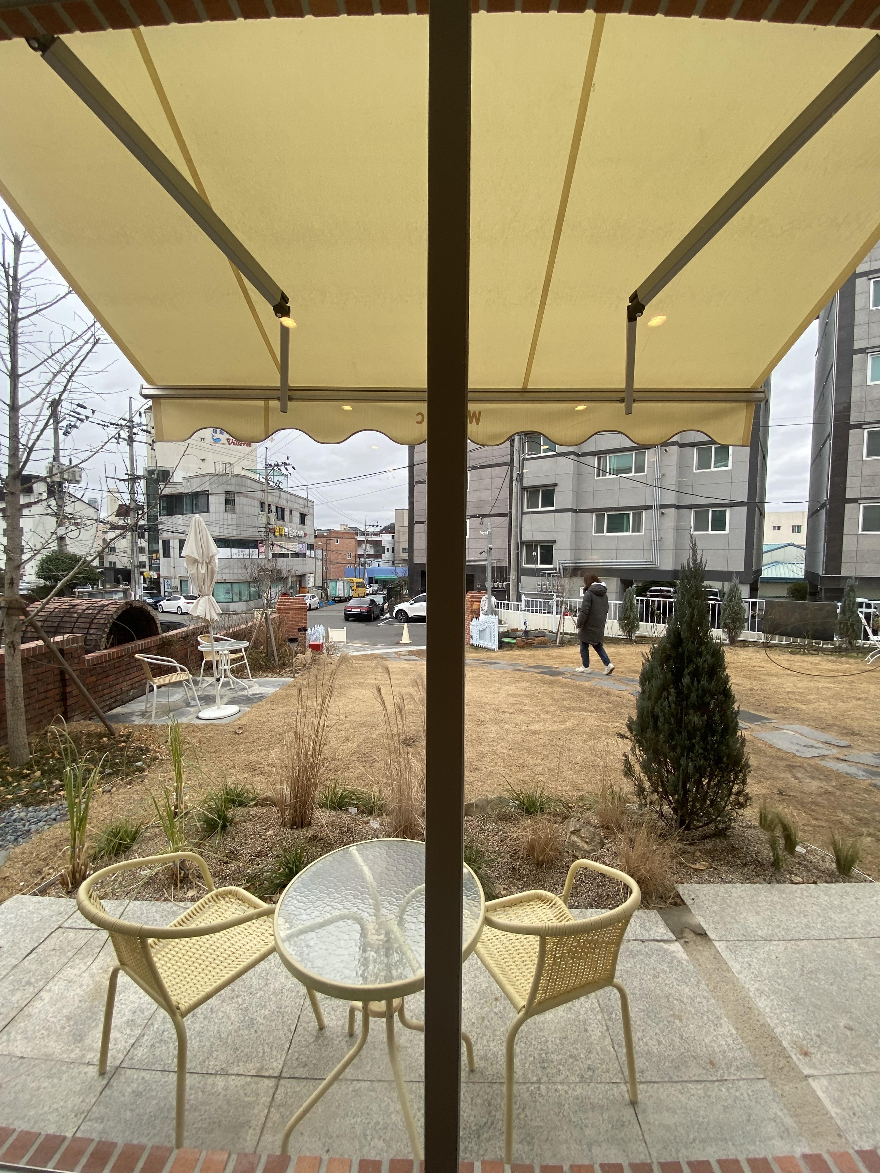 동네는 학성여중 한 블록 옆인데 개인 집을 리모델링 해서 카페로 만든 곳인지 아님 신축으로 카페 건물을 만든 것인지는 잘 모르겠더군요. 확실한 건 야외 잔디밭은 새삥!