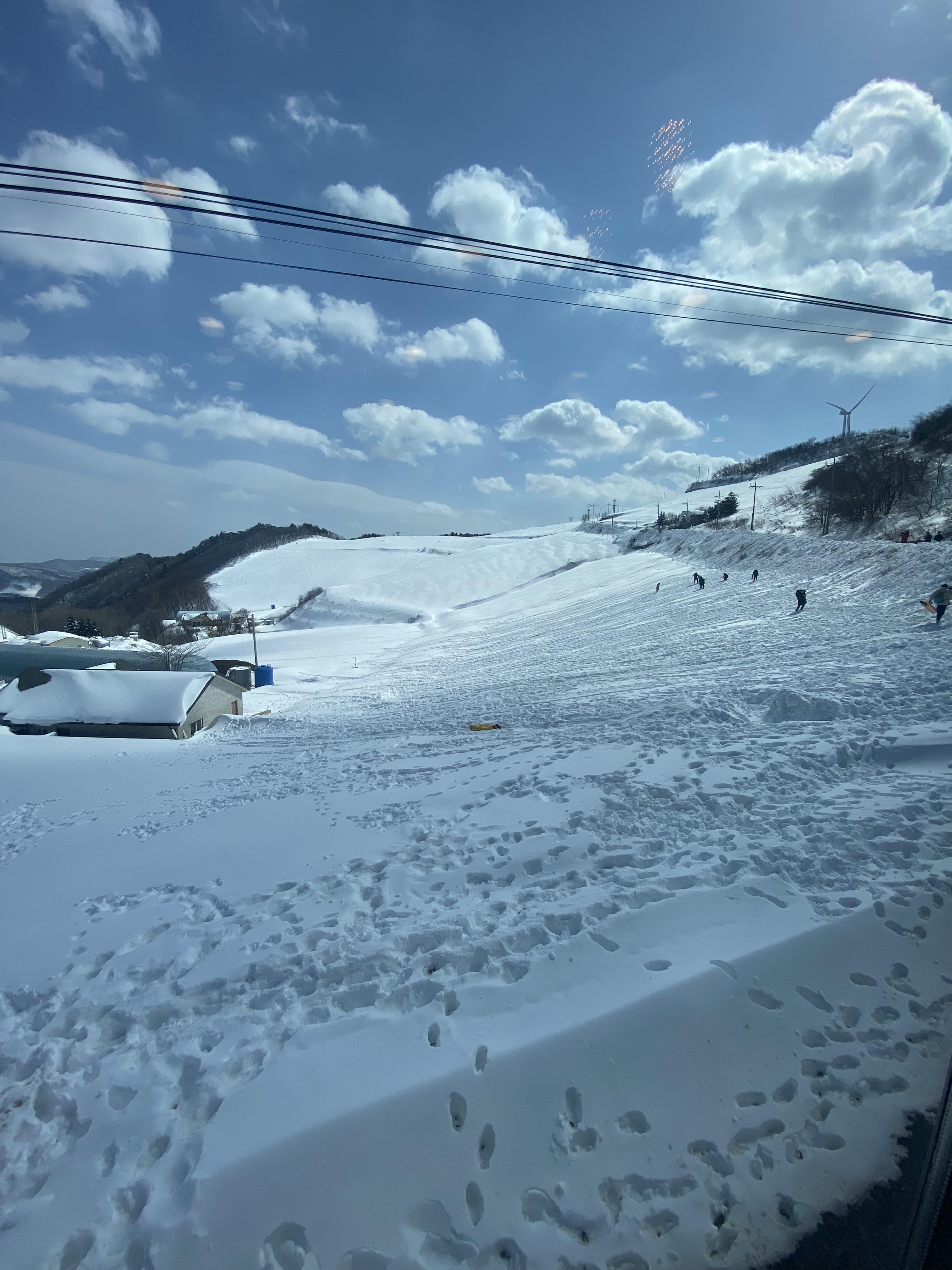 겨울 안반데기에 오는 이유가 바로 요 사진에 다 나와있습니다. 흰 눈으로 뒤덮여 있는 경사진 드넓은 밭이 천연 눈썰매장으로 사람들의 발길을 유혹하고 있습니다. 사진에는 경사가 그리 심하지 않은 듯 보이지만 절대 그렇지 않습니다. 길이도 제법 길어 한번 타면 한참을 내려가는 코스입니다. 일 년에 눈 구경 한번 할까 말까 하는 남부 지방 아들 눈에는 다시 눈이다~~! 눈을 즐기고 싶다~~!! 촐망촐망, 반짝반짝 빛나는 눈으로 눈을 강력히 갈구하는 모습입니다. 그래서 결국 스키복으로 갈아입혀 한참을 안반데기 카페 밭에서 놀았습니다.