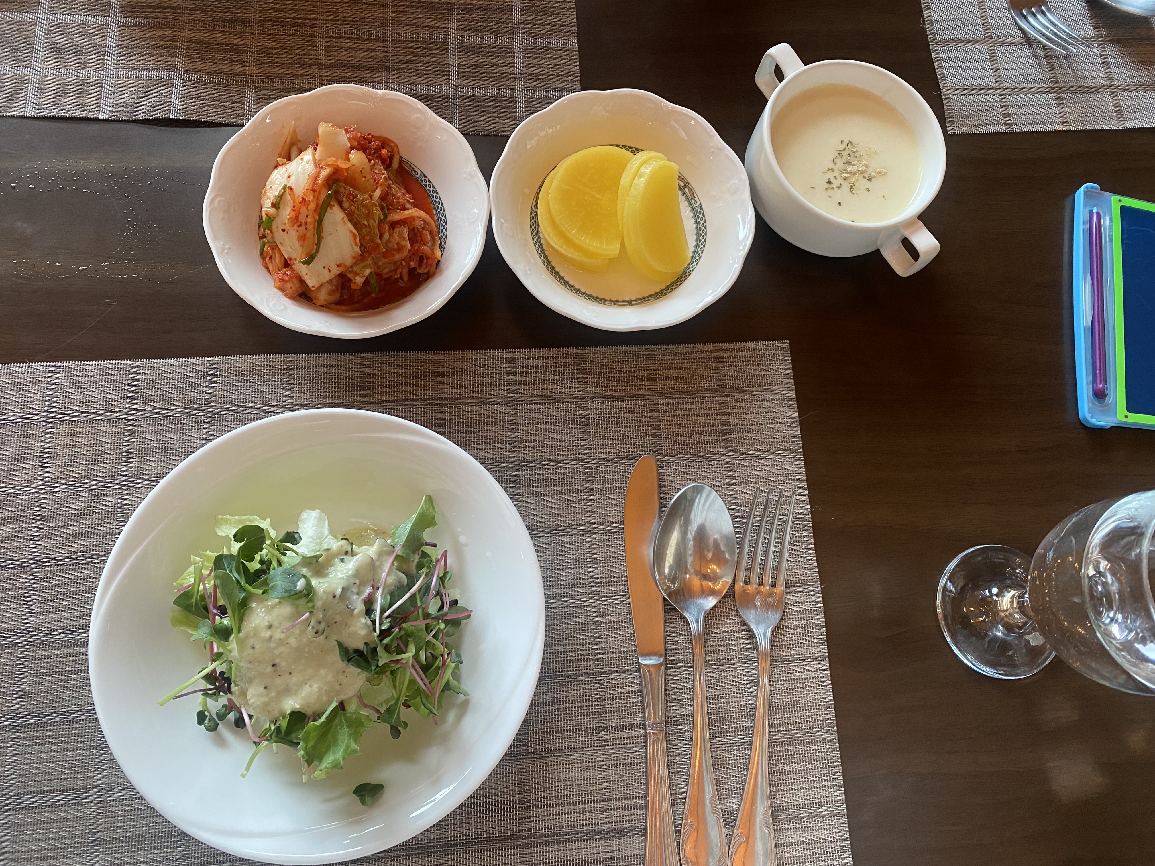 식전 메뉴로 샐러드와 크림스프가~ 역시 소싯적 경양식집 느낌의 식전 메뉴입니다.