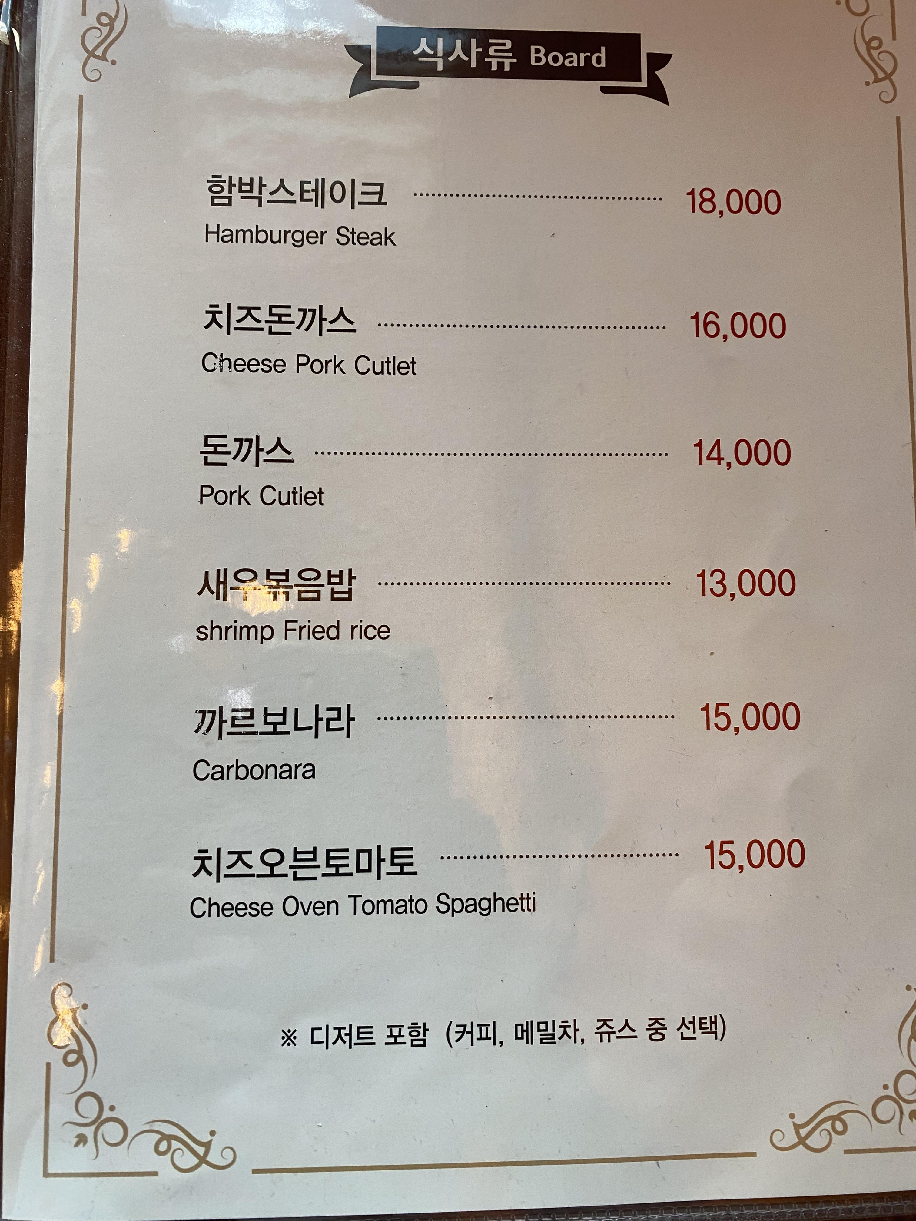 캐빈하우스 레스토랑 세 가지 메뉴 중에서 제 입맛을 사로잡은 메뉴는 의외로 새우볶음밥이었습니다. 요즘은 냉동 음식으로 간단하게 데우기만 하면 되는 요리들이 많은데 이 집은 진짜 볶음밥이 지은 밥으로 볶은 밥이라 씹는 맛도 좋고 입에서 착착 감기는 맛이 일품입니다. 레스토랑에서 풍기는 분위기가 2~30년 전쯤으로 돌아가있는 기분이 드는데요 음식도 진짜 한결같이 그 시절 풍의 경양식이라 먹으면서 추억이 샘솟는 그런 기분이 들었답니다. 그 시절 엄마 아빠와 함께 특별한 날 경양식 레스토랑에 가서 칼 한번 써는 기분이랄까요? 이제는 두 분을 뵙지는 못하지만 제가 아빠가 되어 아들과 함께 그 시절 느꼈던 감정을 다시 느끼면서 만감이 교차하는 시간이었습니다.