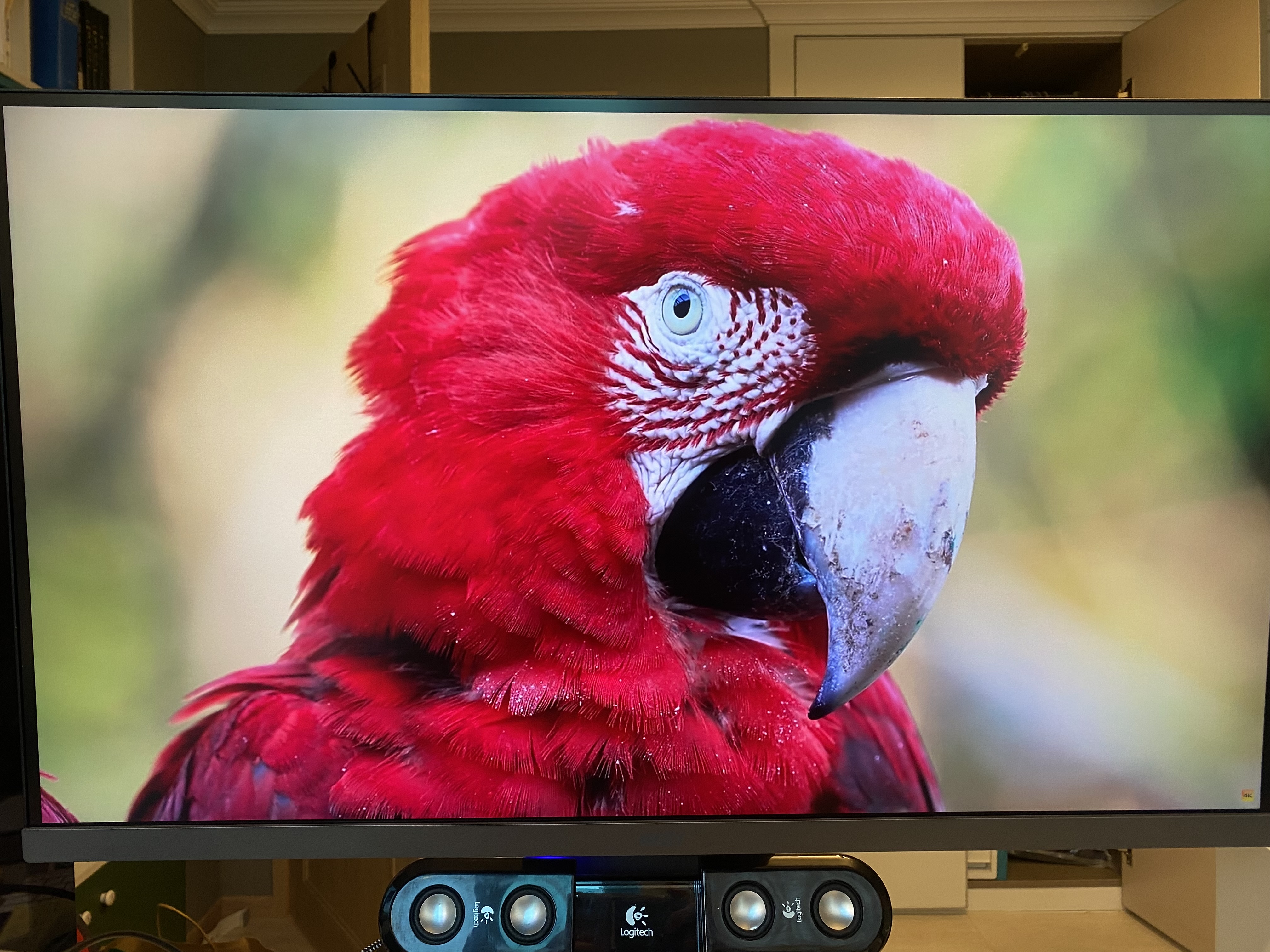 MSI MD271UL 4K IPS 아이에르고 PD65 모니터를 맥미니와 연결해 화면 상태를 봤는데 무결점 맞고요 크게 색 보정을 해줘야 할 필요도 없는 거 같아요. 예전 주연테크 모니터 같은 경우에는 최적 상태를 유지하기 위해 색보정 작업을 해줘야 만족할 만한 값을 얻을 수 있는데 요 모니터는 밝기만 살짝 올려줬고 그 외엔 설정값 그대로 사용 중인데 밝기와 색감은 대만족입니다. 좌측 사진과 같이 반반씩 사용 중이며 모니터 해상도는 QHD와 UHD 중간 값이 3008*1692 사이즈로 설정해서 사용하고 있습니다. UHD 화질로 설정해 놓으면 글자가 너무 작아서 불편하고 QHD 사이즈로 설정하면 반반 사용하기 살짝 불편해지더라고요. 어쩔 수 없이 주연테크 모니터가 사망해 구입한 MSI 모니터지만 디자인만큼은 압도적인 승리~! 성능은 일반 유저가 가타부타 할 수 없으나 일단 특별히 설정값 건드리지 않아도 충분한 색감을 즐길 수 있어서 또 한 표!! 가격은 두말할 것도 없이 요 모니터가 더 대략 4만 원 정도 저렴해 가격경쟁력도 압도!!! 게이밍용 모니터 사용하는 게 아니라면 보급형 4k 모니터 중에서는 요만한 제품도 없을듯합니다. 한 가지 제일 아쉬운 건 역시 내장 스피커 카 없달까요? 주연 제품은 있긴 한데 음질이 쓰레기라 별 사용을 안 했으나 MSI 제품은 디자인이 워낙 좋아 내장 스피커까지 달려 있었으면 책상이 훨씬 더 깔끔해질 텐데라는 아쉬움이 들었습니다. 27인치 4k 모니터로 초강추 합니다.