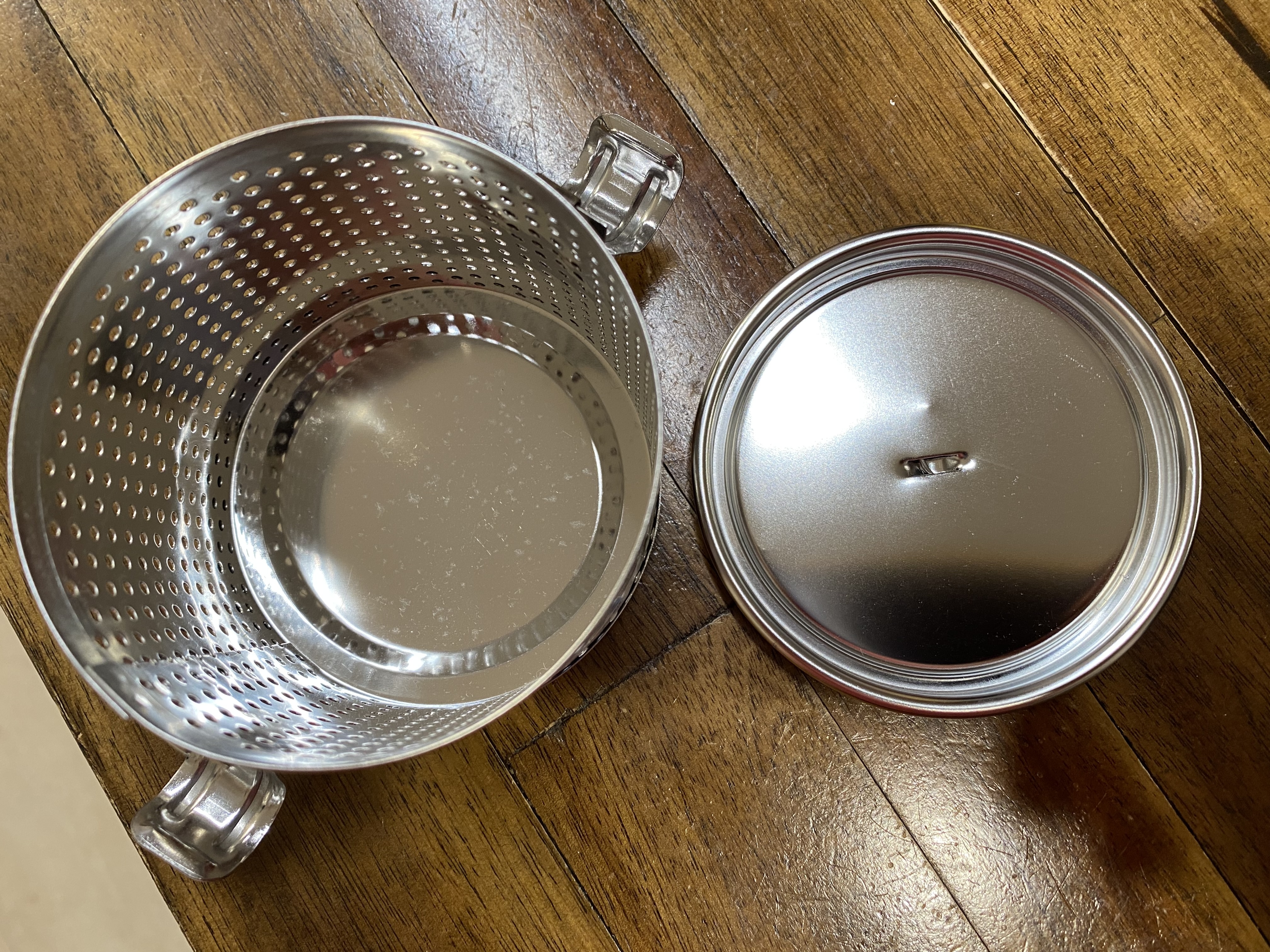 요 제품은 정확히 몸통에만 구멍이 나있고 위아래 뚜껑과 바닥면에는 구멍 따윈 일절 없는 제품입니다. 스티커는 뜨거운 물에 불려서 제거해 줬고요, 스텐 제품이니 연마제 혹시나 나올까 싶어서 먼저 식세기로 2번 세척을 시켰습니다.