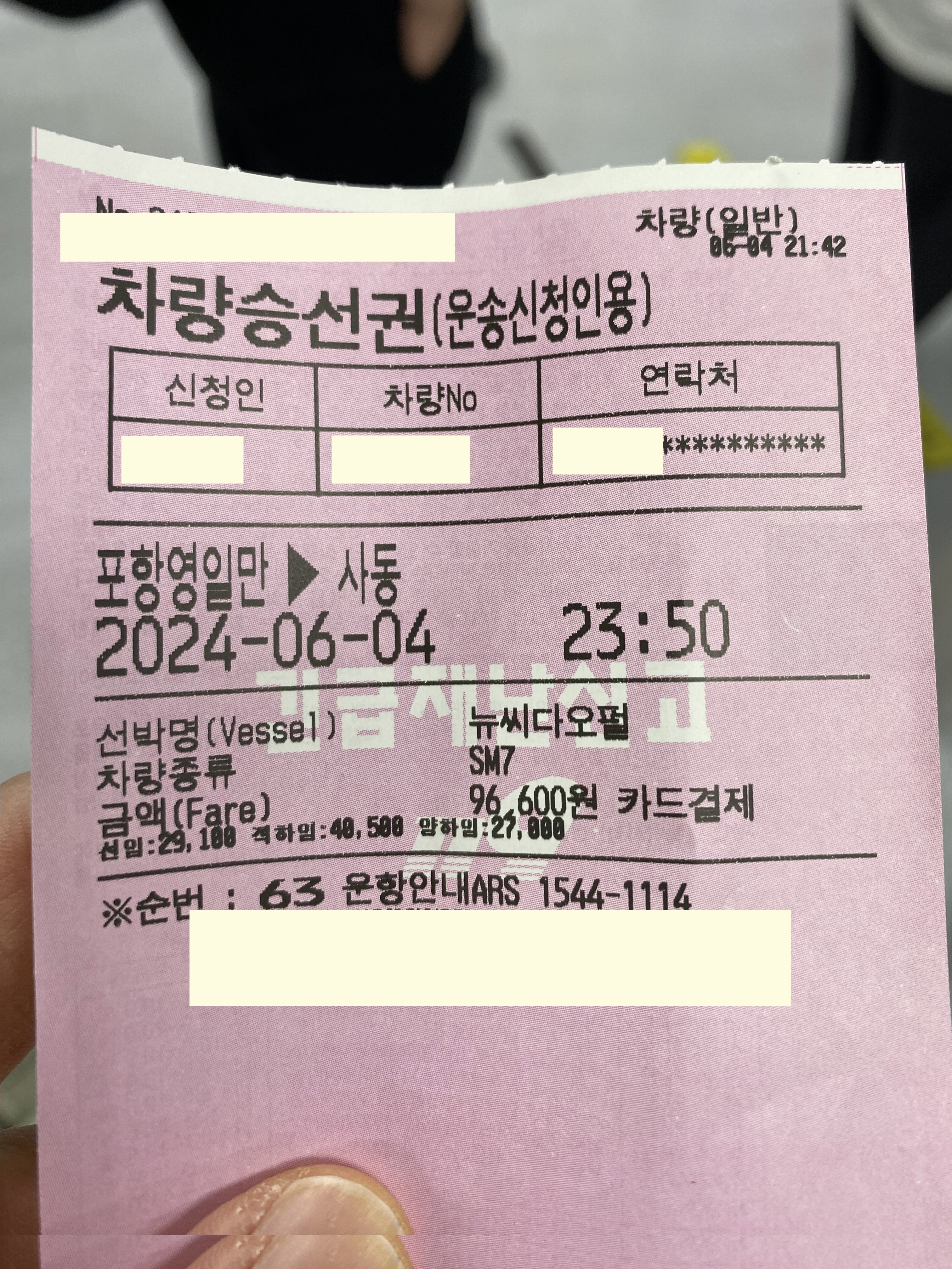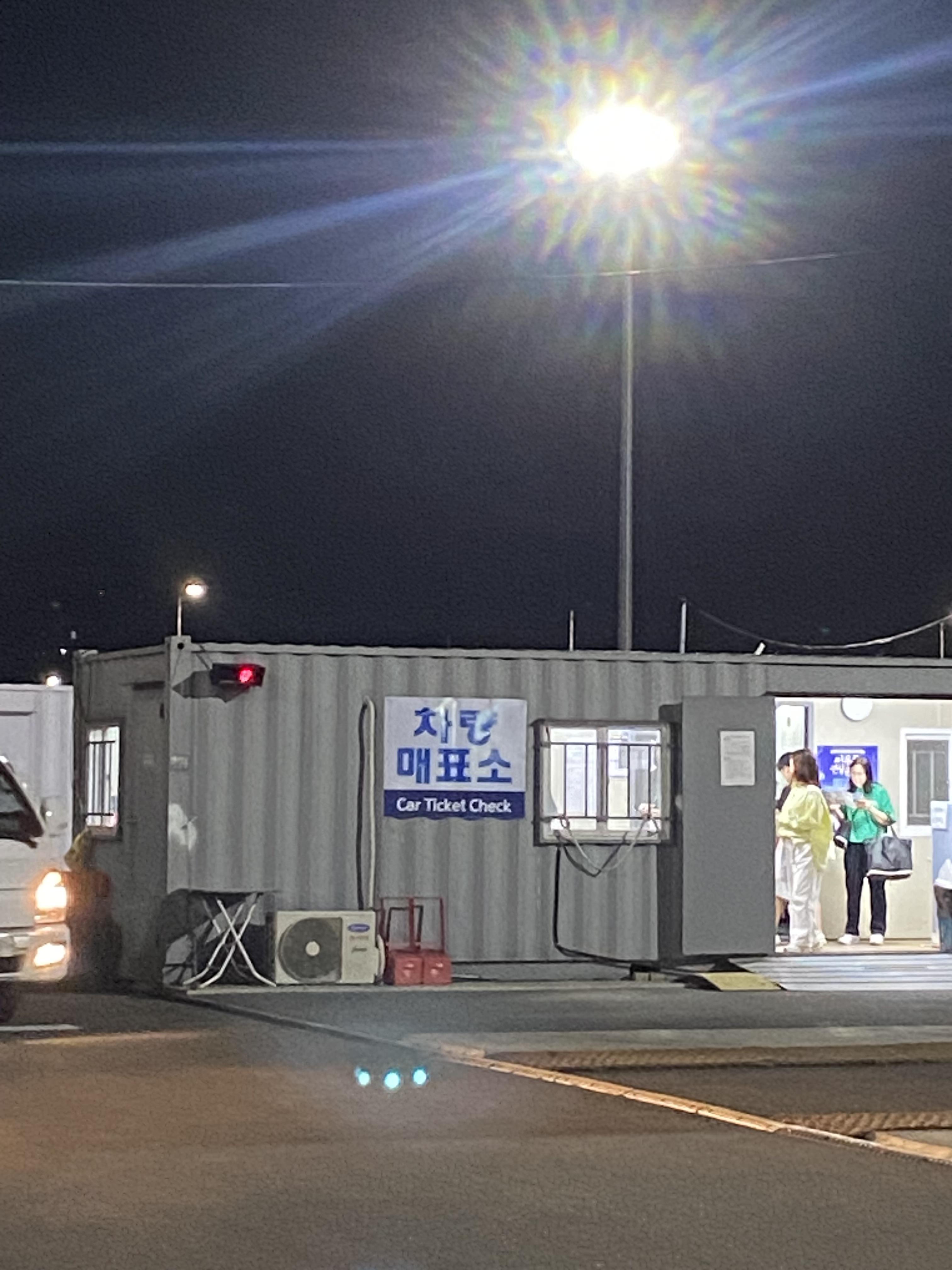 여기는 순수한 차량 매표소라 차량등록증과 신분증을 소지해 차량 승선권을 발권합니다. 사진에는 없지만 차량 매표소 바로 옆에 승선권을 발권하는 곳이 있습니다. 거기로 가서 배 승선권을 발권합니다.