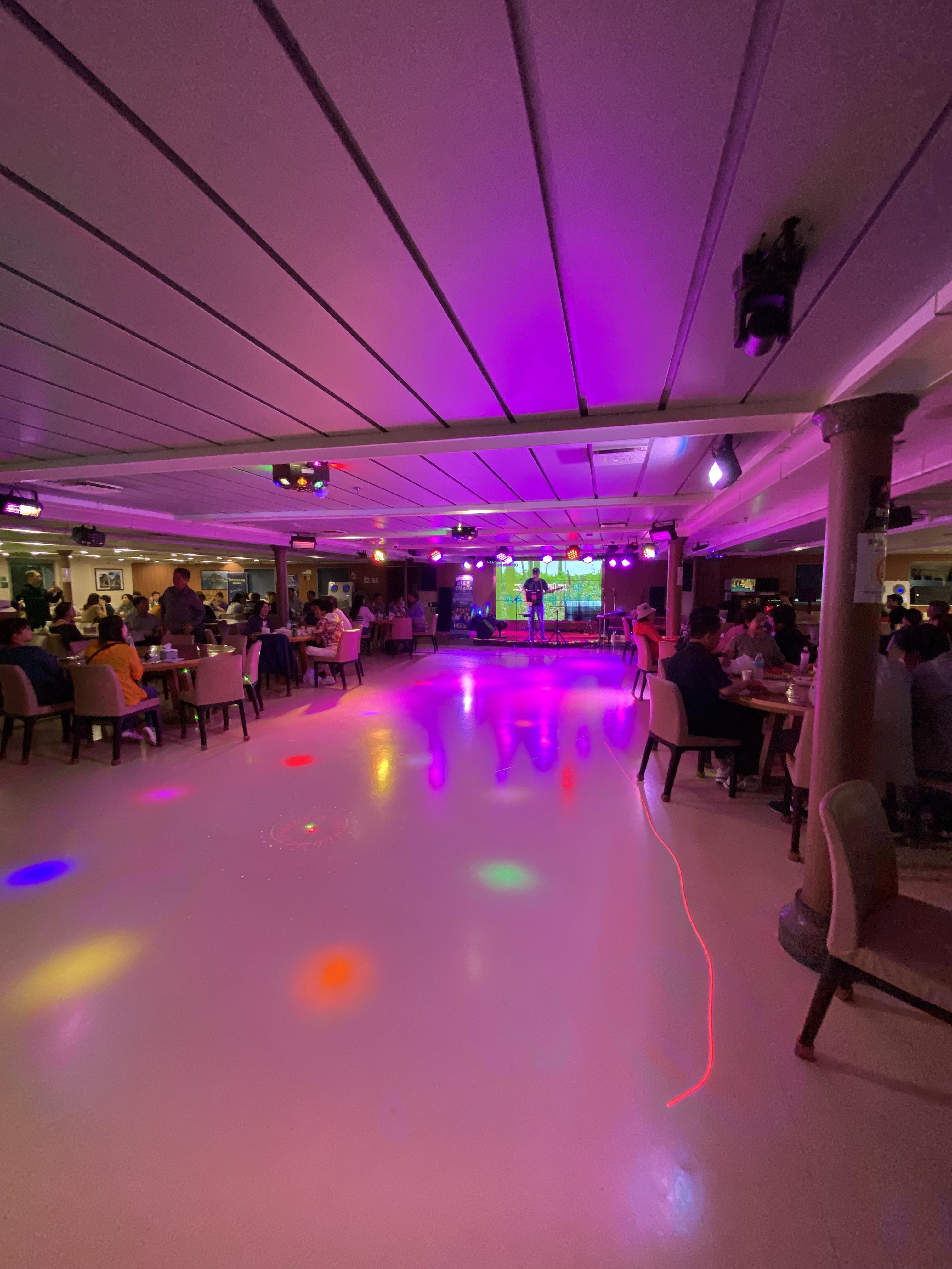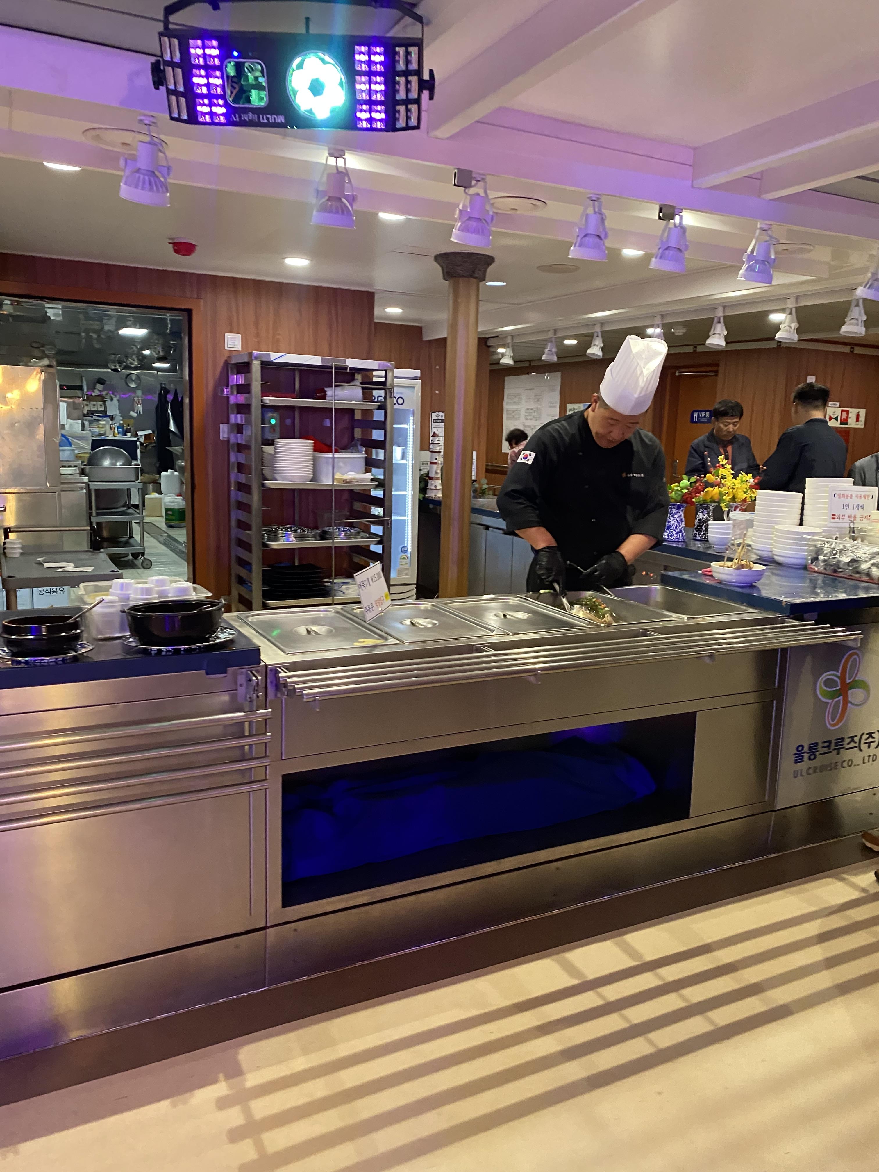 그 외 편의점과 식당 키오스크가 있어서 먹거리 주문도 할 수 있었는데 늦은 시간에 워낙 많은 사람들이 이용을 하고 있어서 먹거리는 그냥 편의점 먹거리를 추천합니다. 저희는 아들이 추워서 따듯한 국물이 먹고 싶다길래 어묵탕을 주문해 식당으로 들어갔는데 여기가 대공연장 함께 사용하는 공간이어서 모든 여행객들이 다 모여 한바탕 파티를 즐기는 중이었습니다. 저희도 많이 시끄럽긴 했지만 이것도 여행을 즐기는 한 방법이려니 하고 한자리 차지해서 즐겨보려 했으나 어린이는 입장불가라는 안내를 받고 피치 못하게 어묵탕은 환불받아야 했습니다. 결국 편의점에 가서 간단한 끼니 때우기용 간편식 음식을 사서 방으로 복귀를 해야 했답니다.