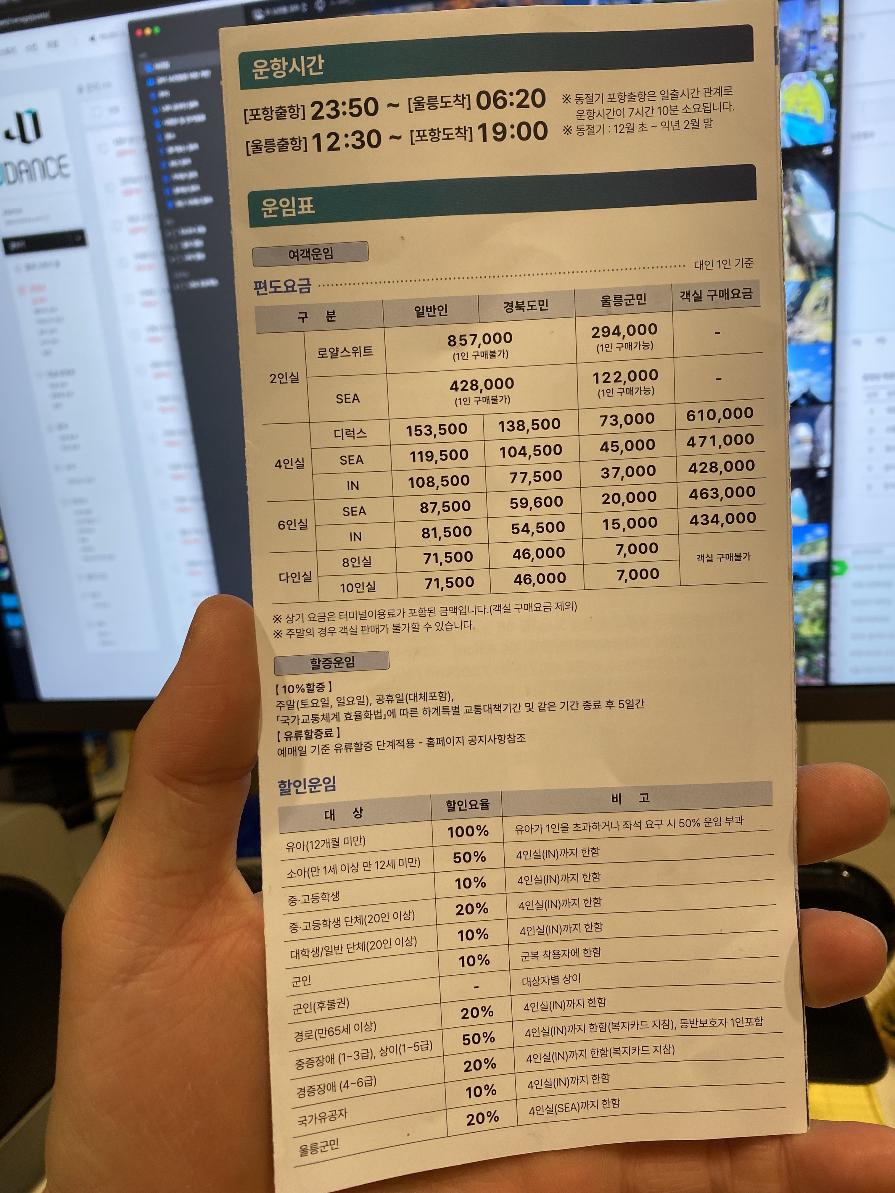 요렇게 초 간단 출발부터 시작하는 울릉도 3박 5일 울릉크루즈 티켓팅 & 6인실 룸 안내 및 배 편의시설 소개하는 후기를 가져봤습니다. 울릉도 여행을 계획 중이신 분들은 결론부터 말하자면 차를 가져가는 게 좋은 선택이니 참고하세요.