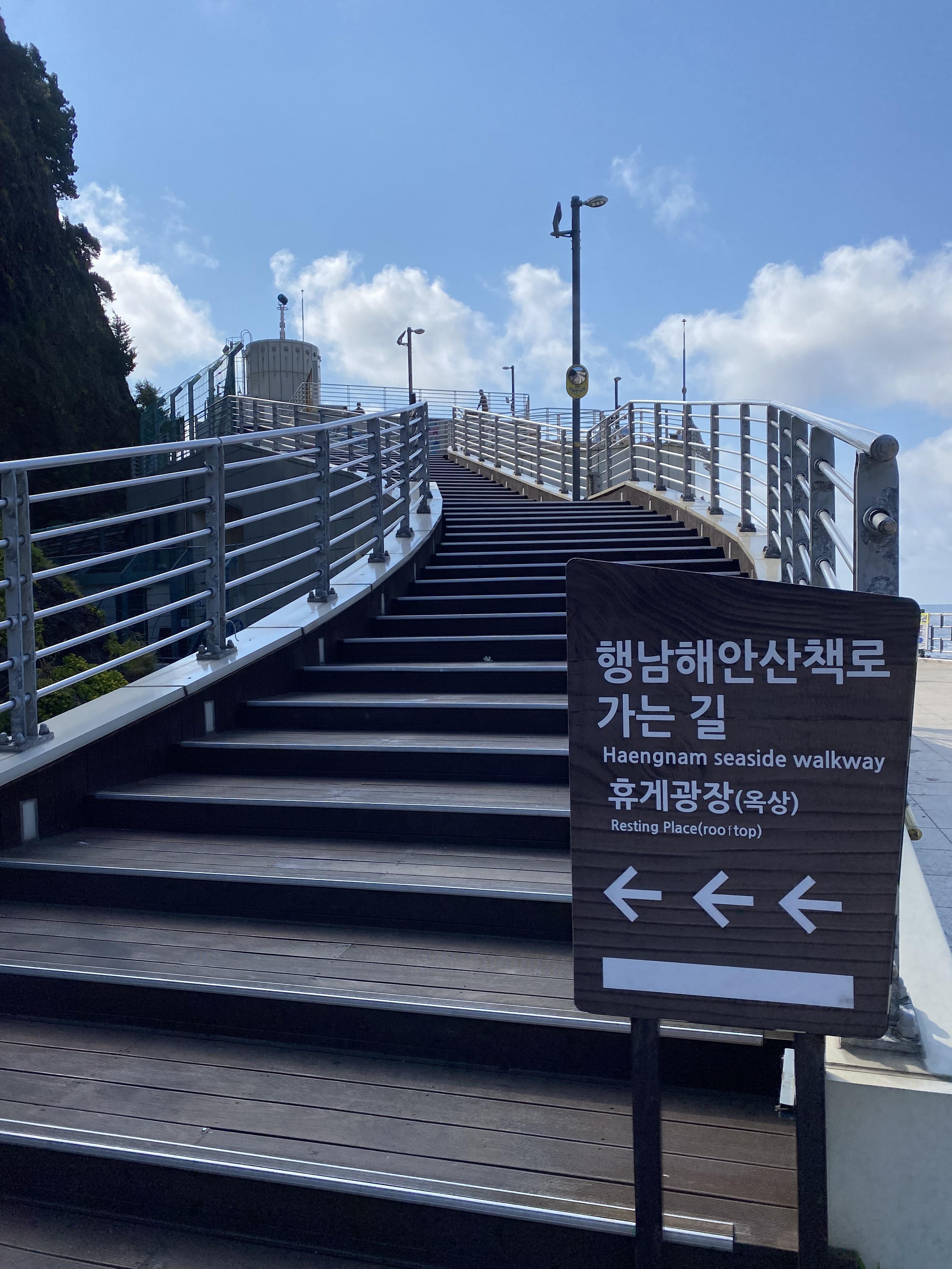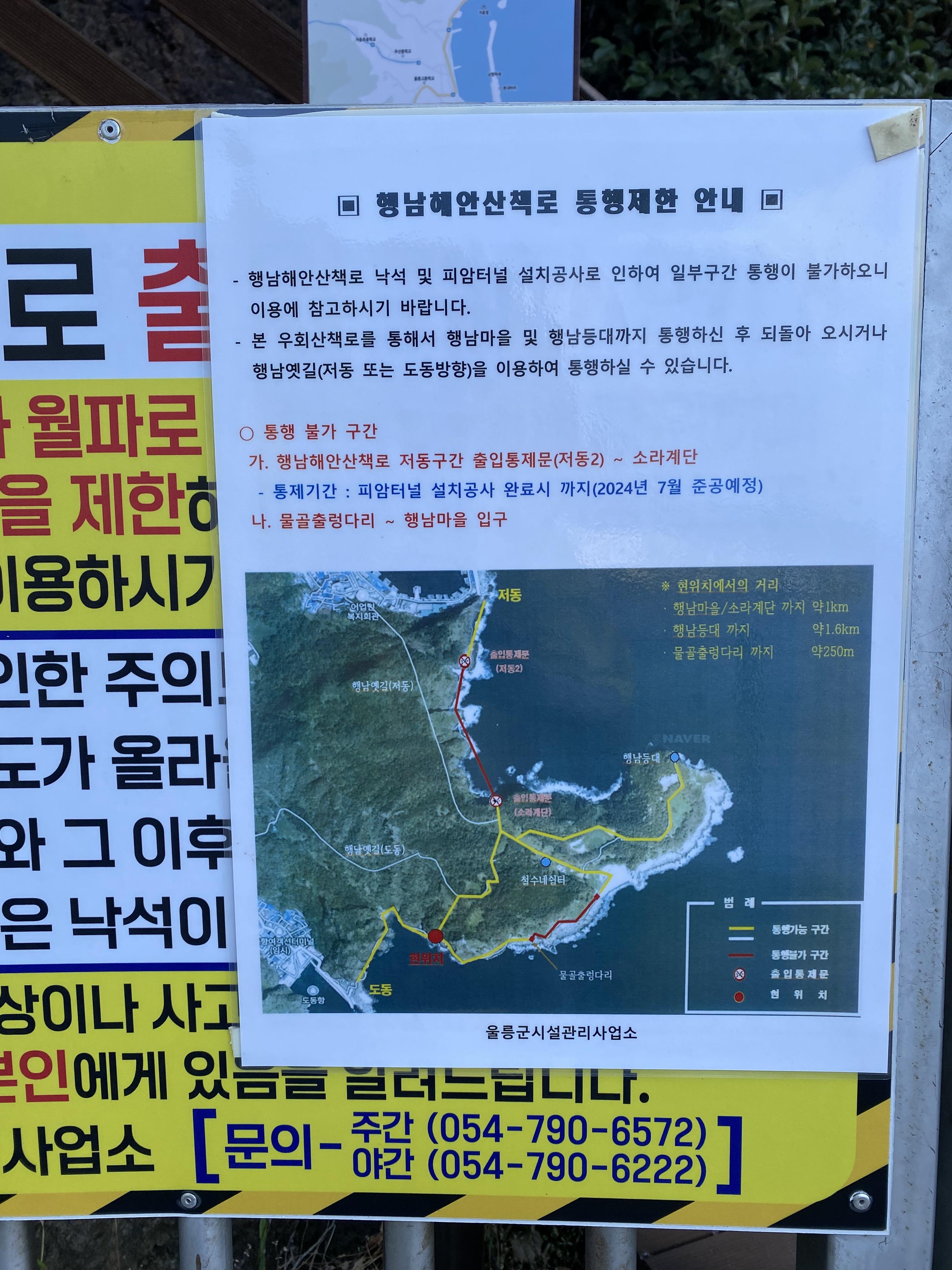 도동항 여객터미널 사진을 못 찍었는데 행남해안 산책로와 이어지는 뒷길 덕분인지 매우 아름다운 모습으로 꾸며져 있습니다. 일단 도동항 여객터미널 방향으로 쭉 가다 보면 행남해안 산책로 가는 길 안내 표지판이 나옵니다.