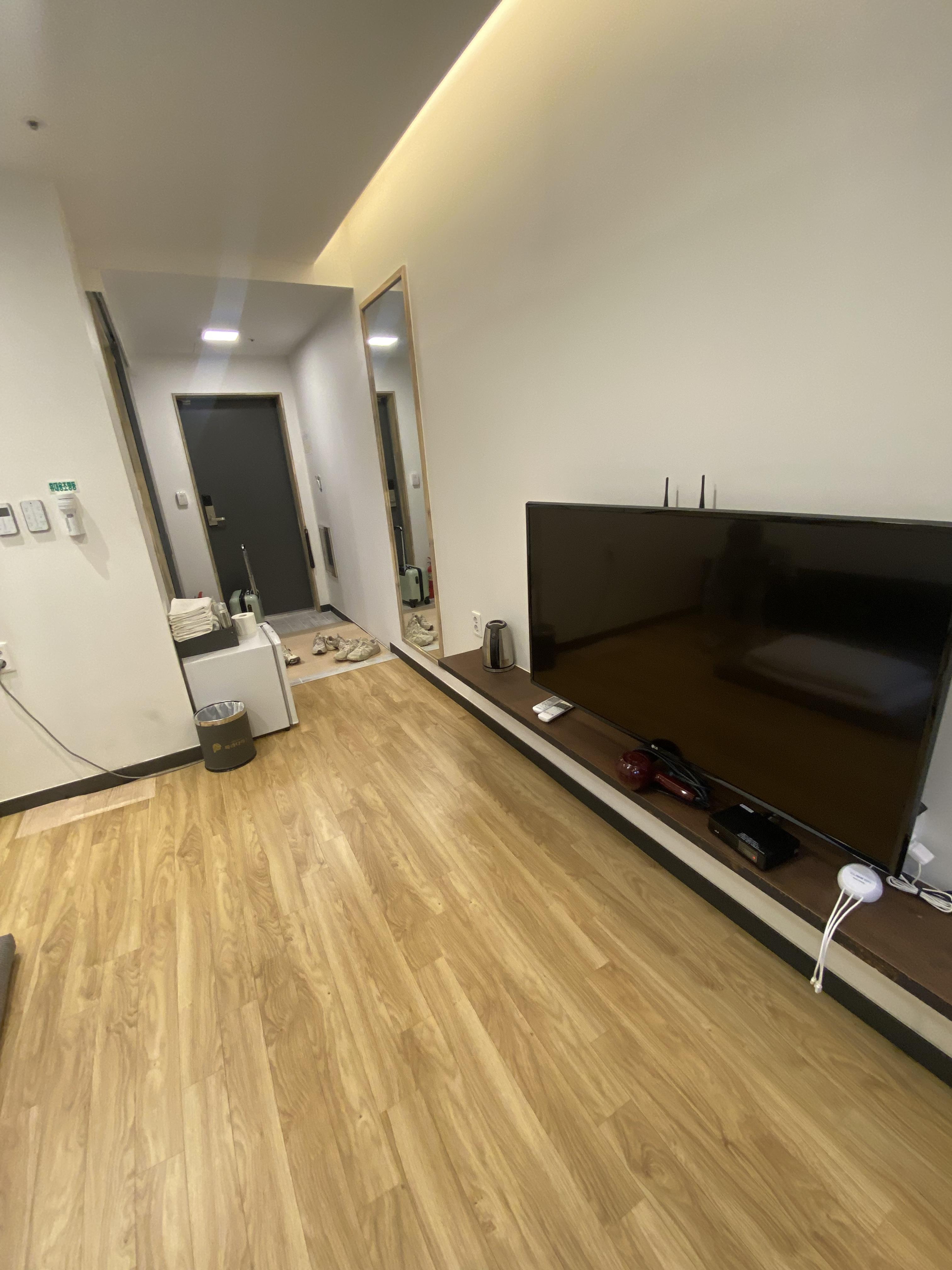 실내 편의시설은 미니 냉장고, 티비, 인터넷, 핸드폰 충전기, 커피포트 등이 있고 화장실은 넓고 깨끗해서 사용하기 좋고 물 수압도 좋아 샤워하기도 굿!