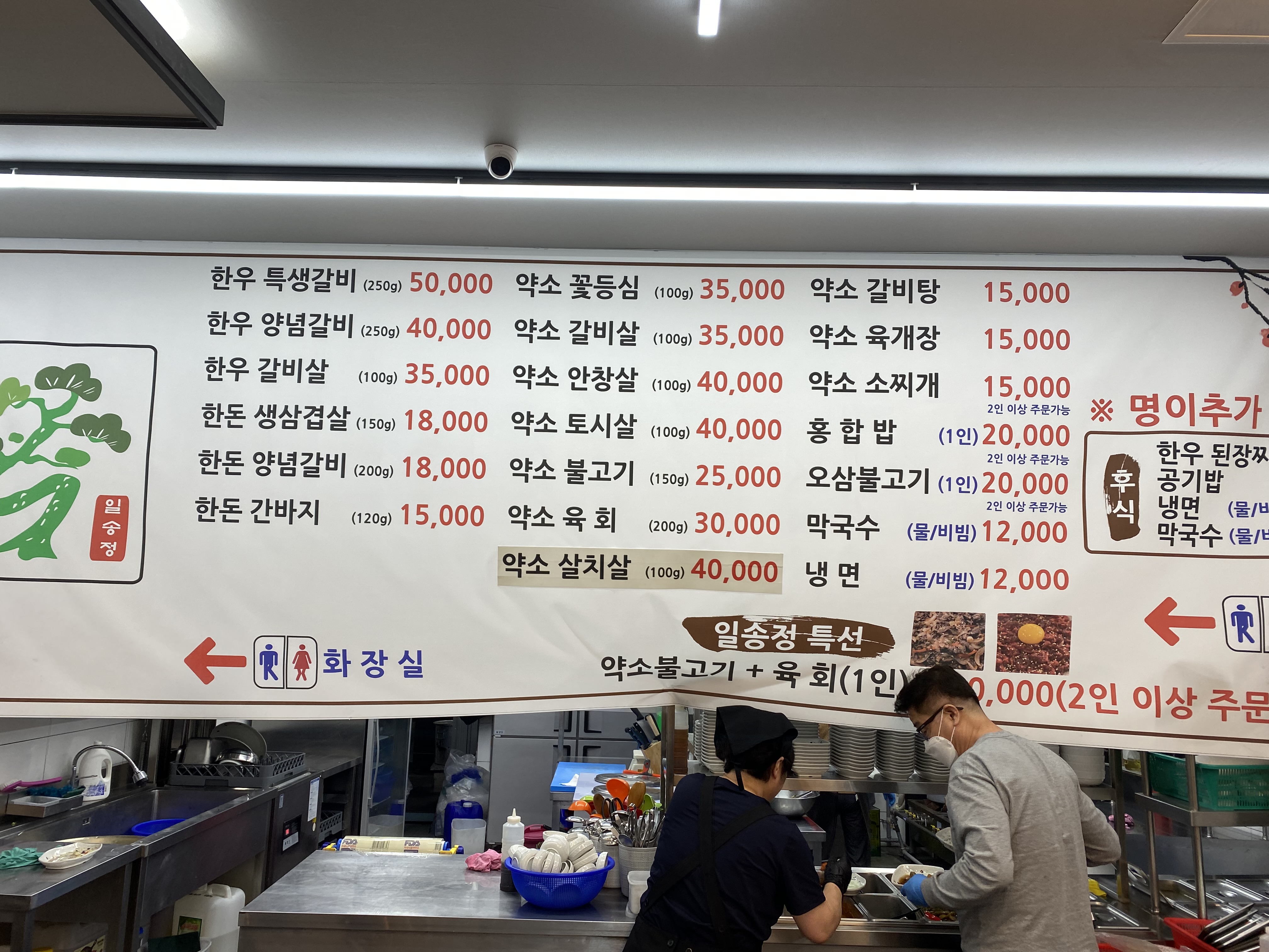 검색했을 때 가격이 제법 부담 된다는 글이 적혀 있으나 우리는 가격 따위 중요하지 않았습니다. 가깝고 맛있는 곳 일 순위!! 그렇게 서둘러 호텔을 나와 바로 옆 상가에 일송정으로 들어갑니다.
