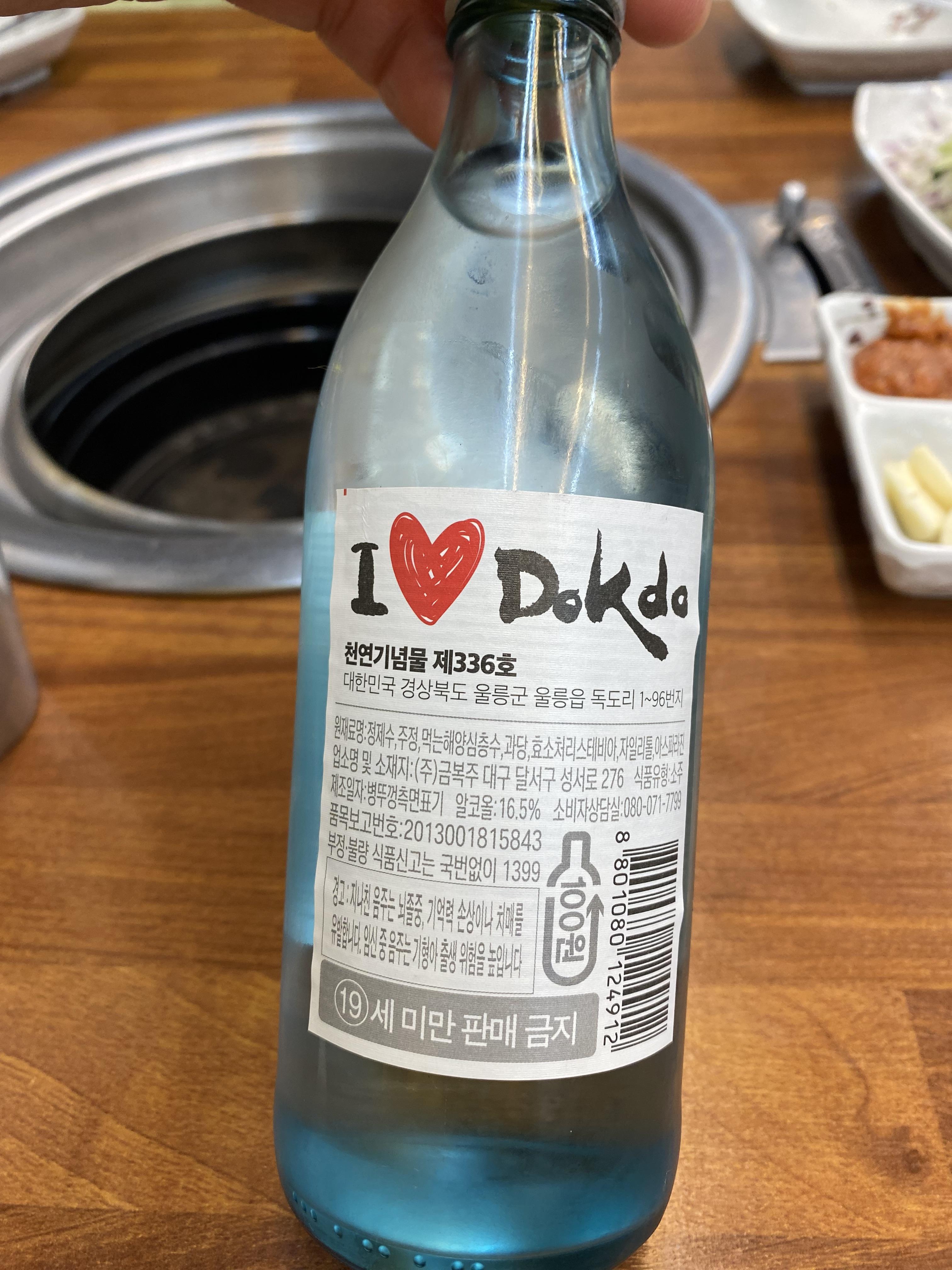 울릉도 왔으니 독도 소주는 맛봐야겠쥬~ 근데 울릉도도 경북이라 금복주에서 만든 독도 소주입니다. 맛은 당연히 좋을 수밖에 없습니다. 지치고 힘든 하루였는데 돼지갈비에 한꼬푸 하니 캬~~ 특별히 더 맛있는 소주인지는 모르겠으나 울릉도니께 모든 게 특별하게 느껴지는 맛입니다.