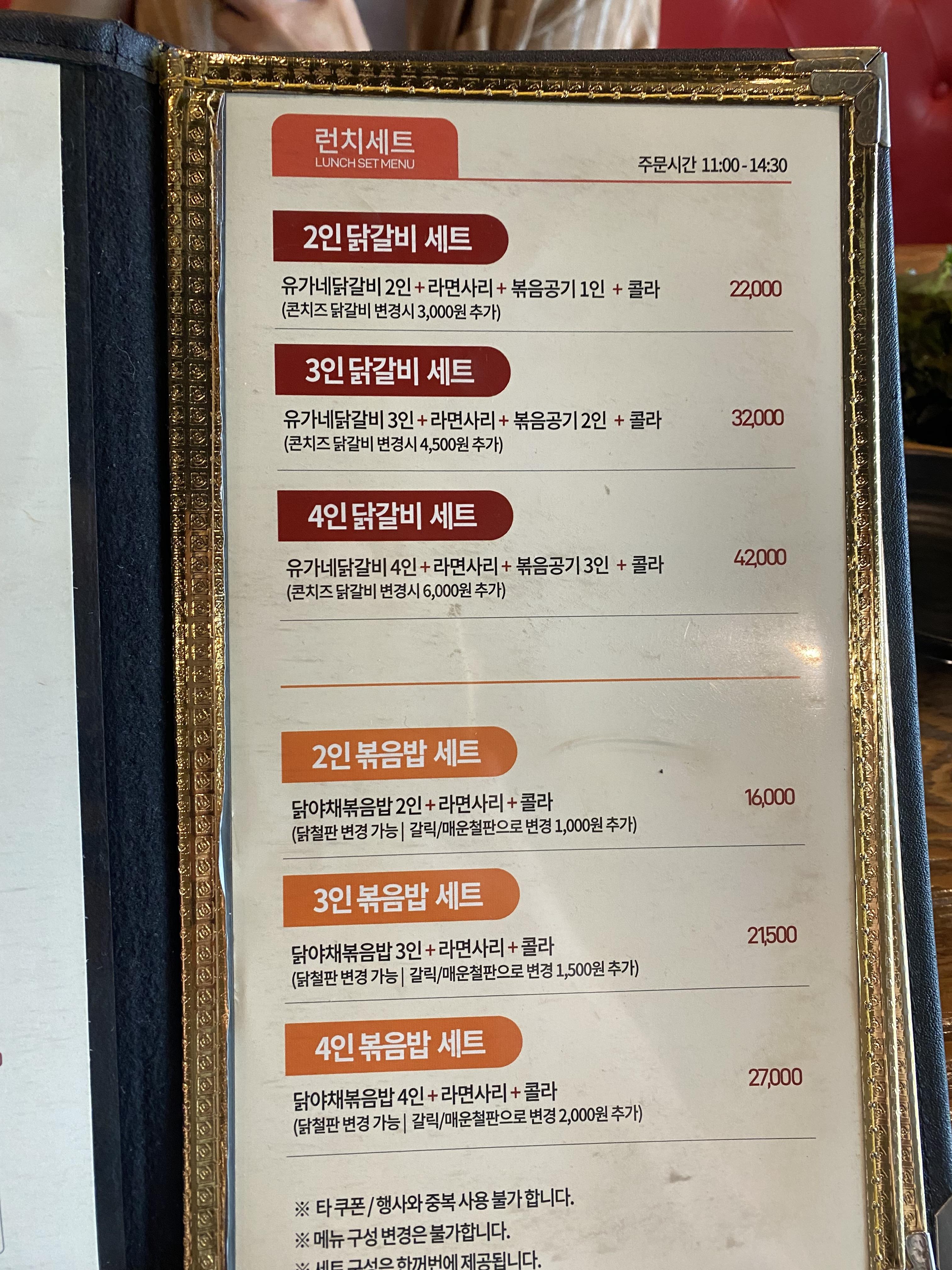 결국 뭘 시켰냐고요?? 저 빼고 와이프님과 아들(아들은 한 끼만 대식가)은 소식좌라 메뉴선택에 있어서 일단 양이 적은 걸로 시키는데 단품으로 시키면 양도 많고 가격도 올라가서 그냥 2인 닭갈비 세트로 주문!!